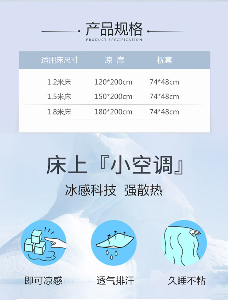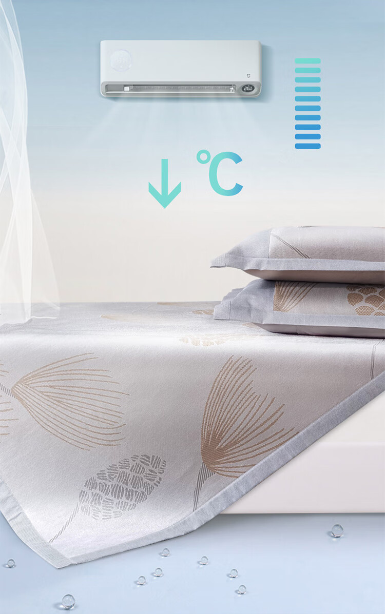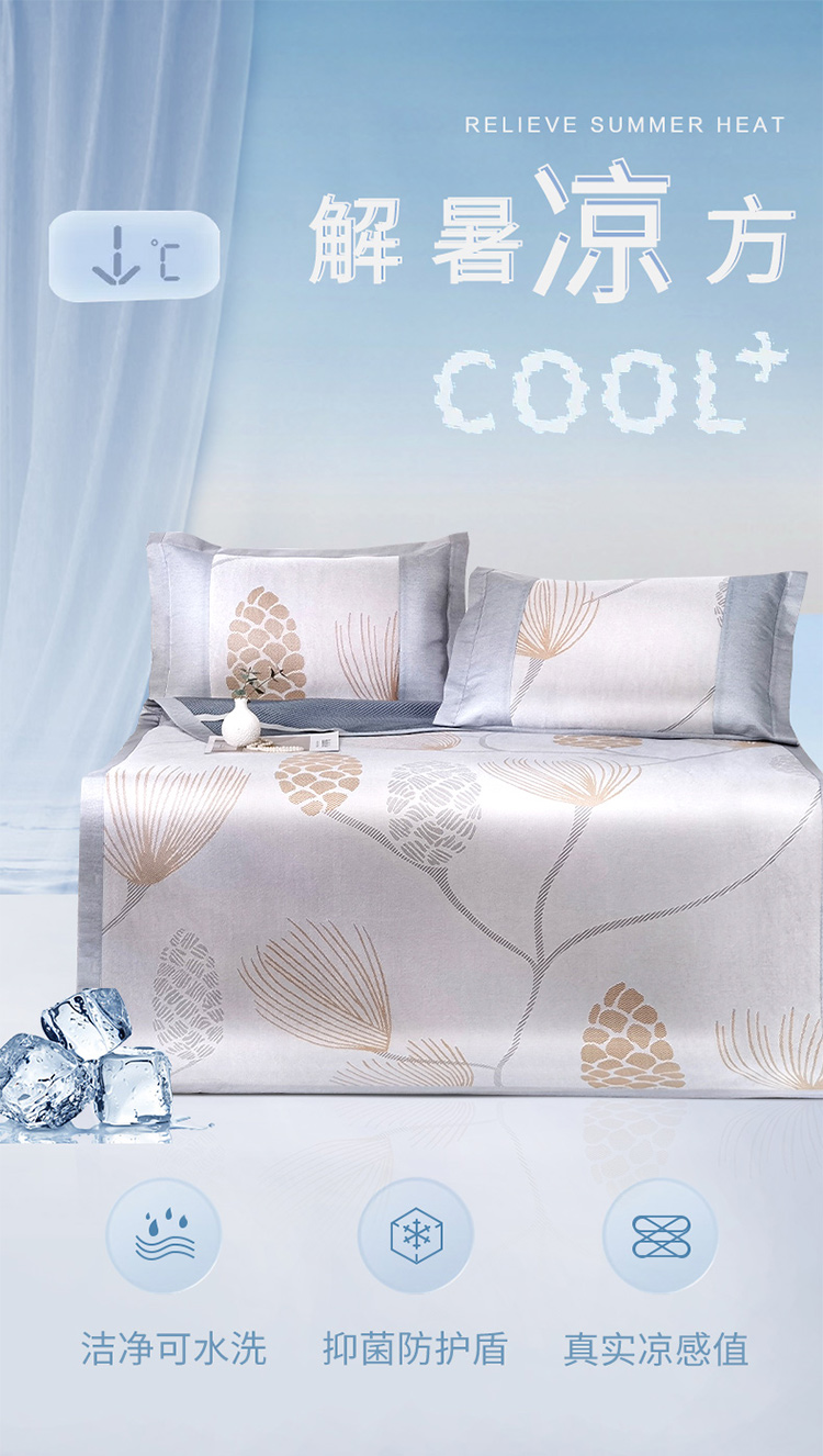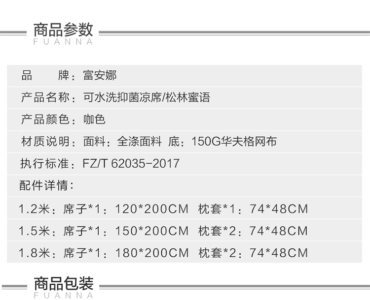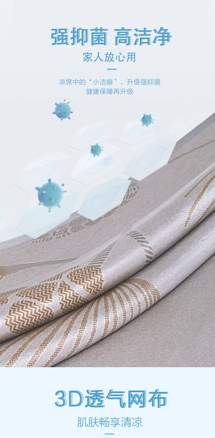 富安娜家纺 凉席可水洗抑菌空调席夏季凉感席子两件套 单人学生宿舍 松林蜜语 1.2米床