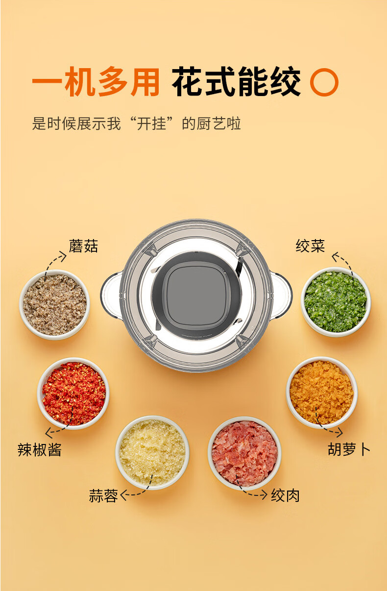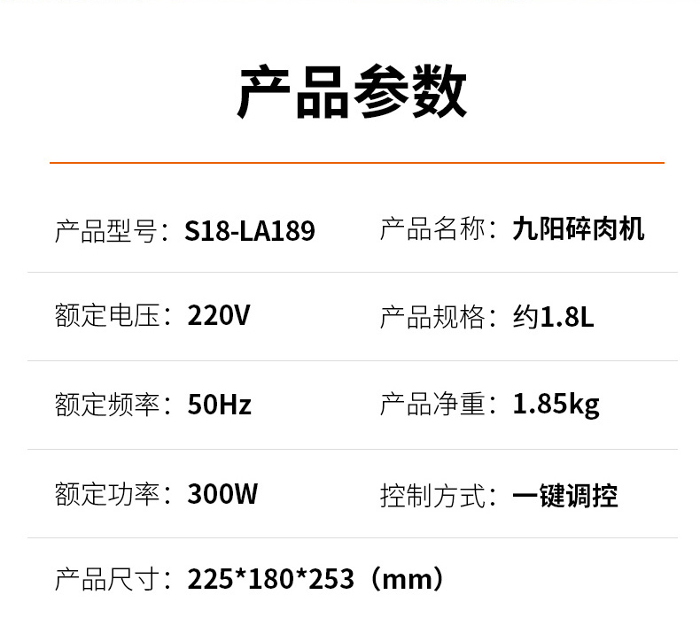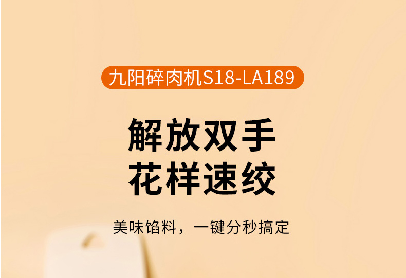 九阳(Joyoung)绞肉机电动多功能料理机辅食机搅拌绞馅切菜研磨碎肉机 300W强力电机 S18-LA189