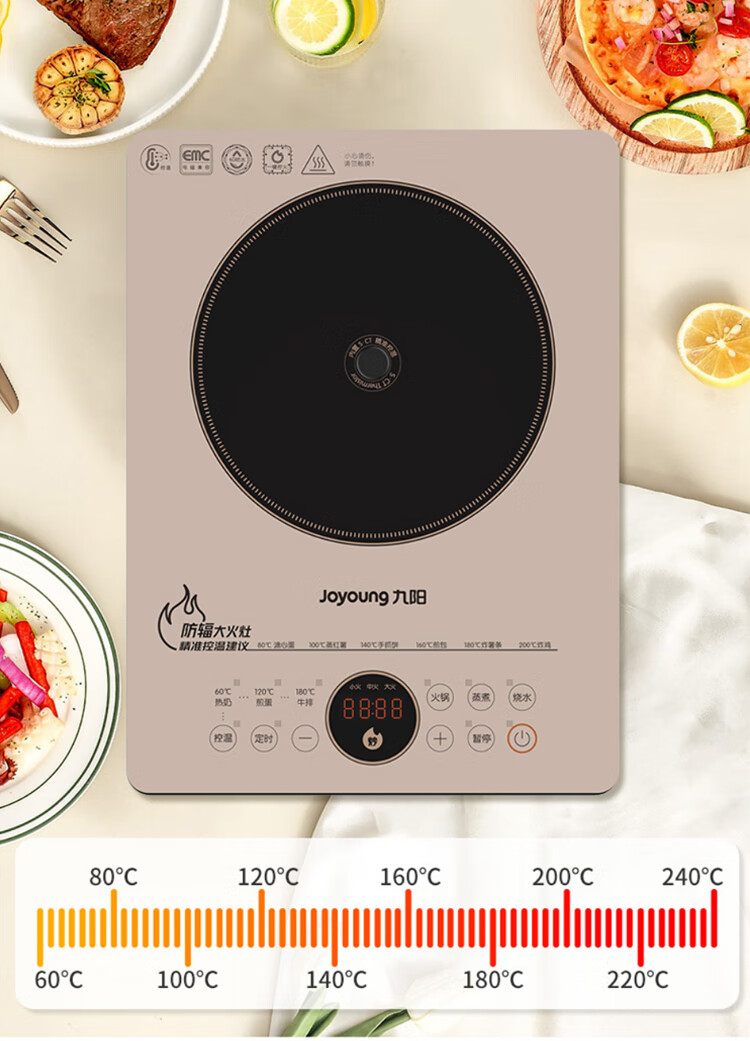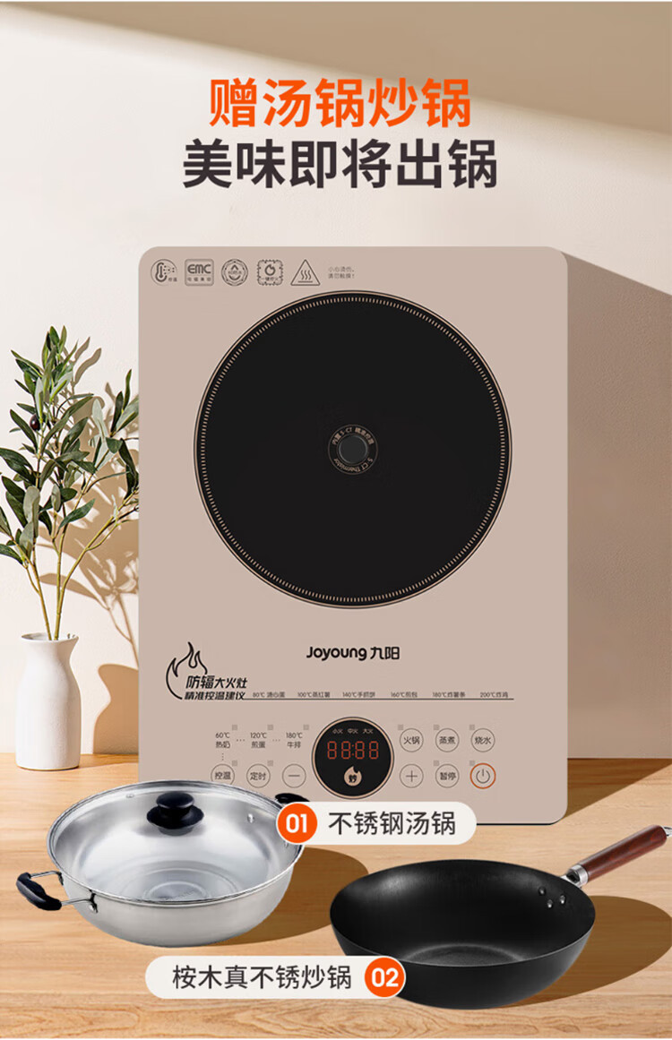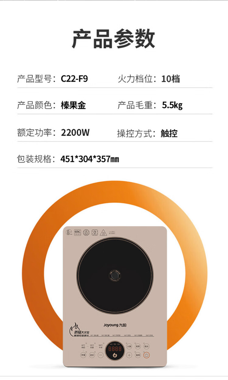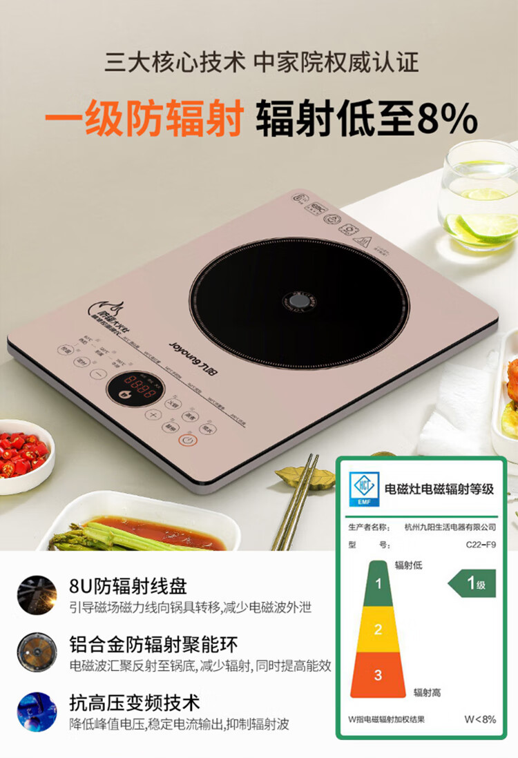 九阳(Joyoung)防辐射电磁炉2200W大功率电磁灶 火锅IH加热 家用多功能电磁灶配汤锅炒锅 C22-F9