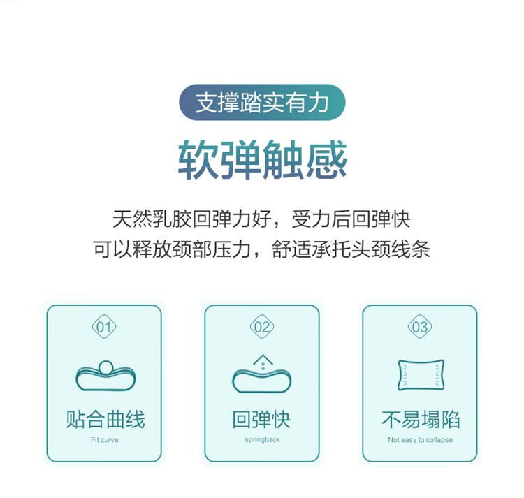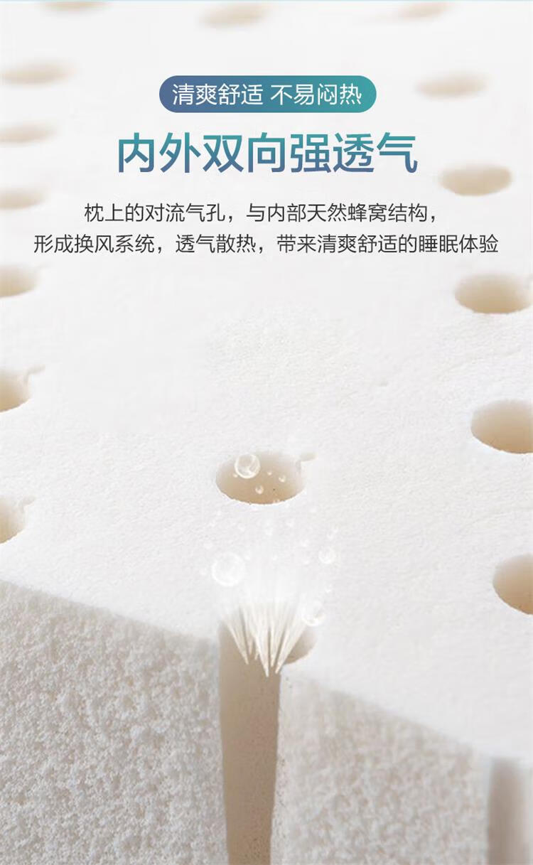 富安娜家纺乳胶枕头 泰国进口天然乳胶枕芯成人 护颈乳胶枕 60*40cm(10-8cm)外套不可拆