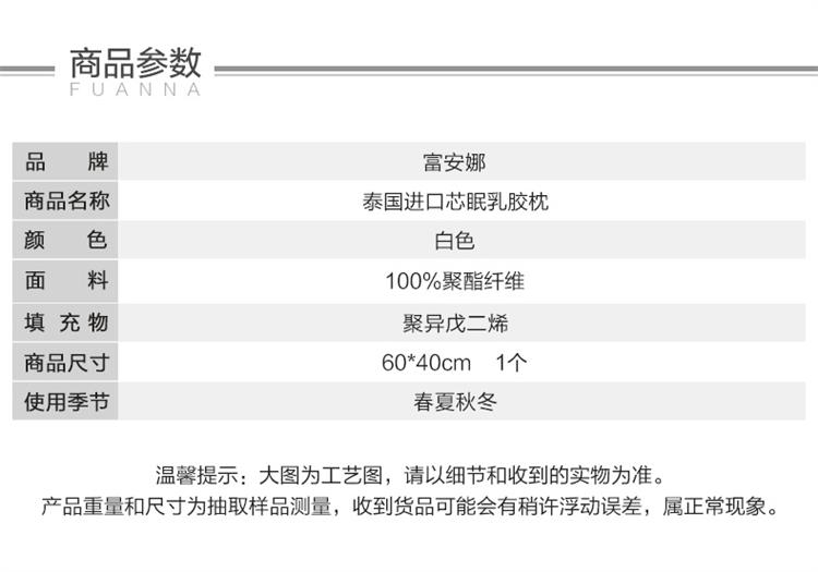 富安娜家纺乳胶枕头 泰国进口天...