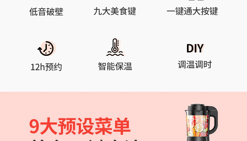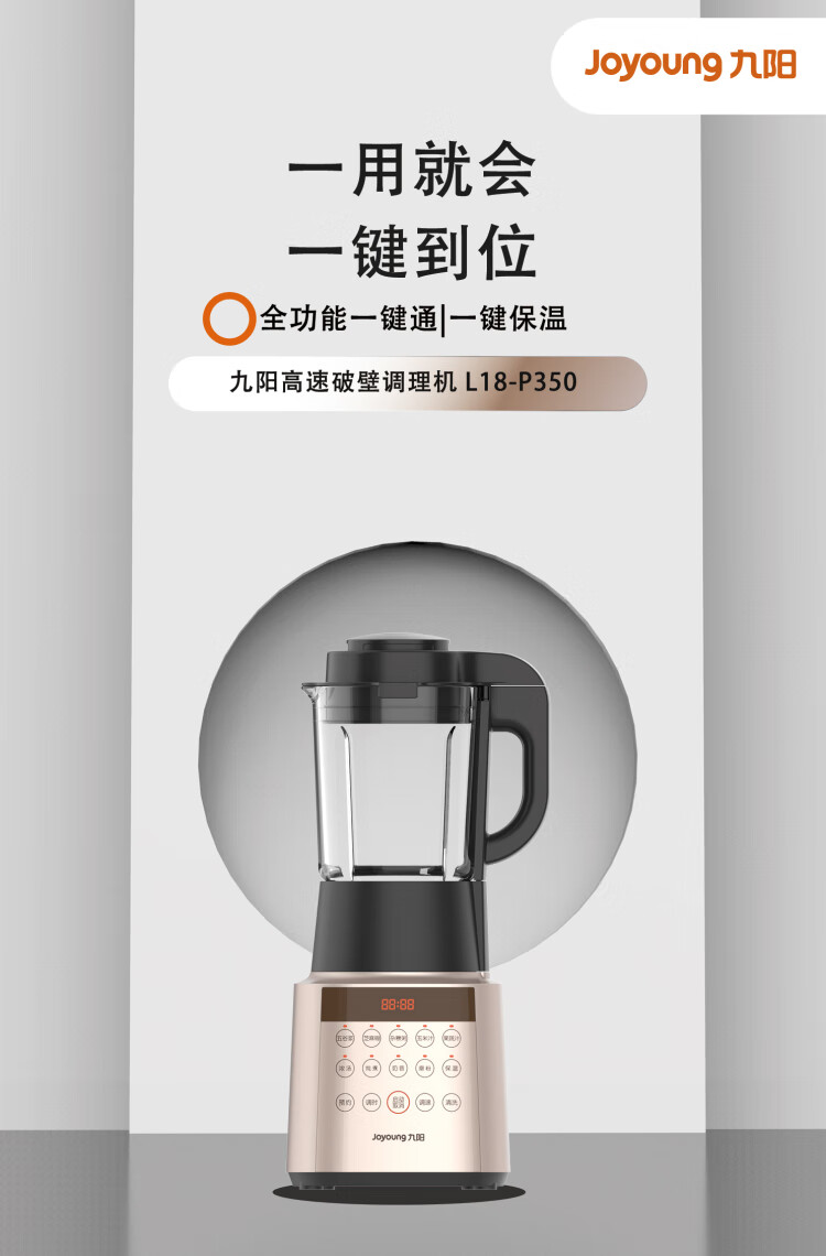 九阳(Joyoung)破壁机预约加热果汁料理机绞肉机婴儿辅食家用全自动豆浆机多功能 商超同款 L18-P350