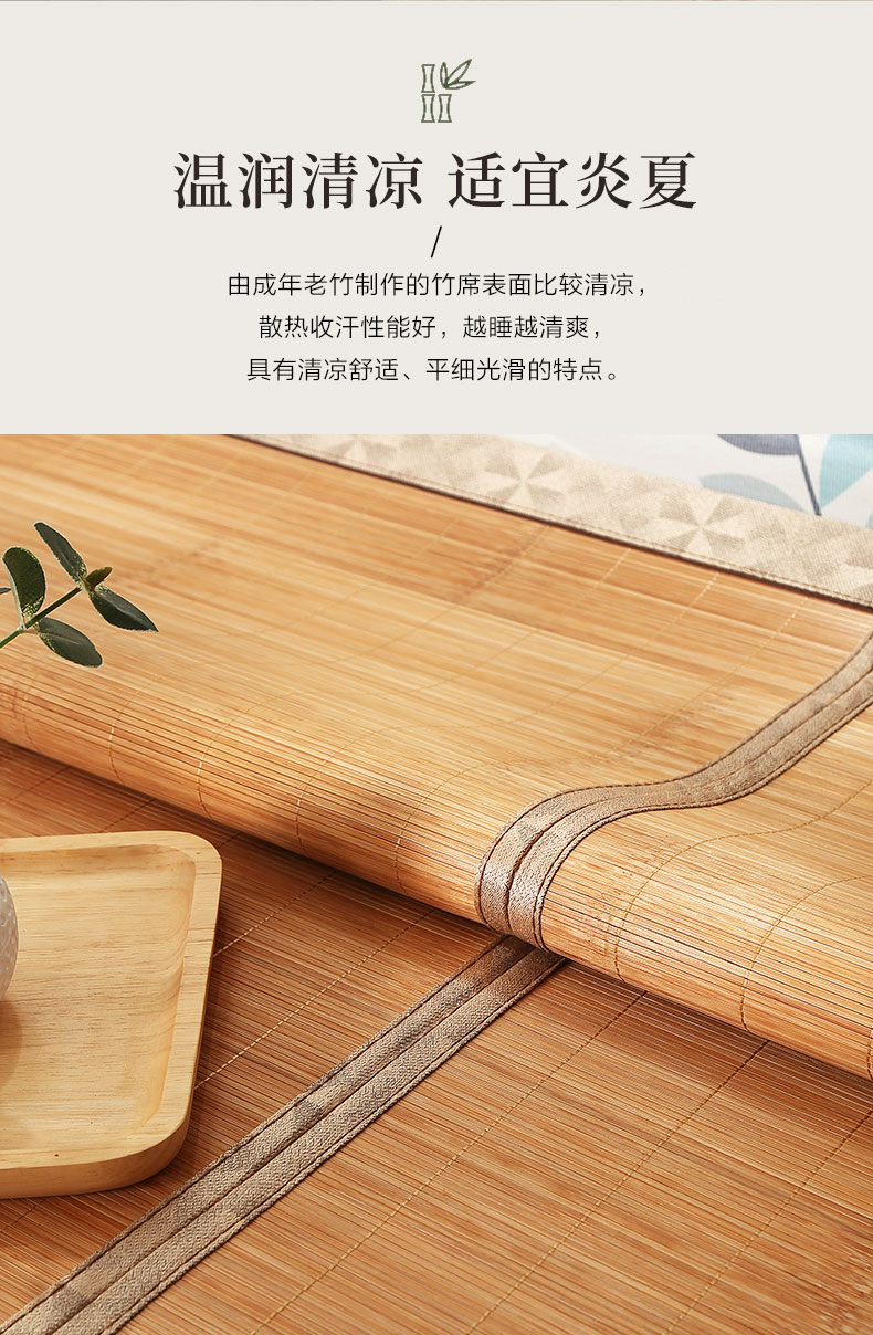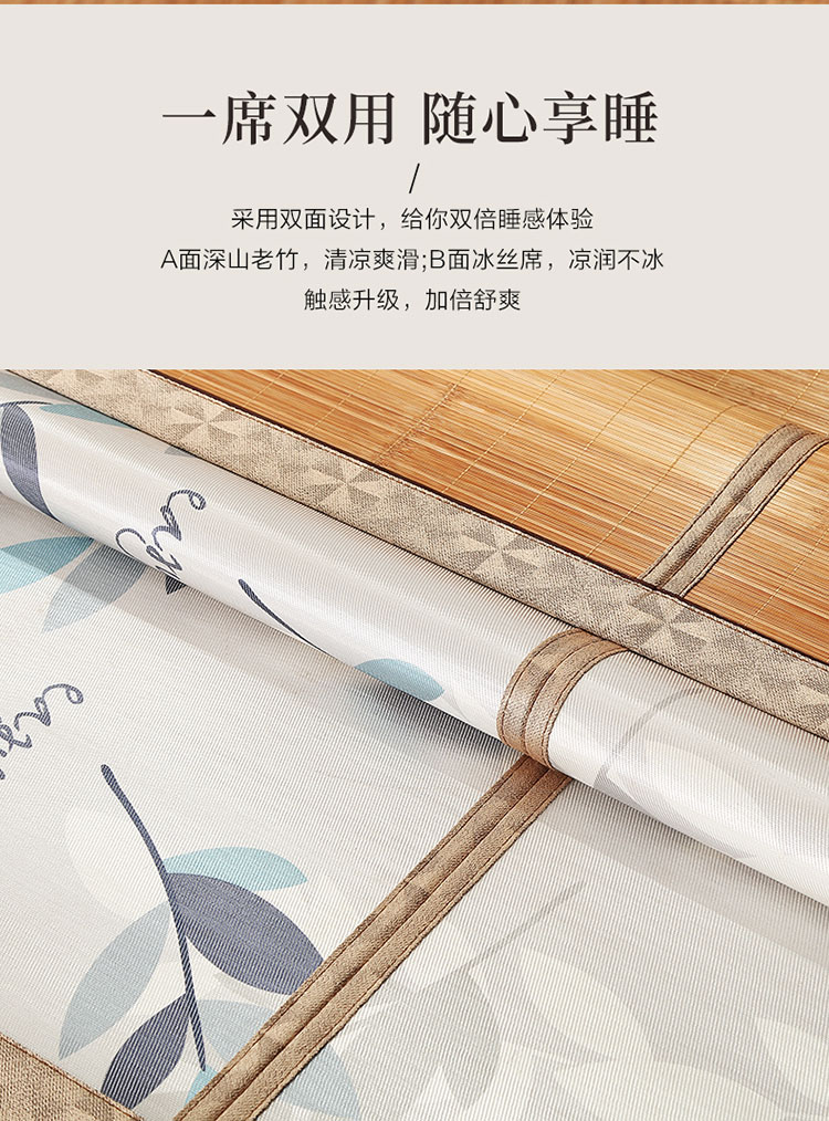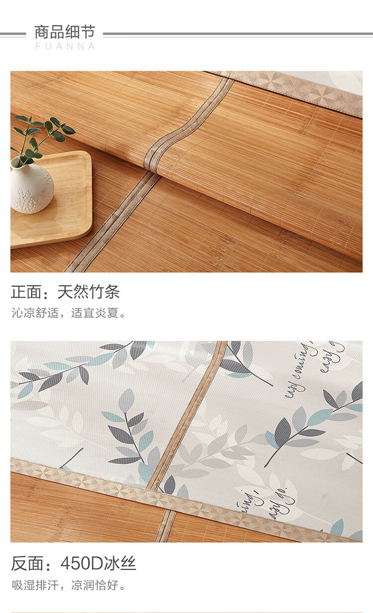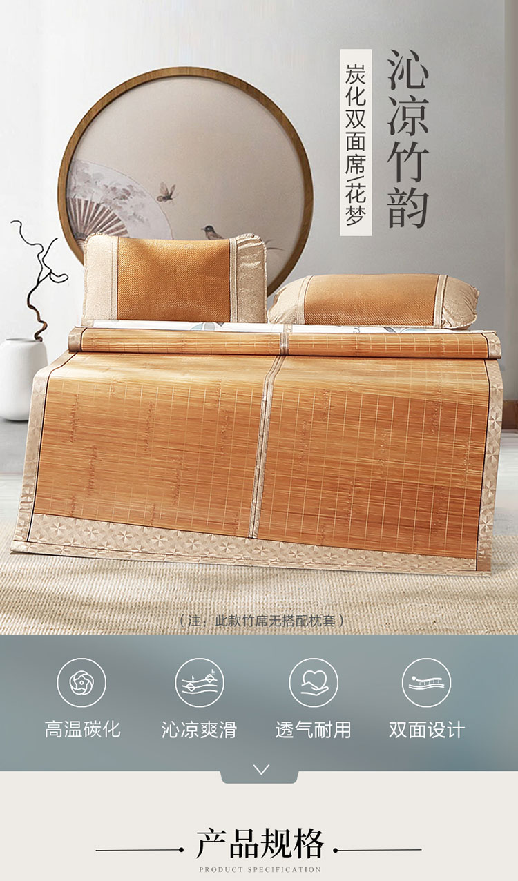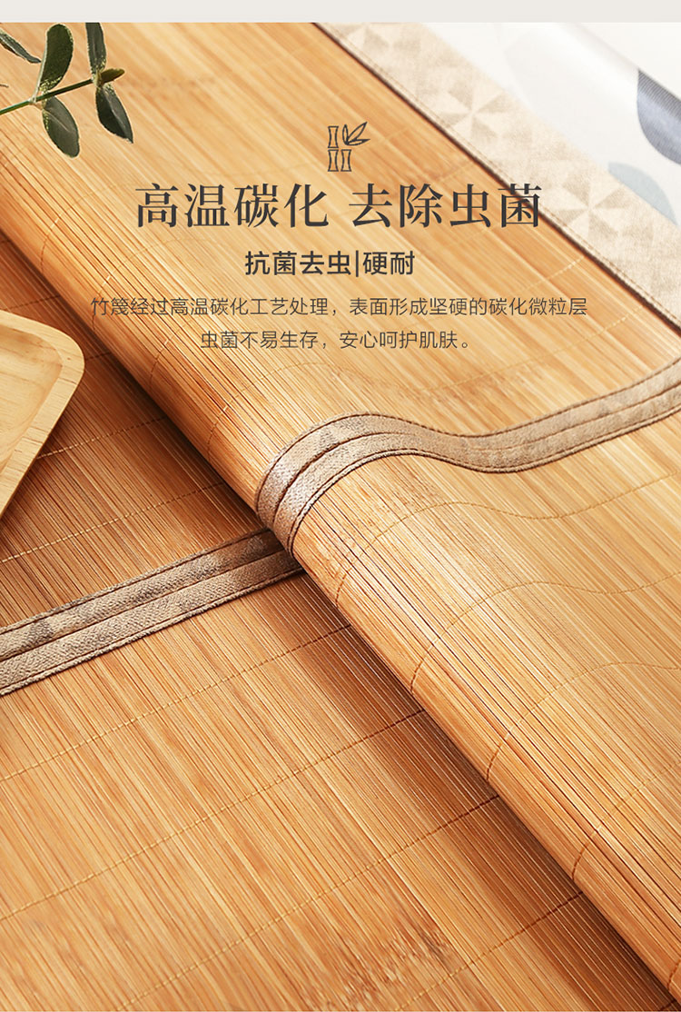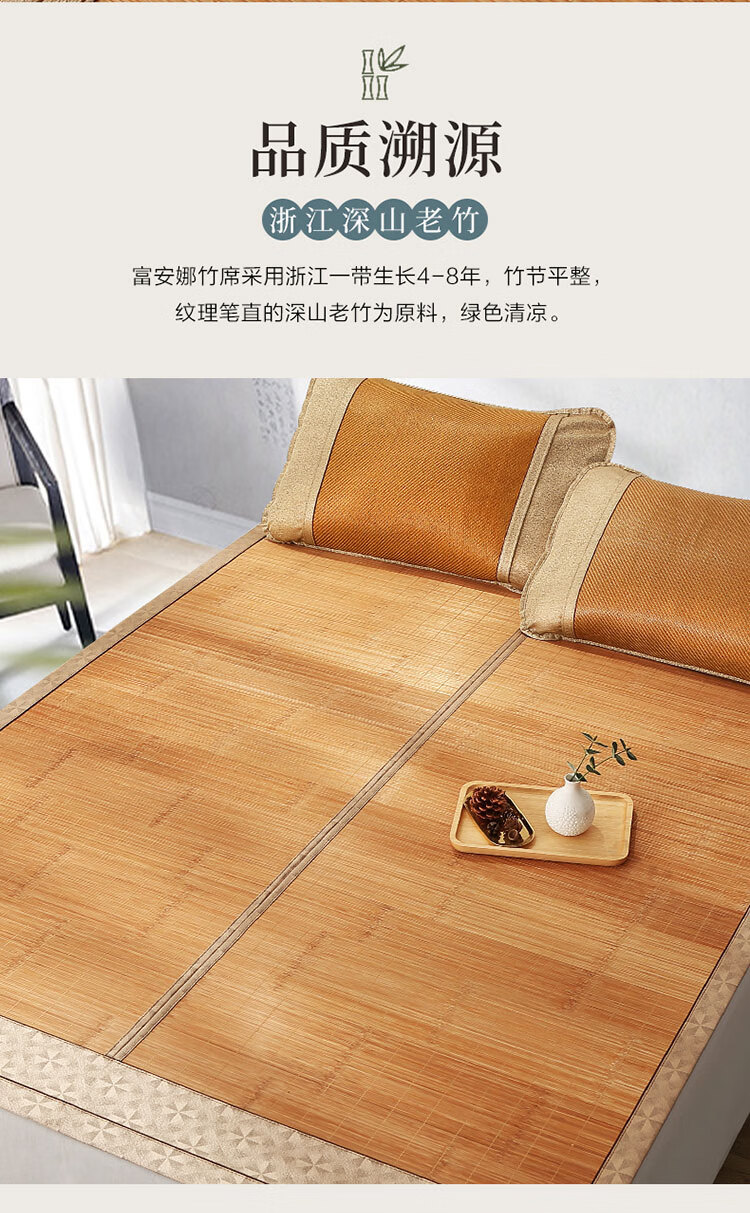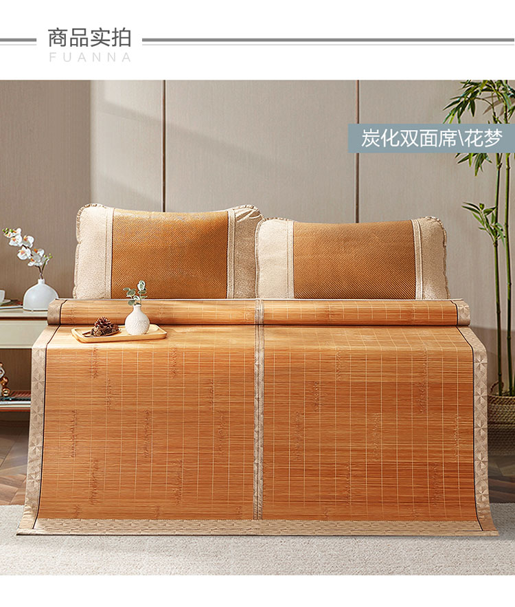富安娜家纺凉席竹席 炭化夏凉席子竹席冰丝双面可用 双人加大凉席 1.8米床适用