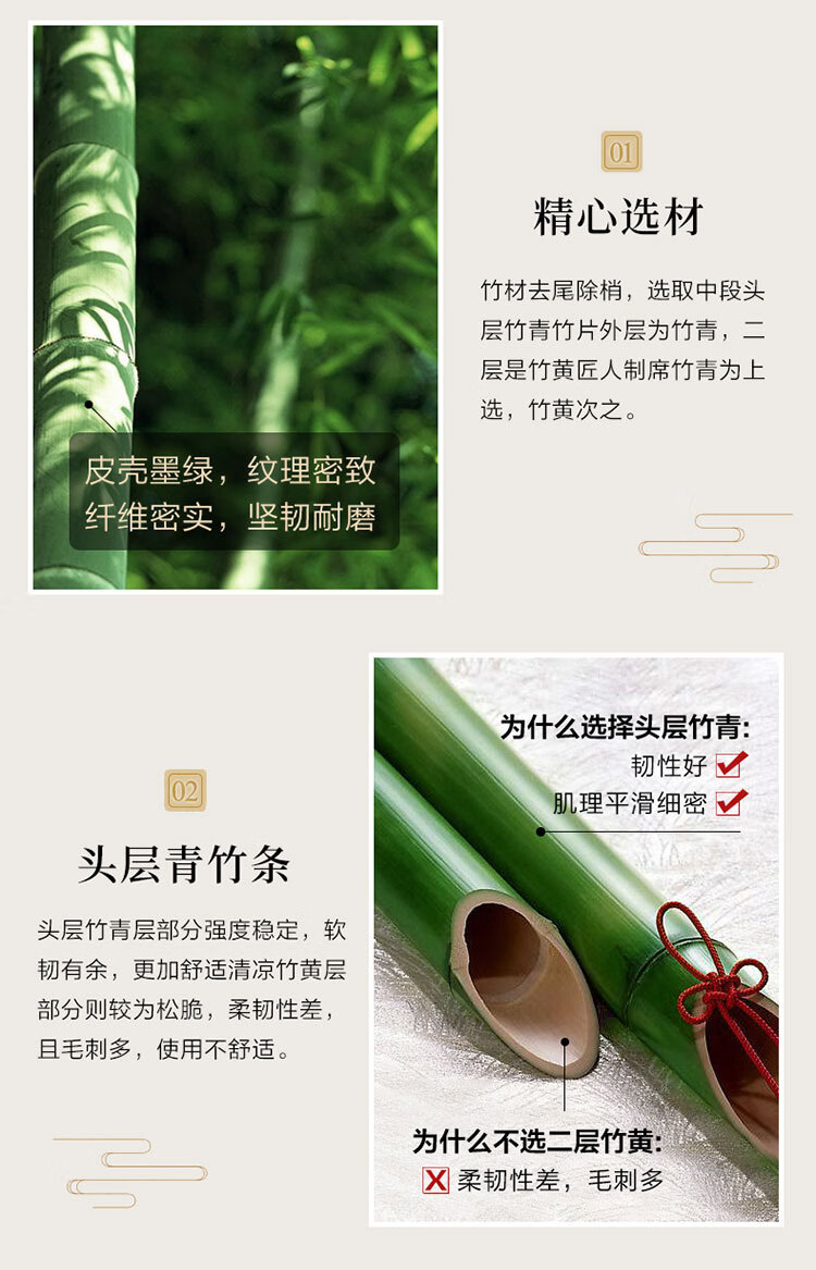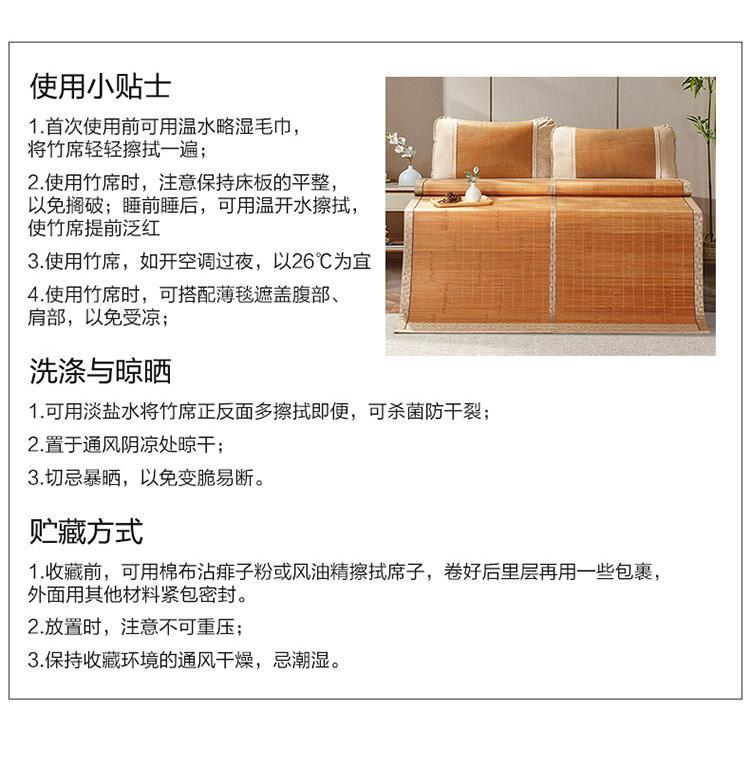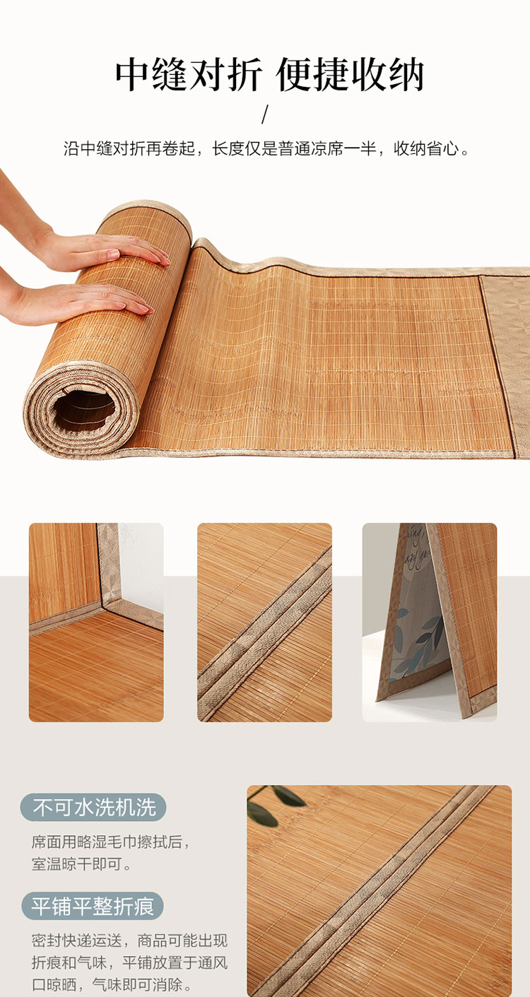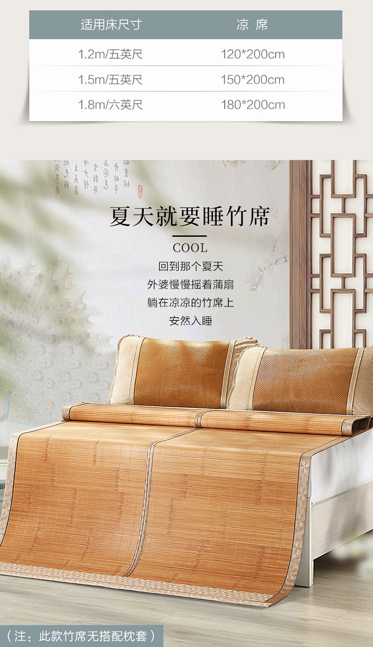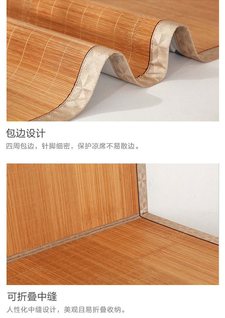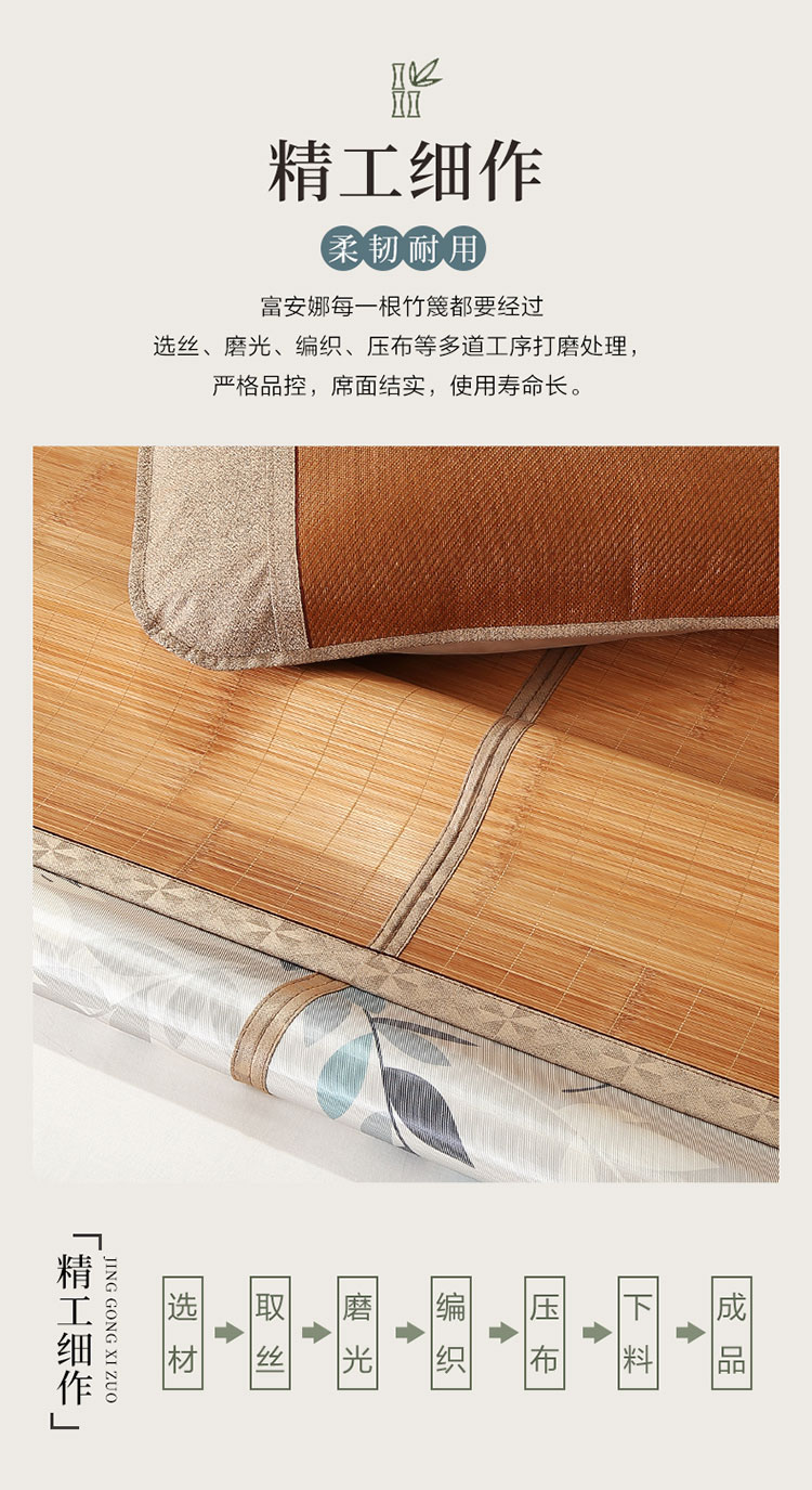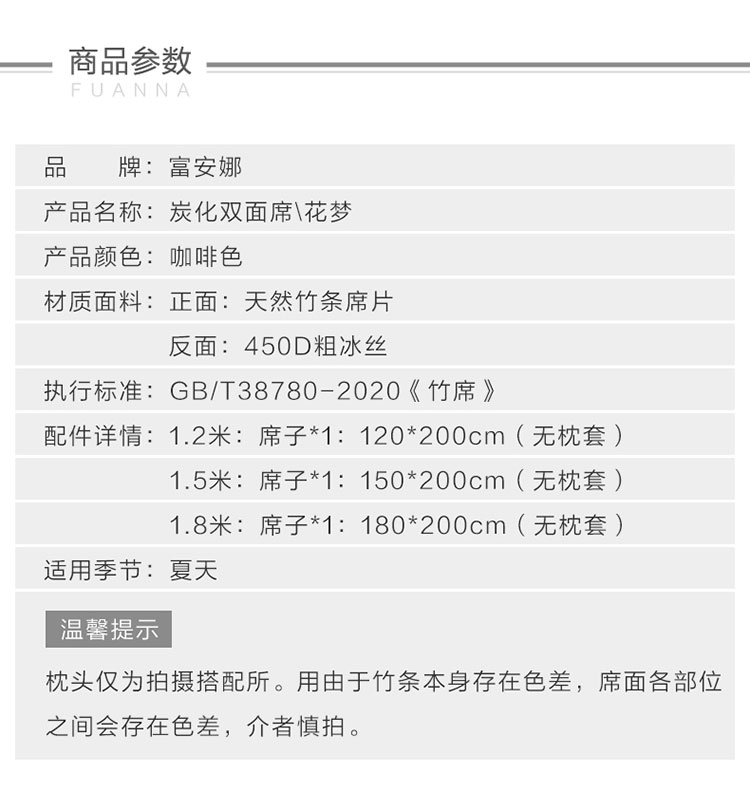富安娜家纺凉席竹席 炭化夏凉席子竹席冰丝双面可用 双人加大凉席 1.8米床适用
