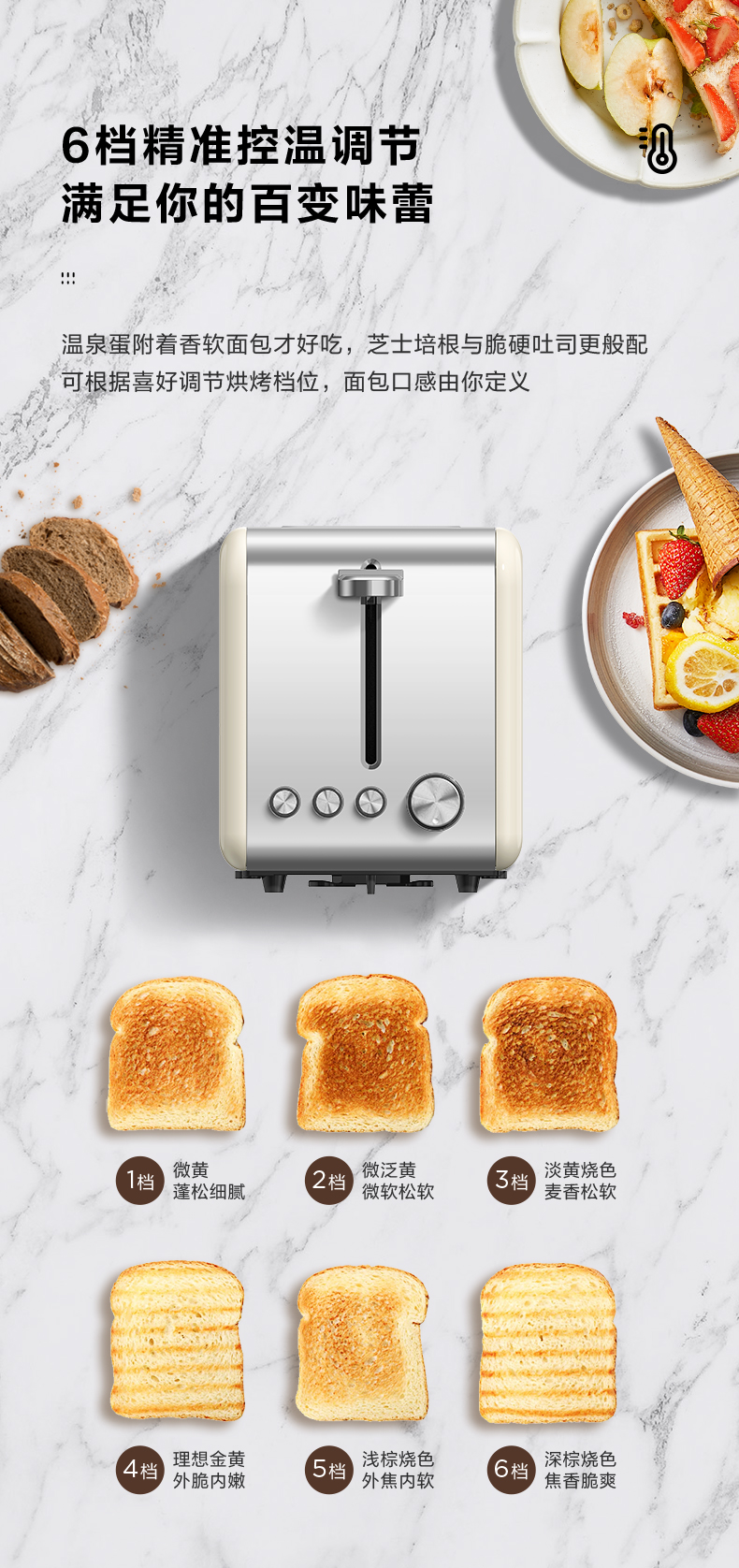 美的(Midea)多士炉面包机烤面包馒头片全自动家用小型不锈钢内胆吐司机食品级不锈钢机身R03 配烘烤架