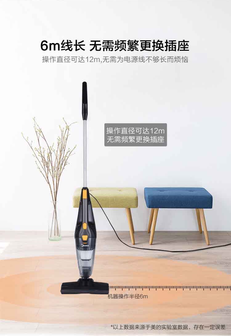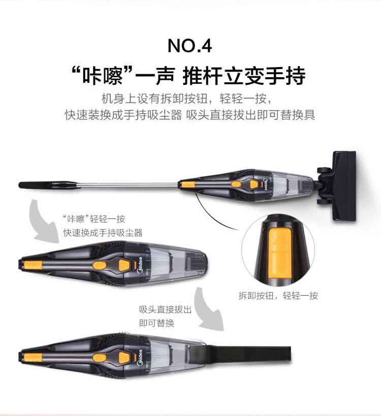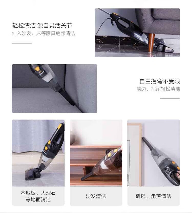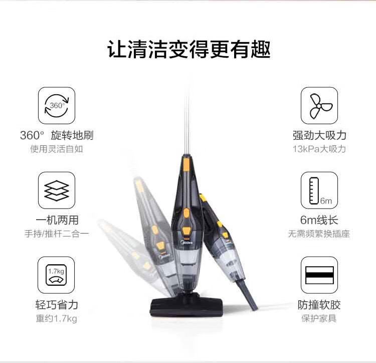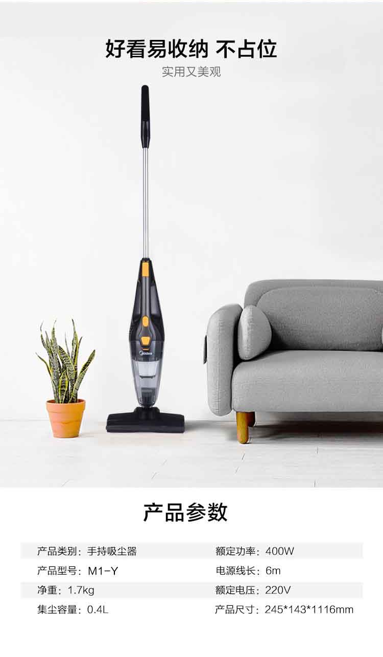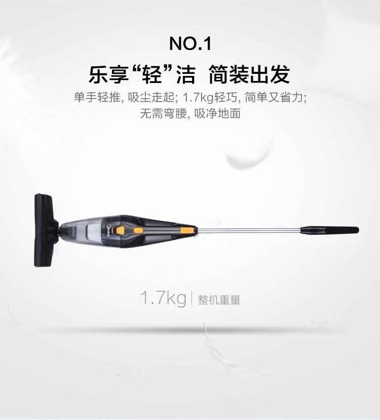 美的(Midea) 吸尘器手持推杆轻巧两用强劲吸力360度旋转防撞软胶 M1-Y