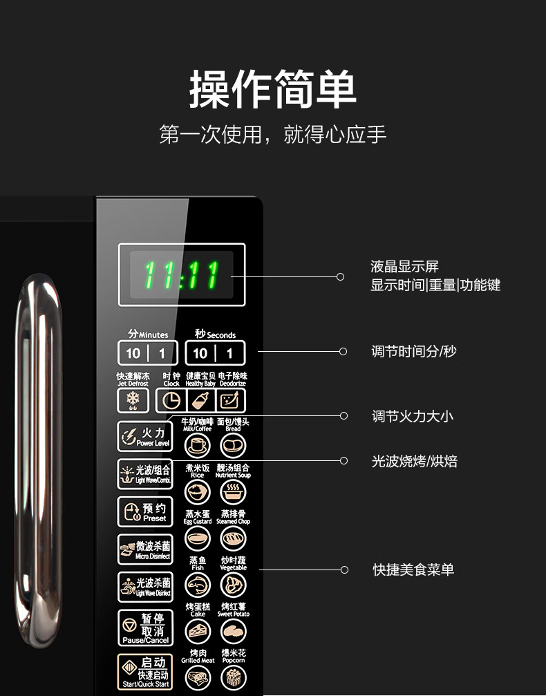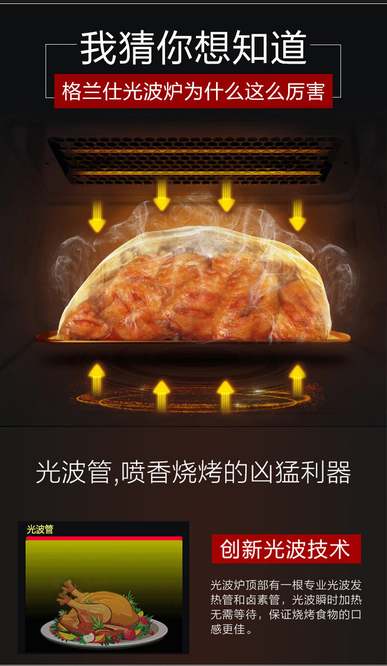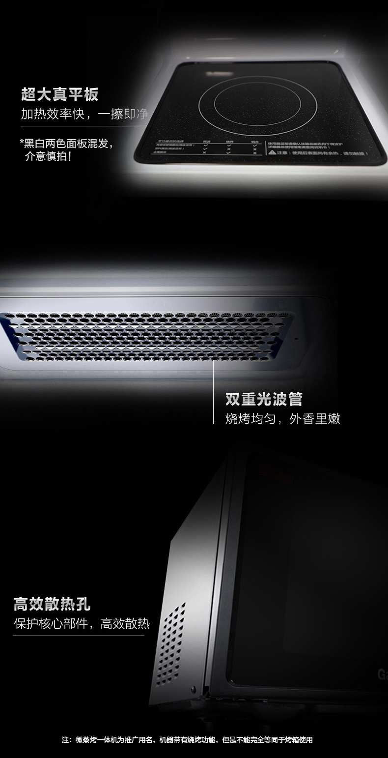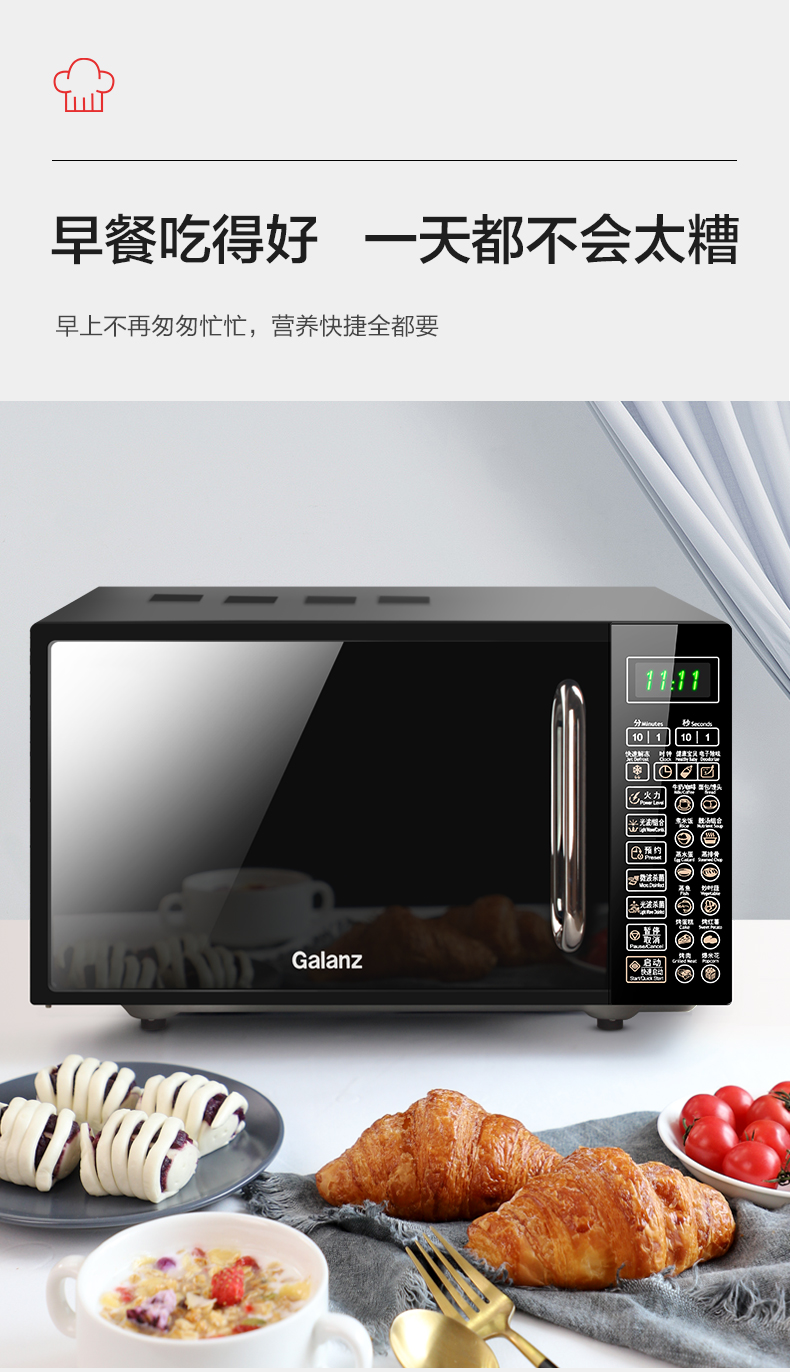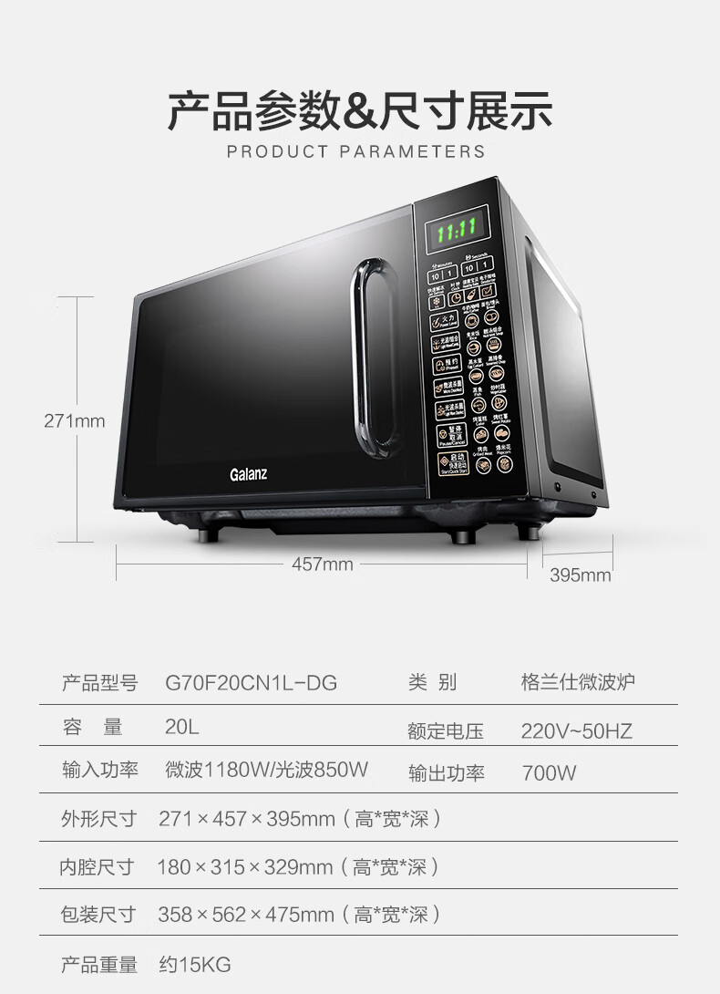 格兰仕(Galanz) 微波炉烤箱一体机 小型家用20升容量光波烧烤智能预约快速解冻 G70F20CN1L-DG(B0) 黑色
