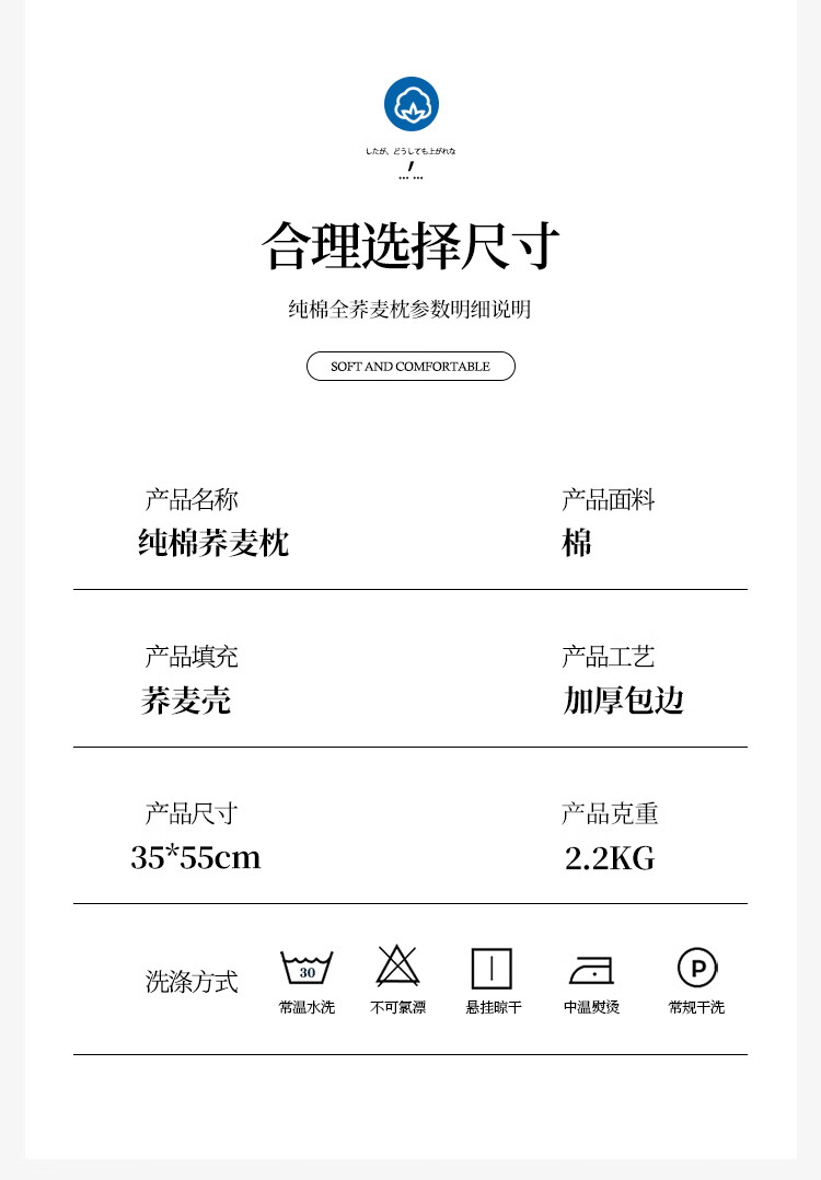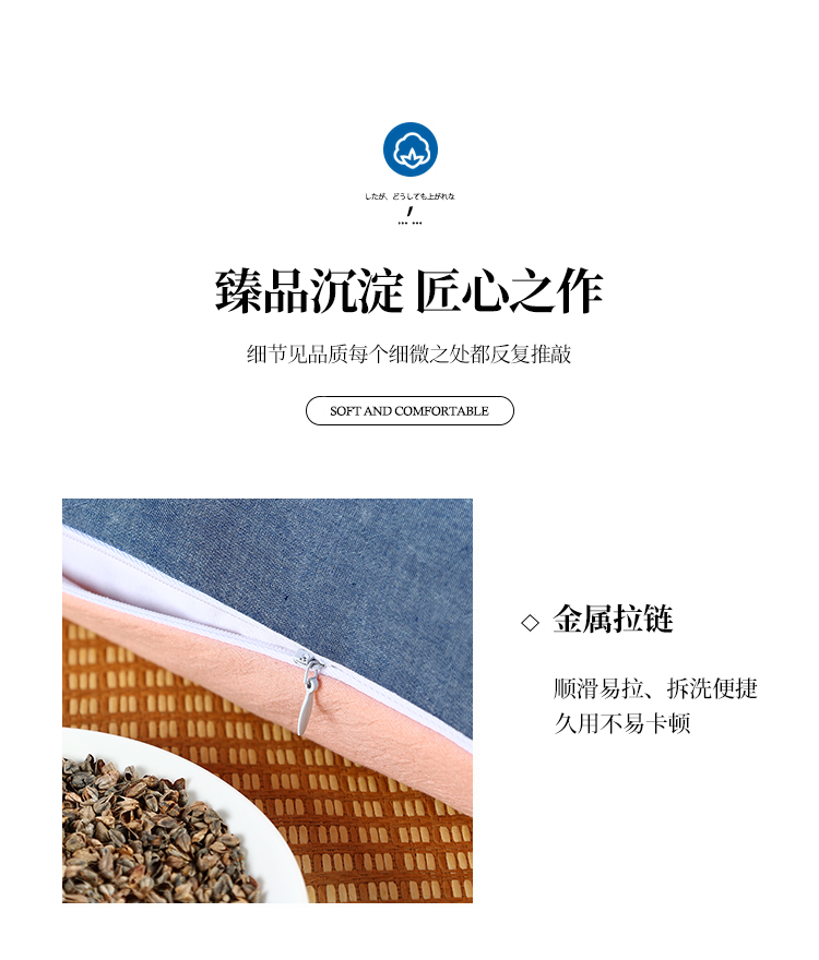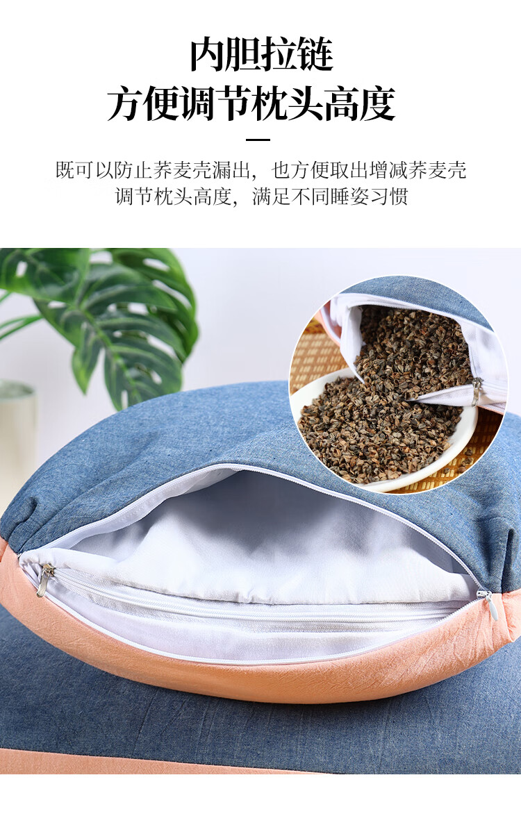 洁丽雅(Grace)纯棉荞麦枕头100%荞麦壳荞麦皮枕芯春夏秋季安睡枕颈椎枕 单只装