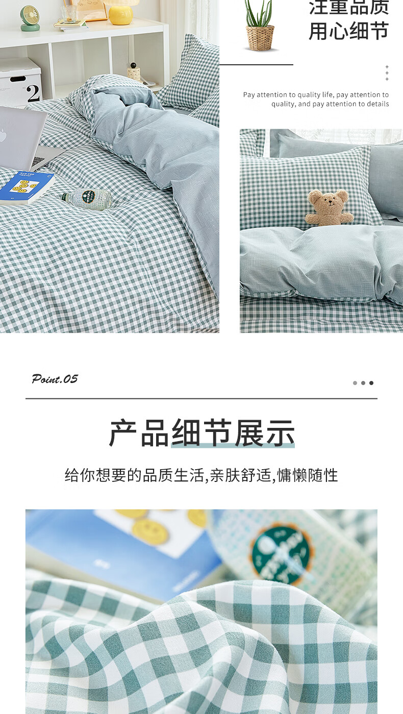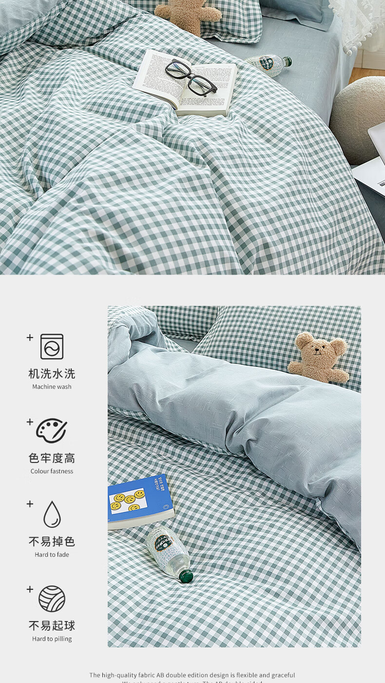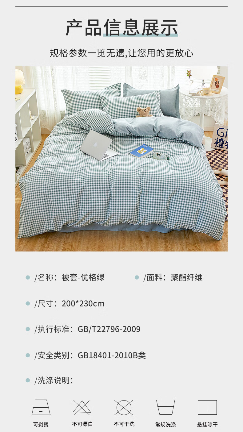 洁丽雅(Grace)亲肤被套 1.5/1.8米床上用品被单学生宿舍被套200*230cm 优格绿