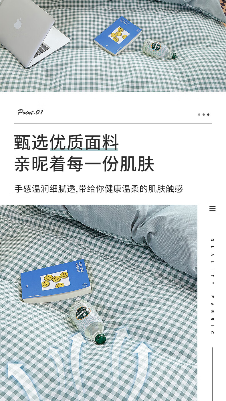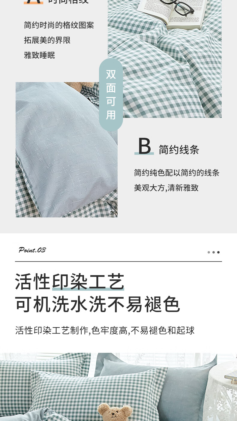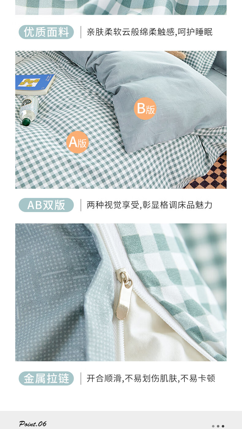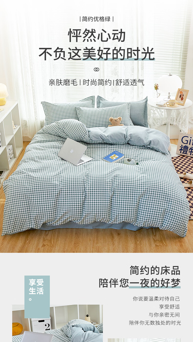洁丽雅(Grace)亲肤被套 1.5/1.8米床上用品被单学生宿舍被套200*230cm 优格绿
