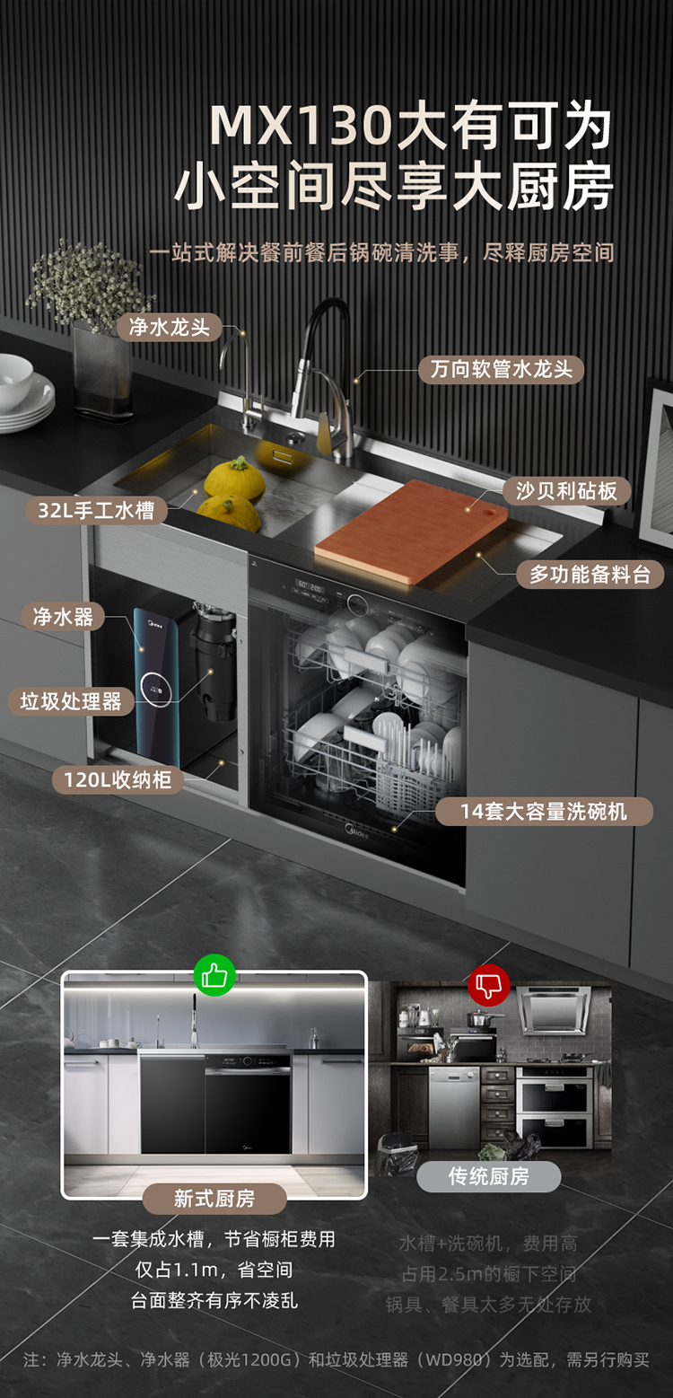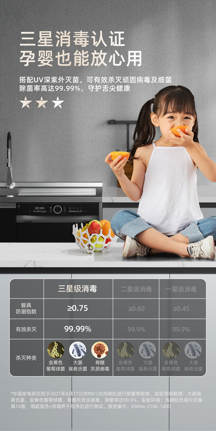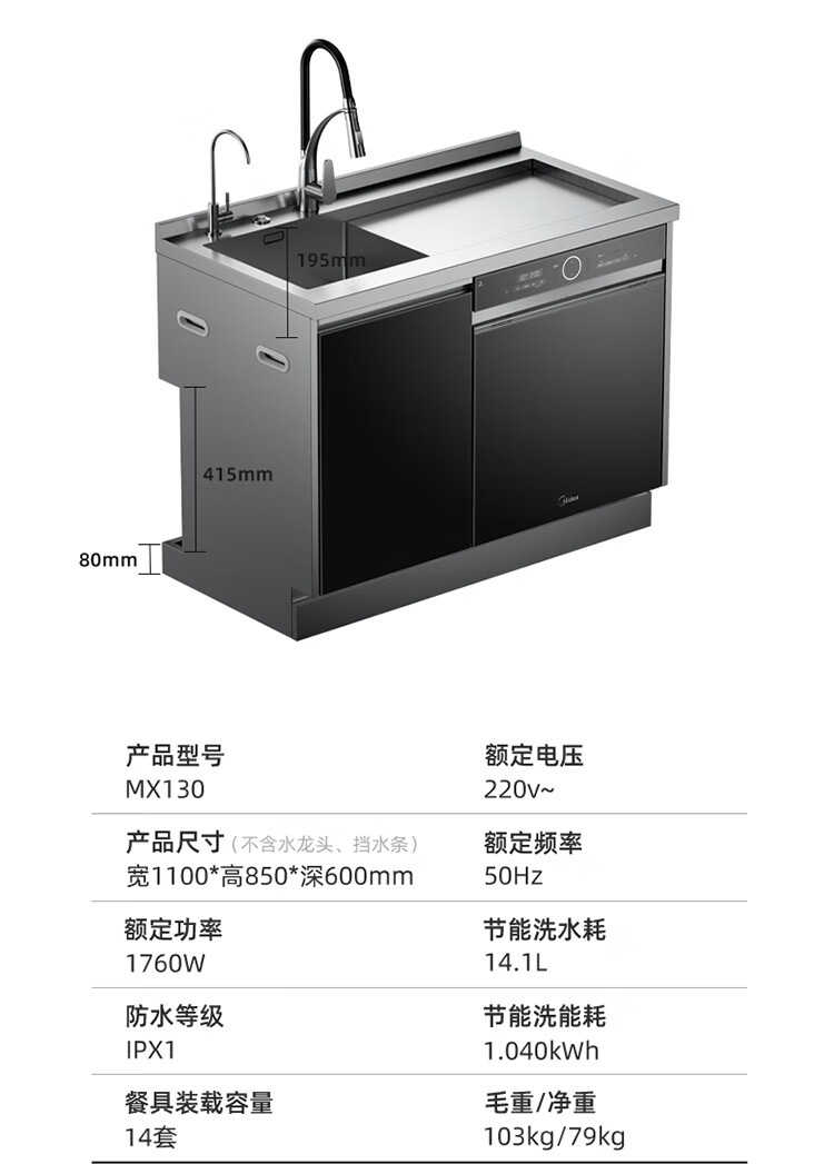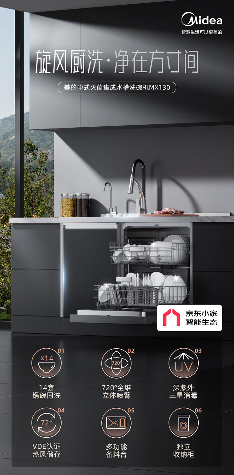 美的(Midea)集成水槽洗碗机一体 幽门螺杆菌去除率99.99%1100mm三星消毒 14套大容量 MX130京东小家