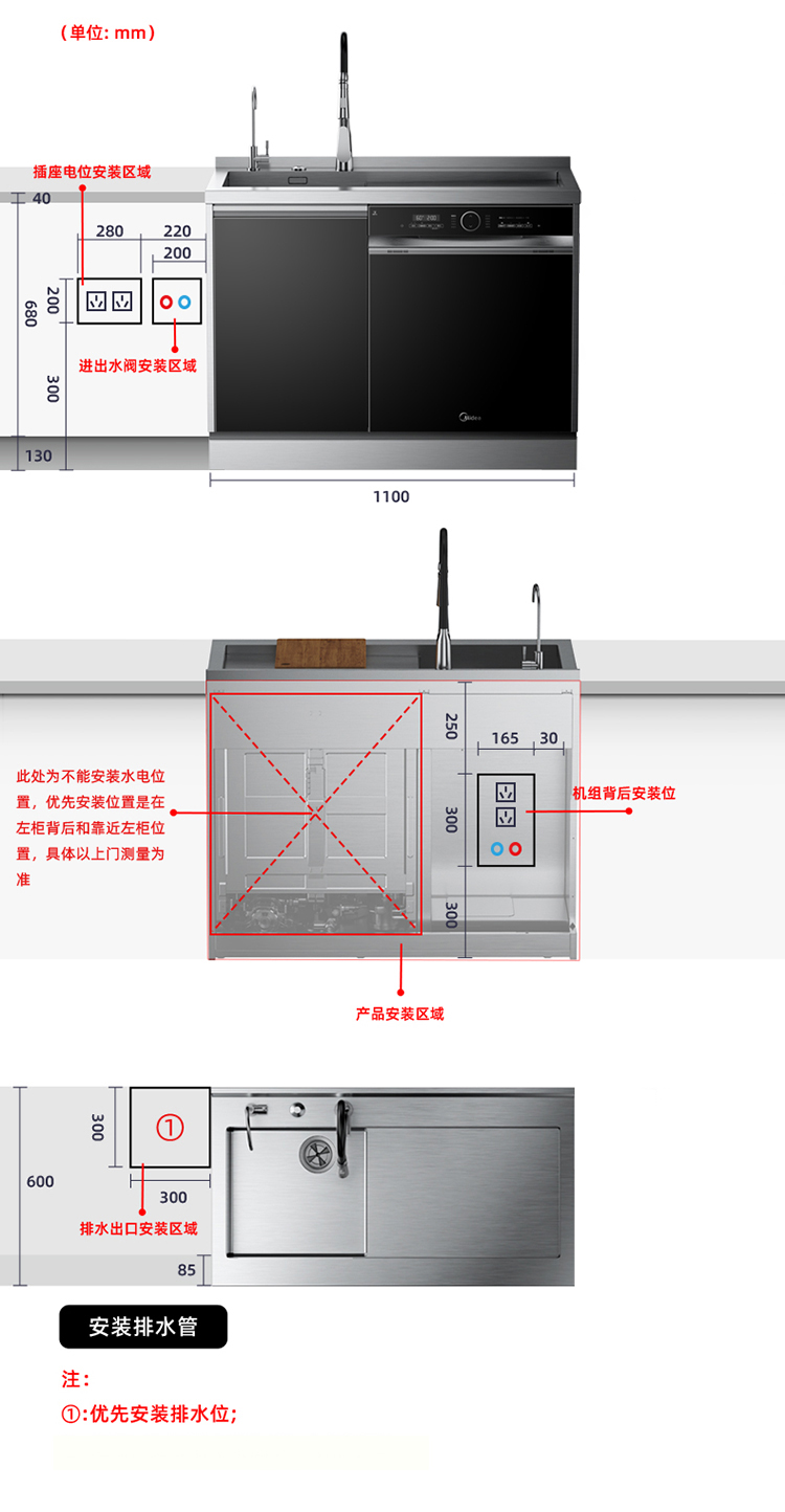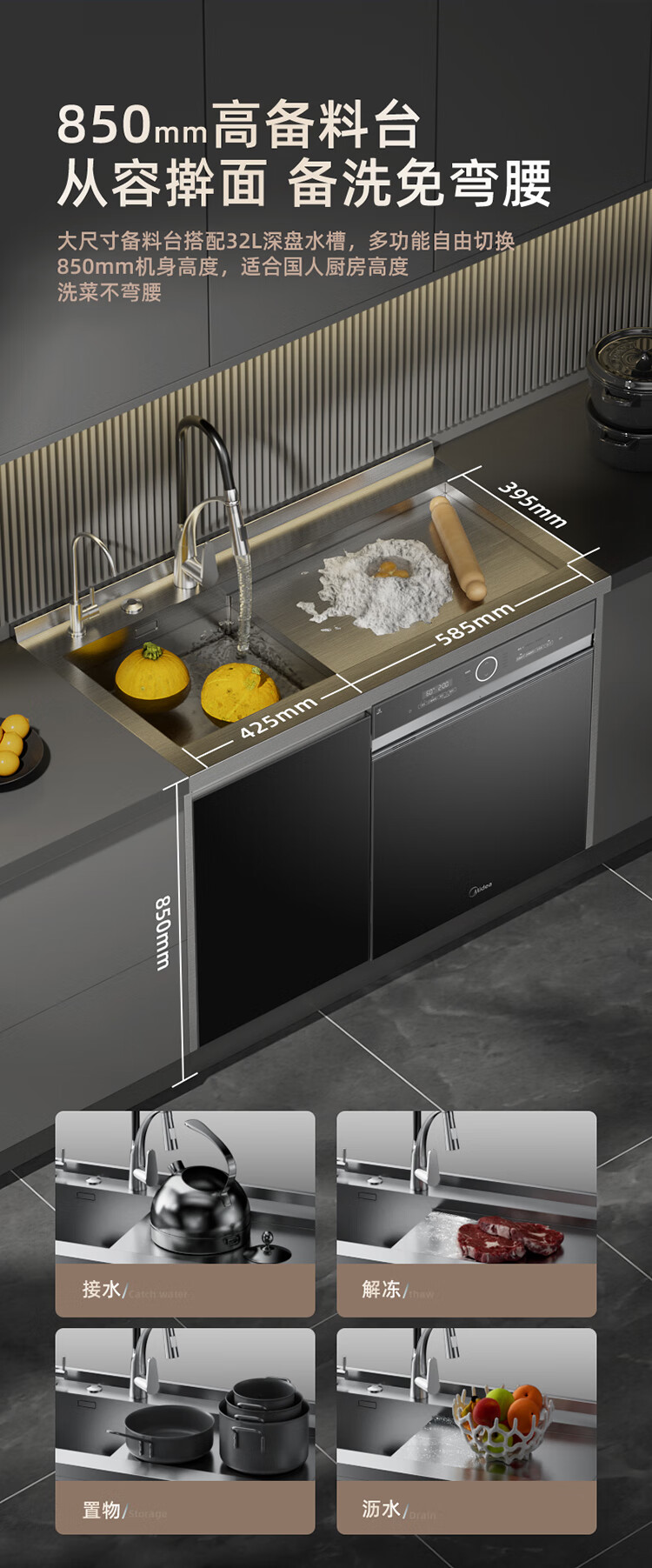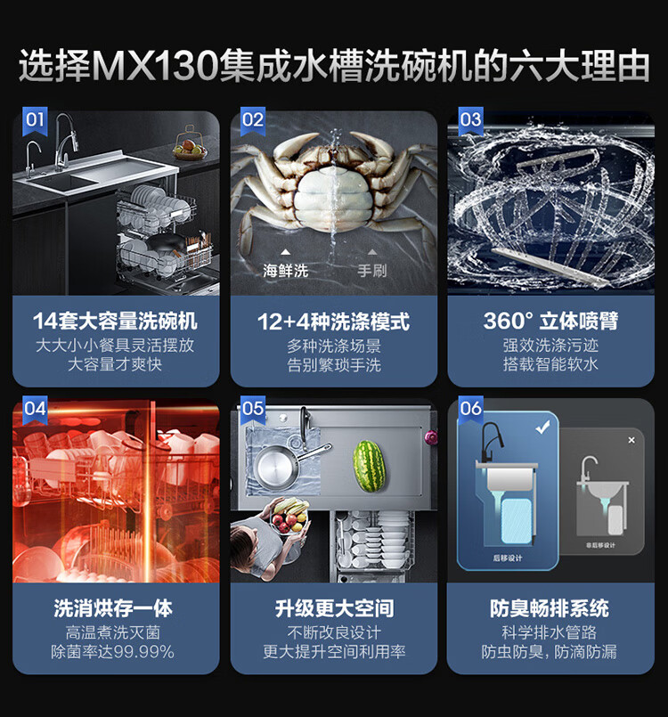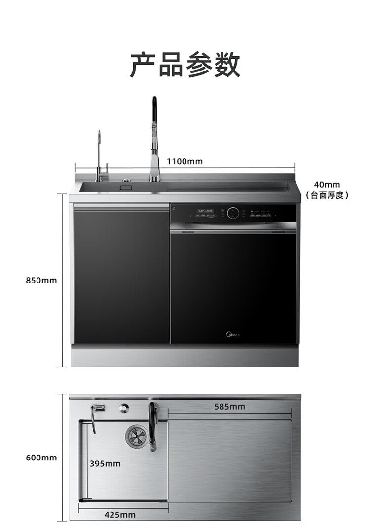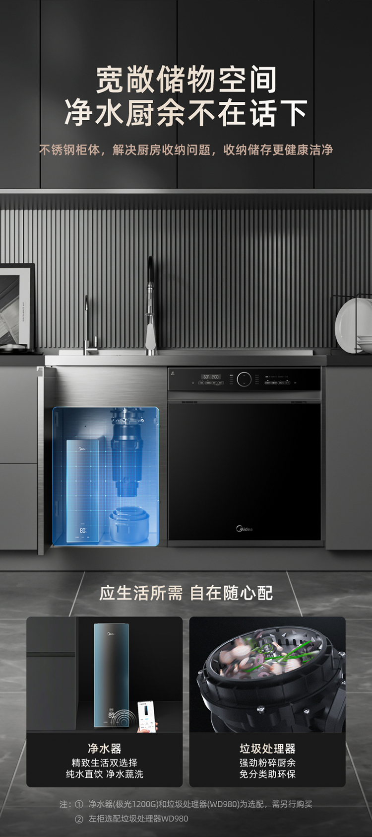 美的(Midea)集成水槽洗碗机一体 幽门螺杆菌去除率99.99%1100mm三星消毒 14套大容量 MX130京东小家