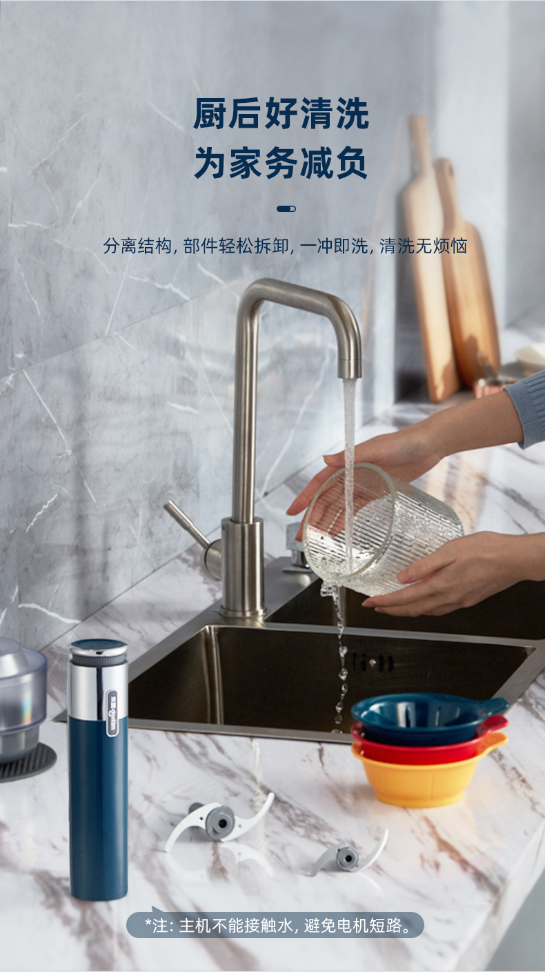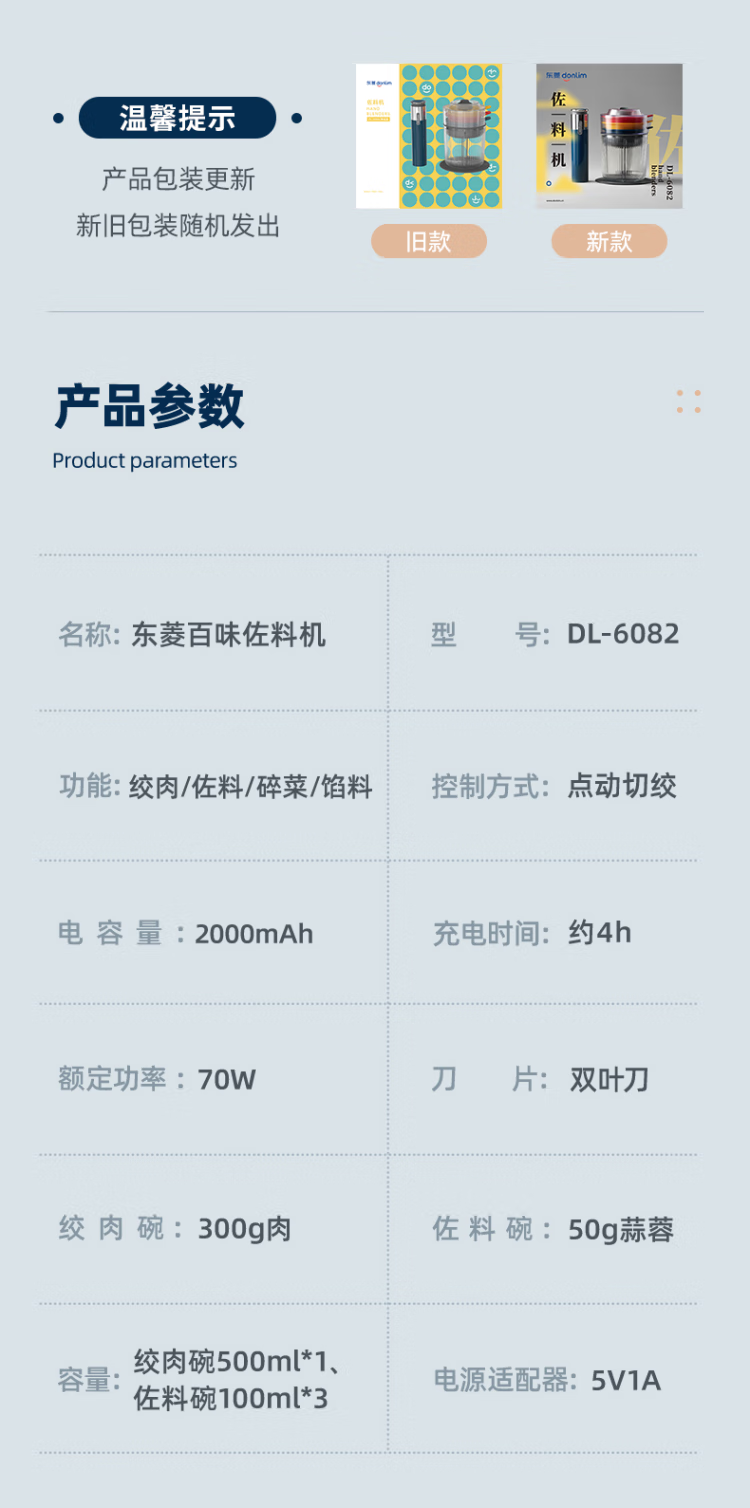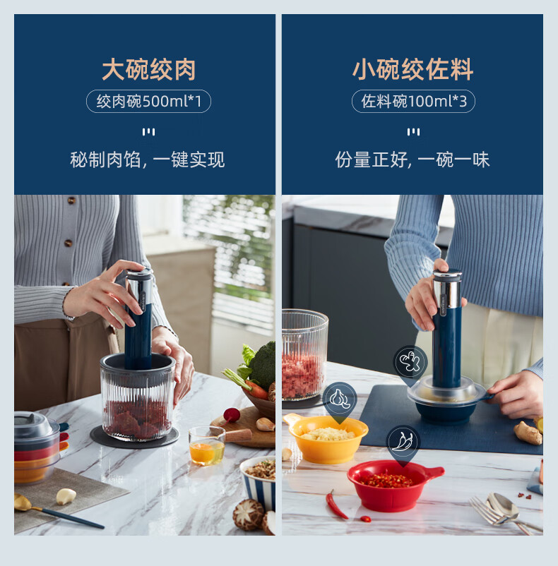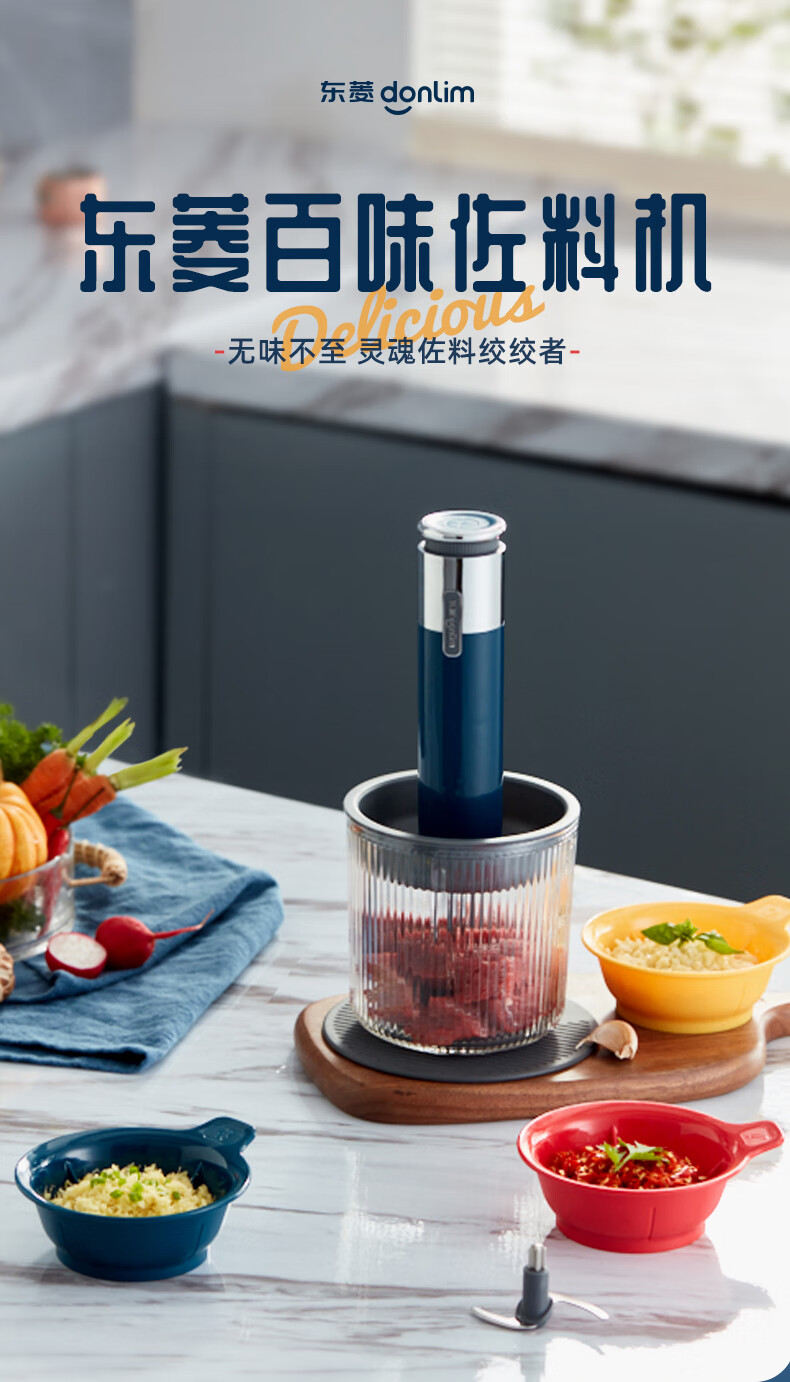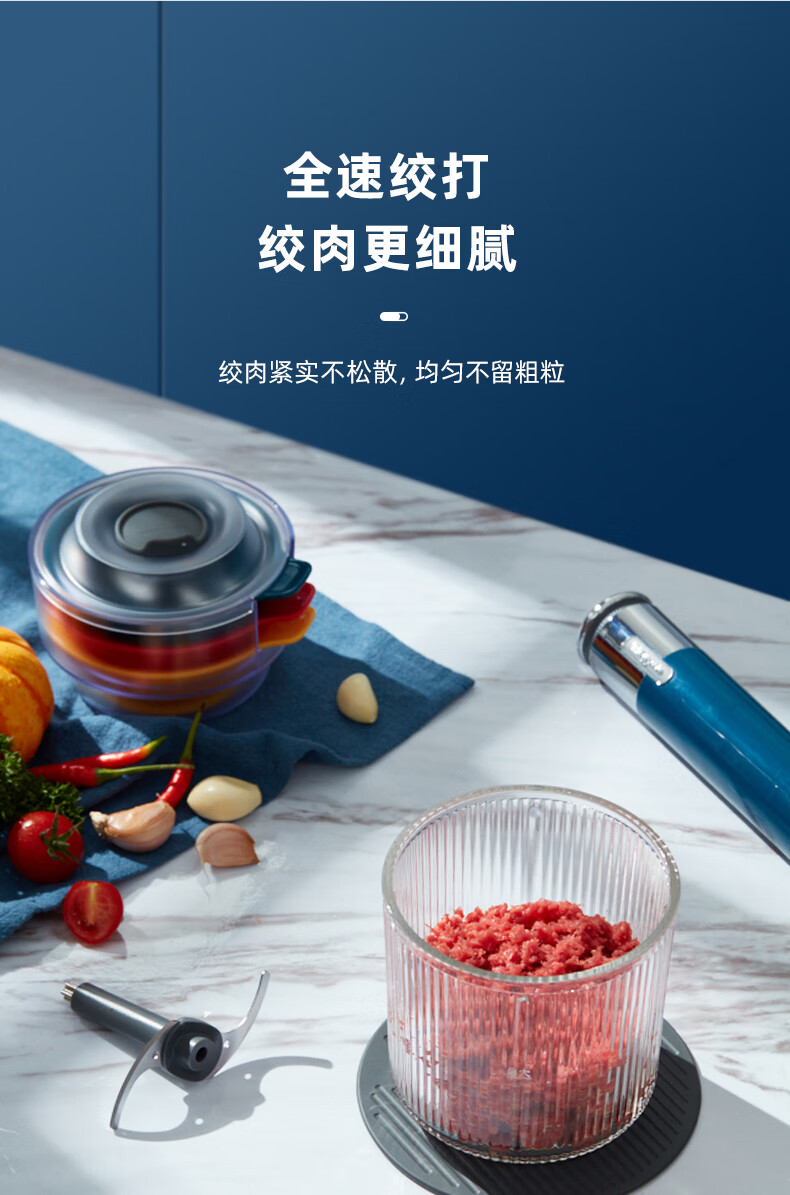 东菱(Donlim)绞肉机家用小型绞馅机辅食机料理棒切菜碎肉机无线捣蒜器 多功能百味佐料机DL-6082(静谧蓝)