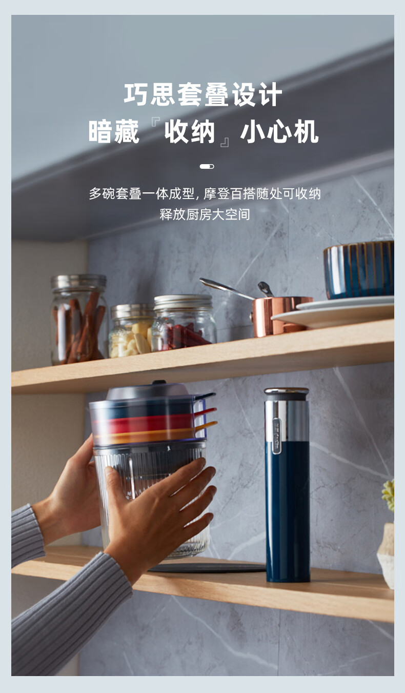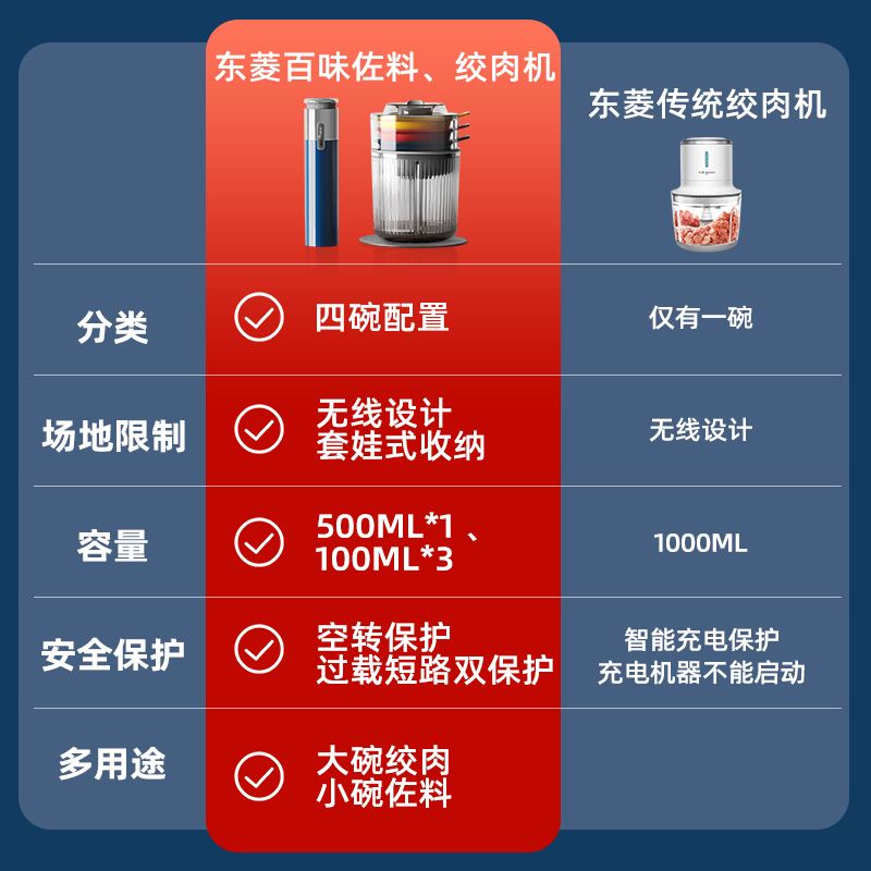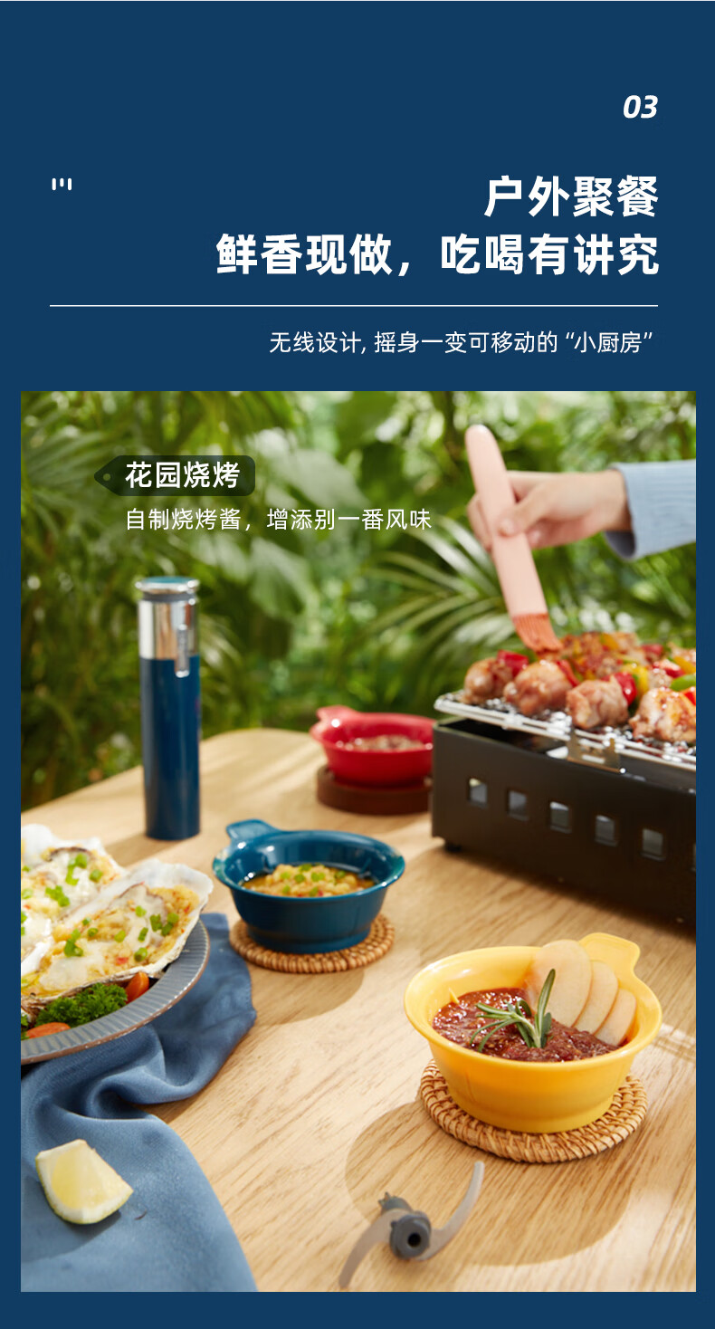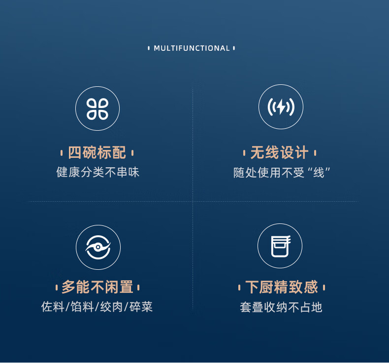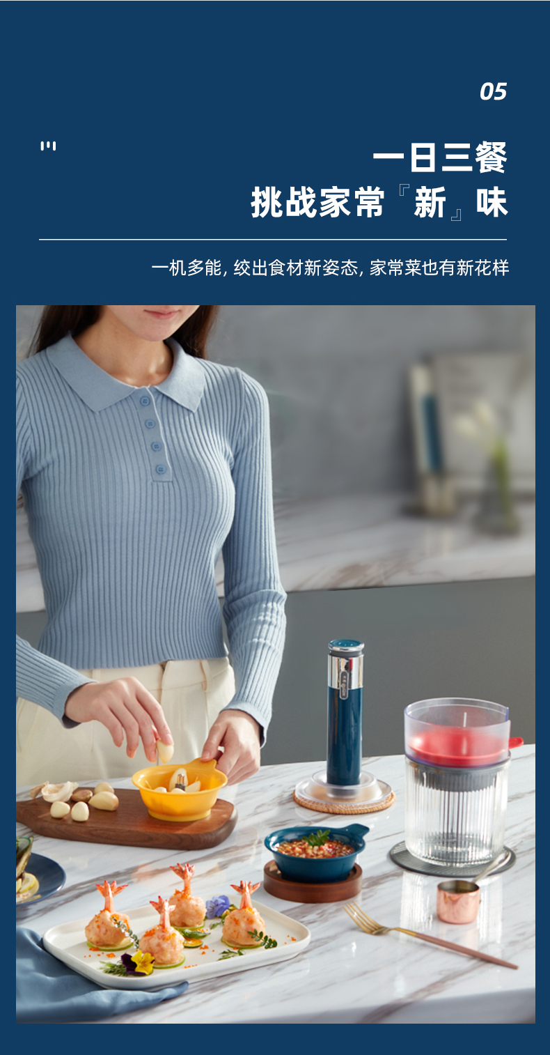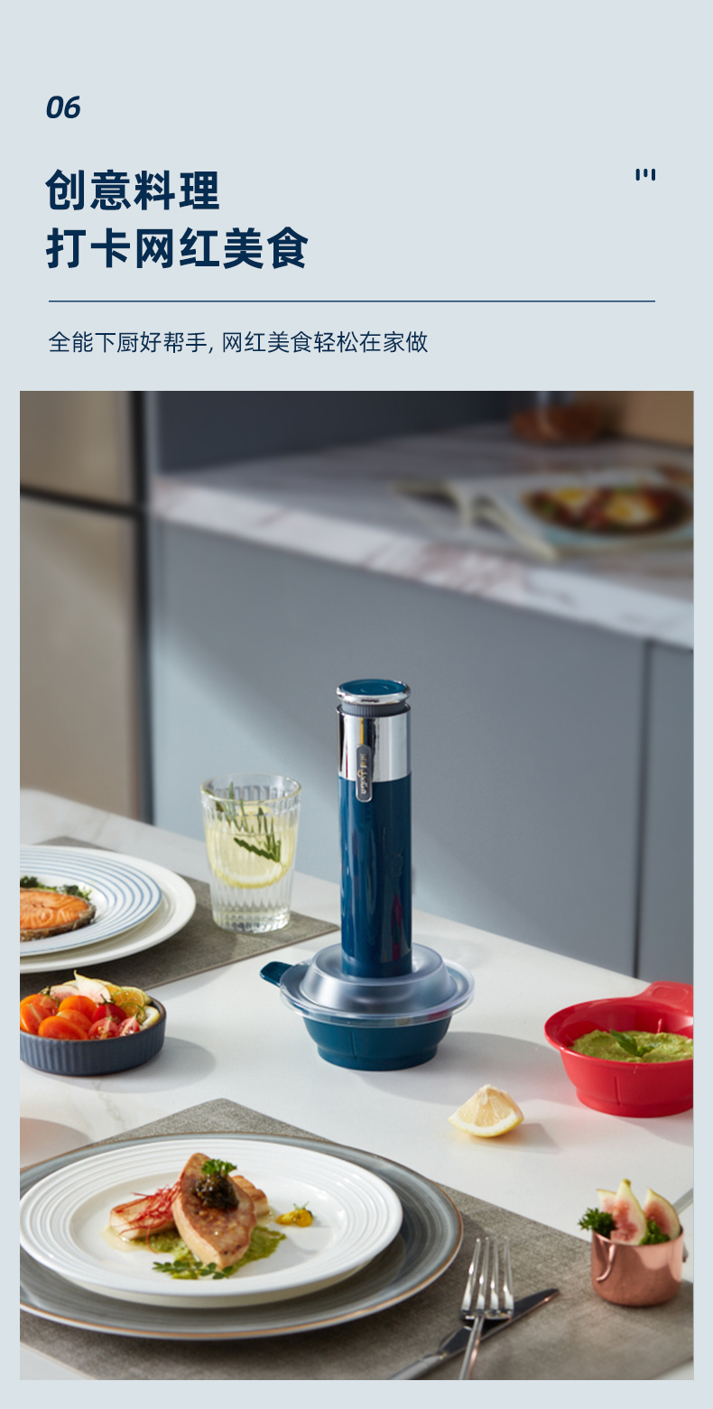 东菱(Donlim)绞肉机家用小型绞馅机辅食机料理棒切菜碎肉机无线捣蒜器 多功能百味佐料机DL-6082(静谧蓝)
