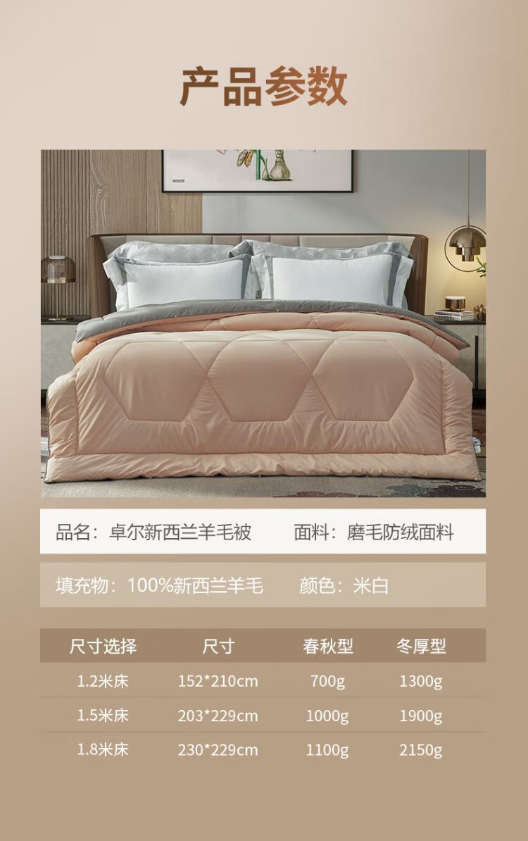 富安娜(FUANNA)【门店同款】被芯 卓尔新西兰羊毛冬厚被 1.5m床