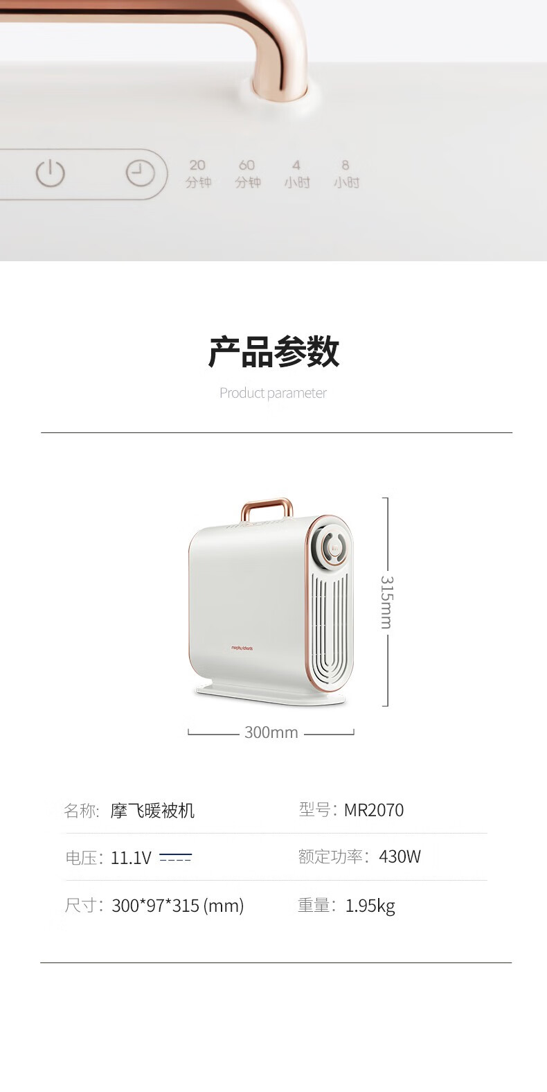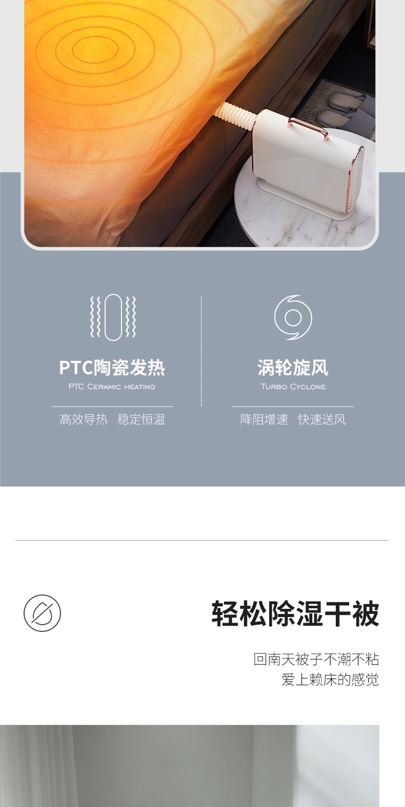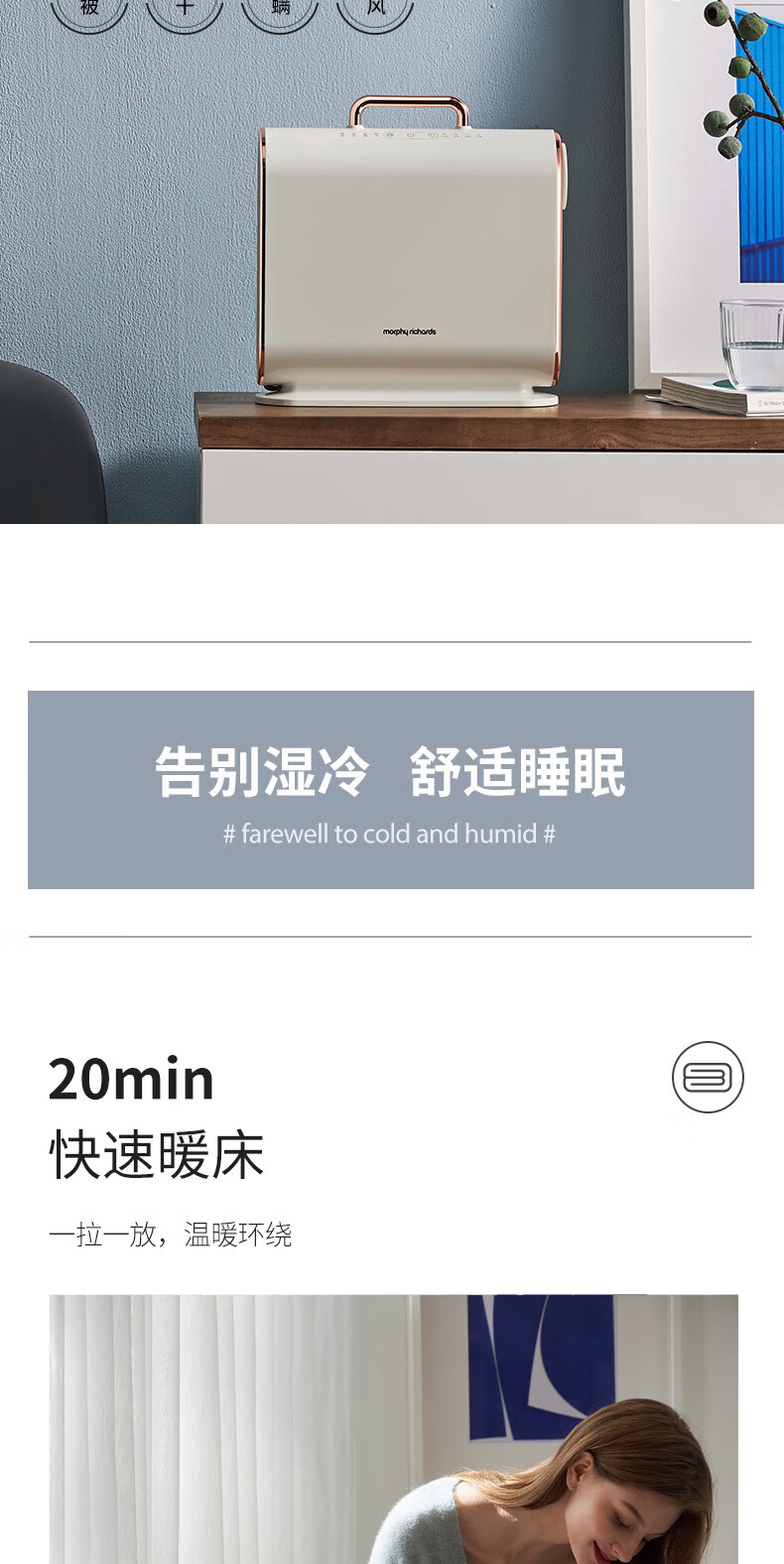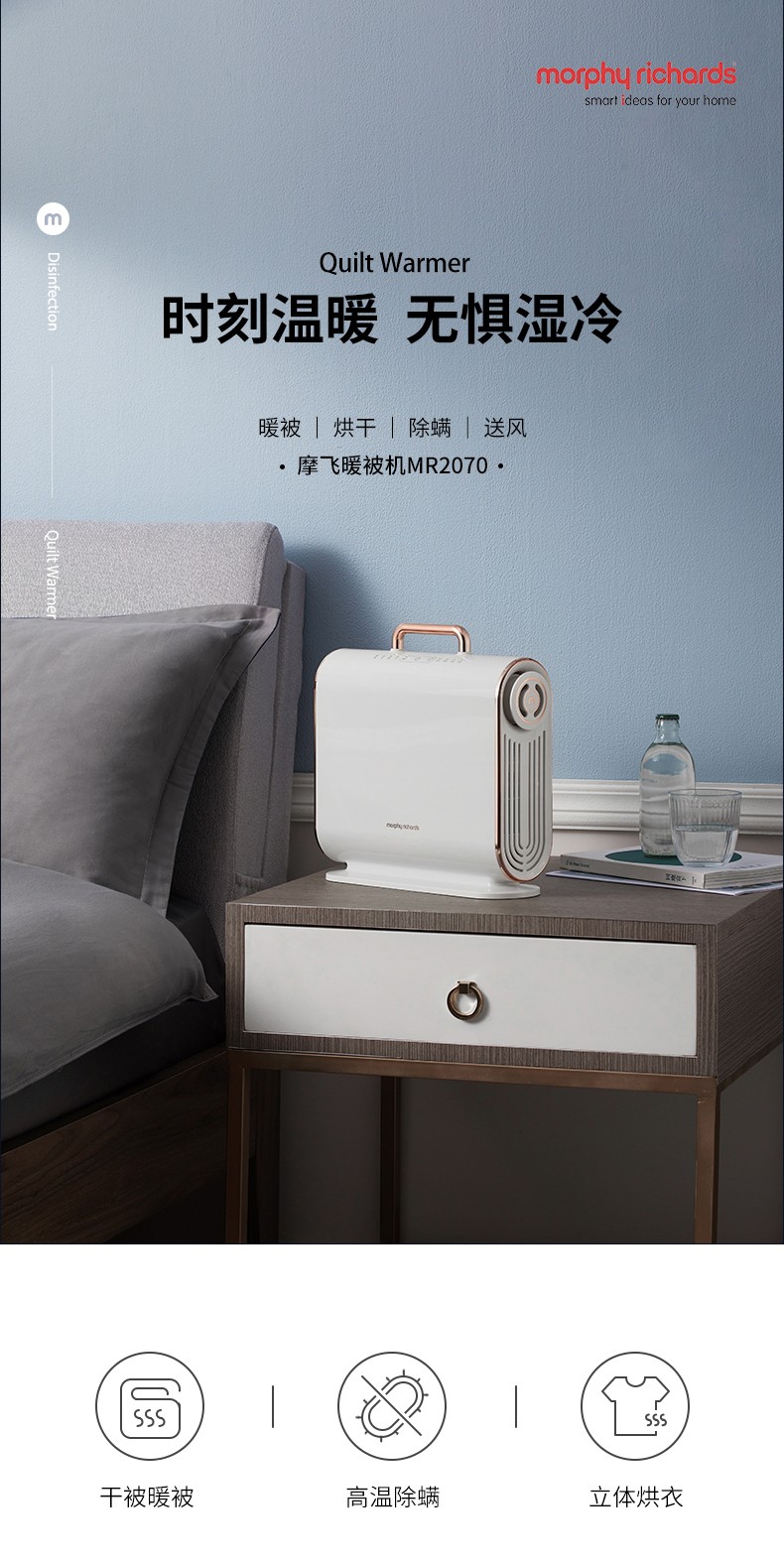 摩飞电器(Morphyrichards)烘被机暖被机被子烘干机家用小型便携式速干衣机床上除螨神器 MR2070 暖被机