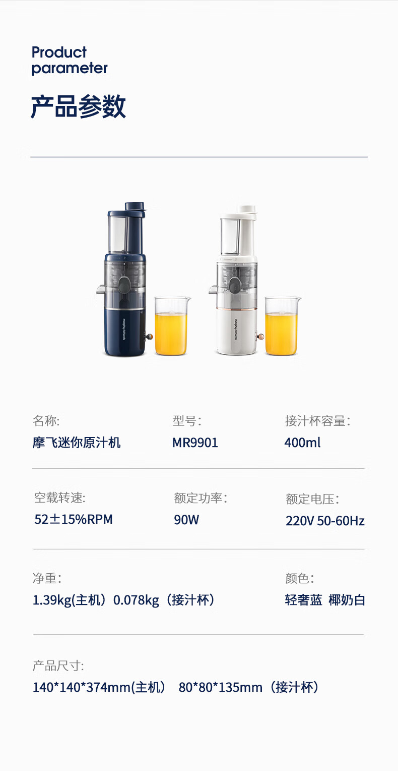 摩飞电器(Morphyrichards)榨汁机 家用原汁机 渣汁分离 多功能全自动果蔬榨果汁机 MR9901 蓝色