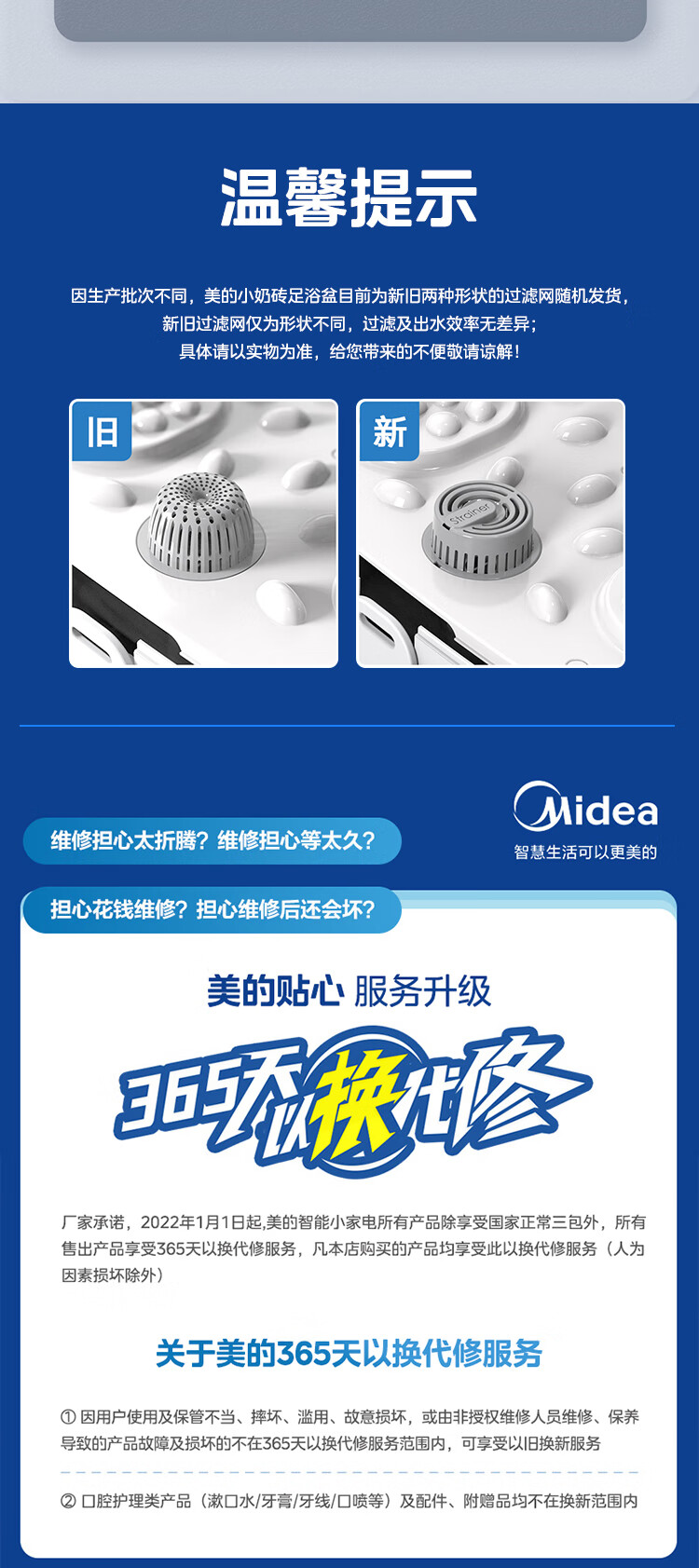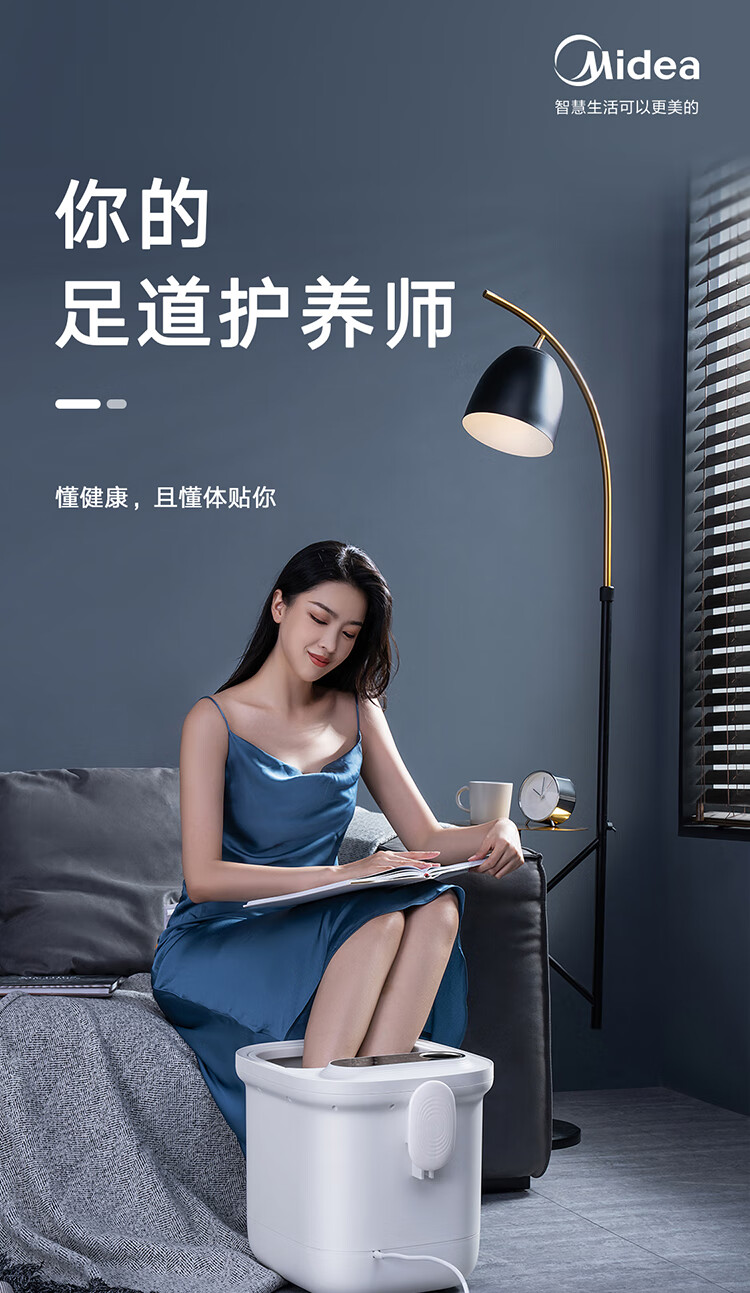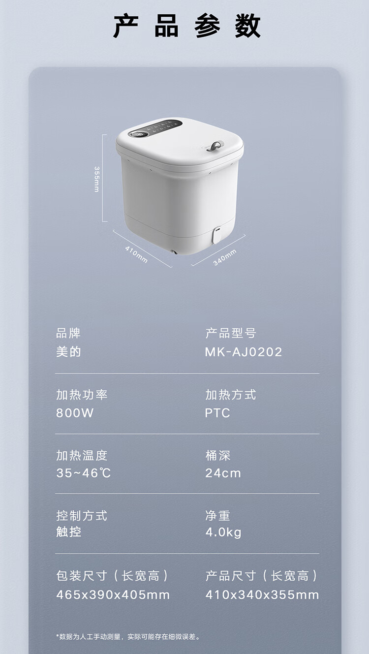 美的(Midea)泡脚桶足浴盆全自动按摩泡脚桶洗脚盆高深桶家用送七夕情人节礼物送父母礼物MK-AJ0202