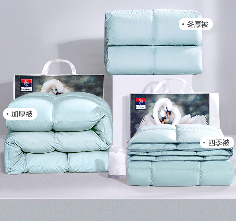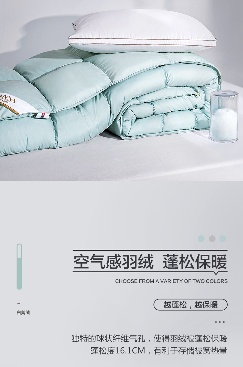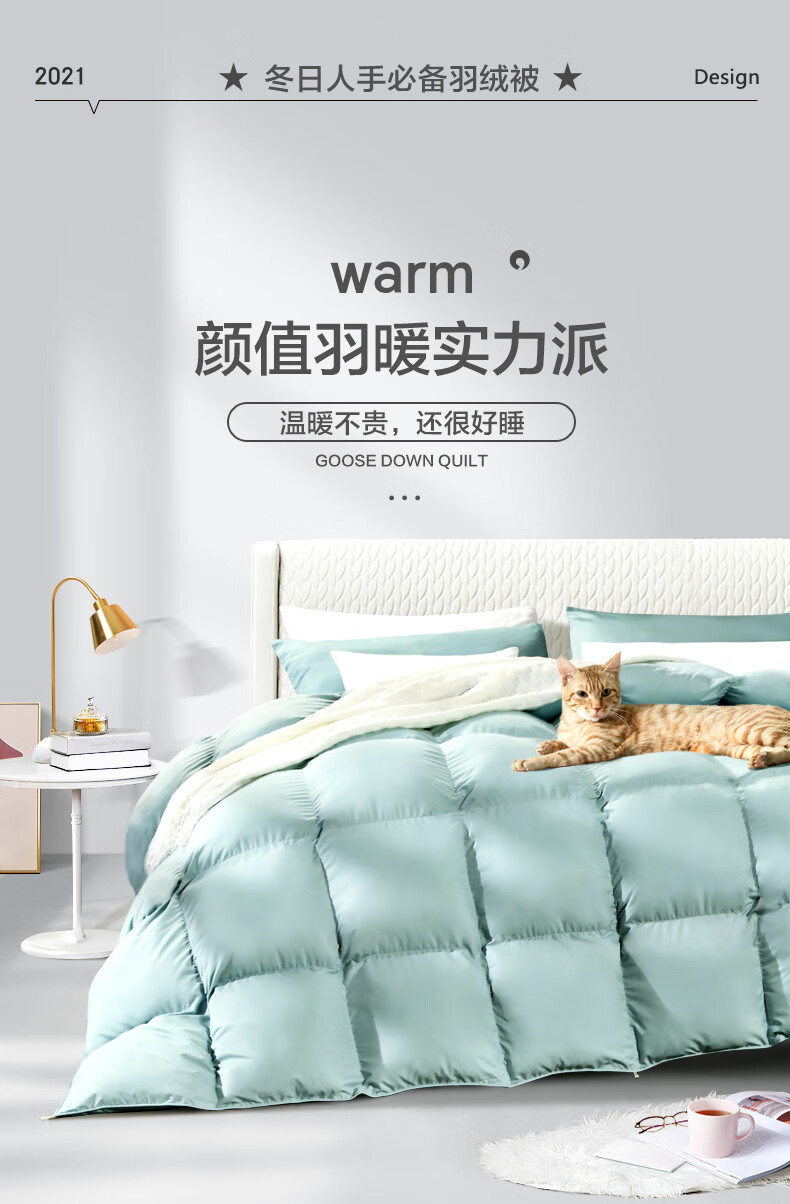 富安娜家纺超柔羽绒被子 白鹅绒被芯冬天厚被褥盖被单双人被【线下同款】1.5米/1.8米床(203*229cm)绿