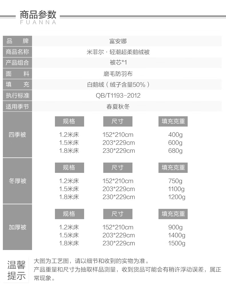 富安娜家纺超柔羽绒被子 白鹅绒...