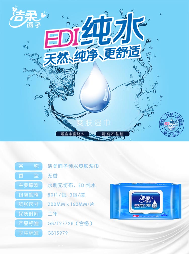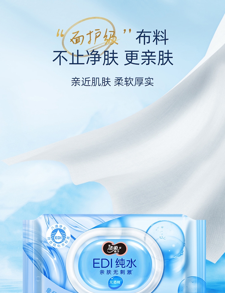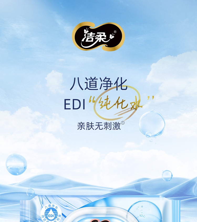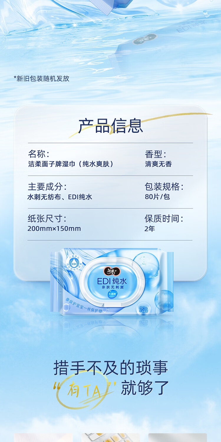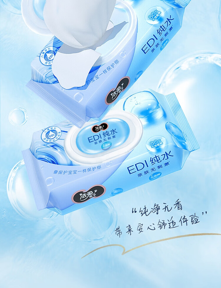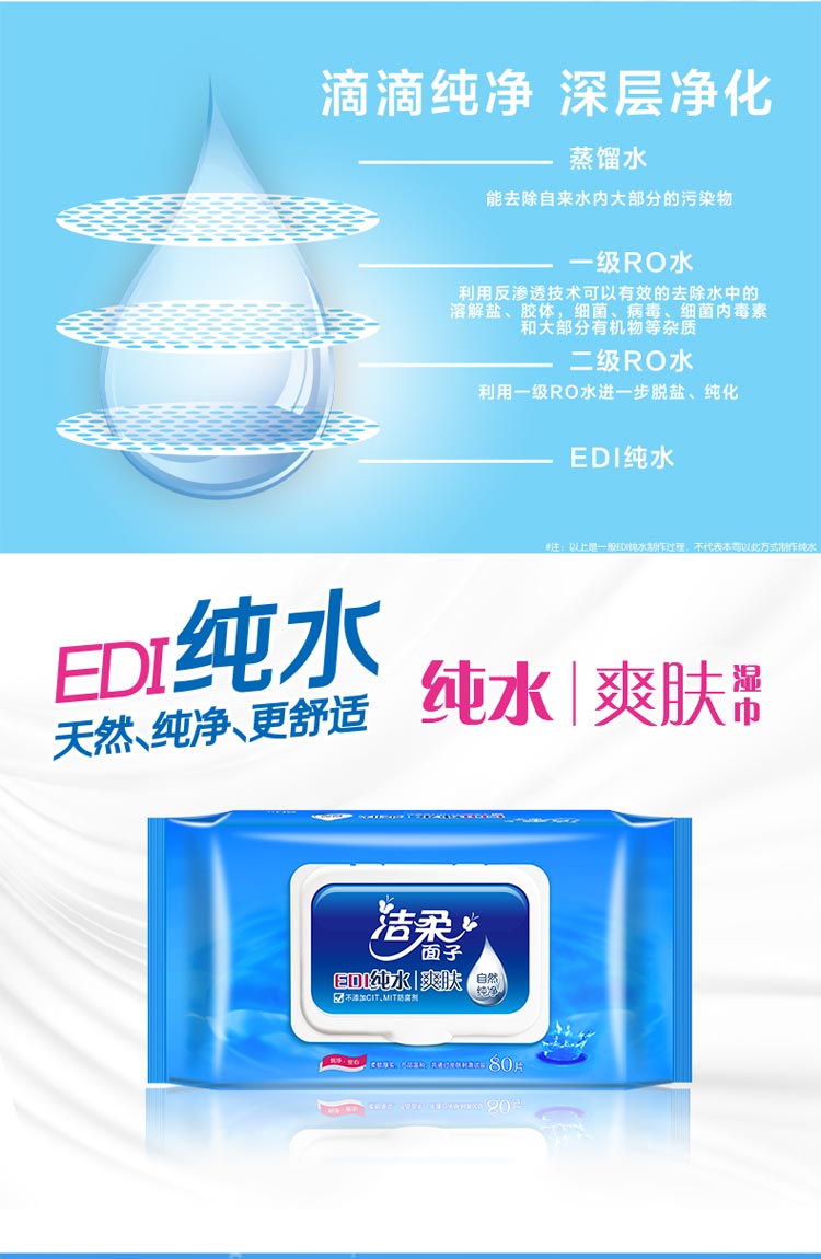洁柔湿巾 EDI纯水湿纸巾80抽*3包 共240片亲肤清爽不粘腻不含酒精*