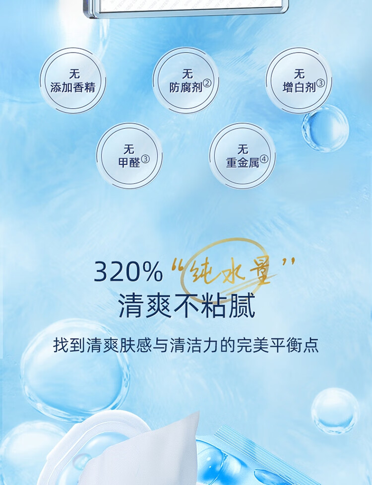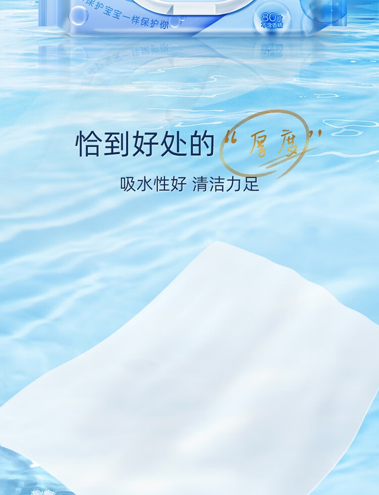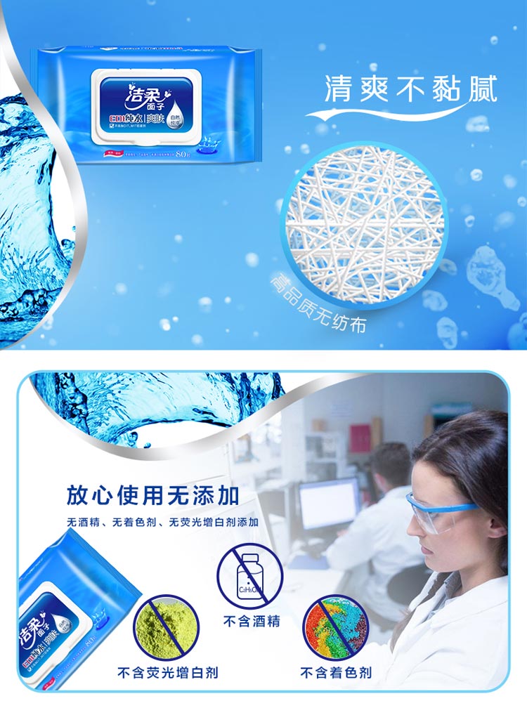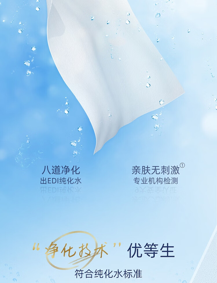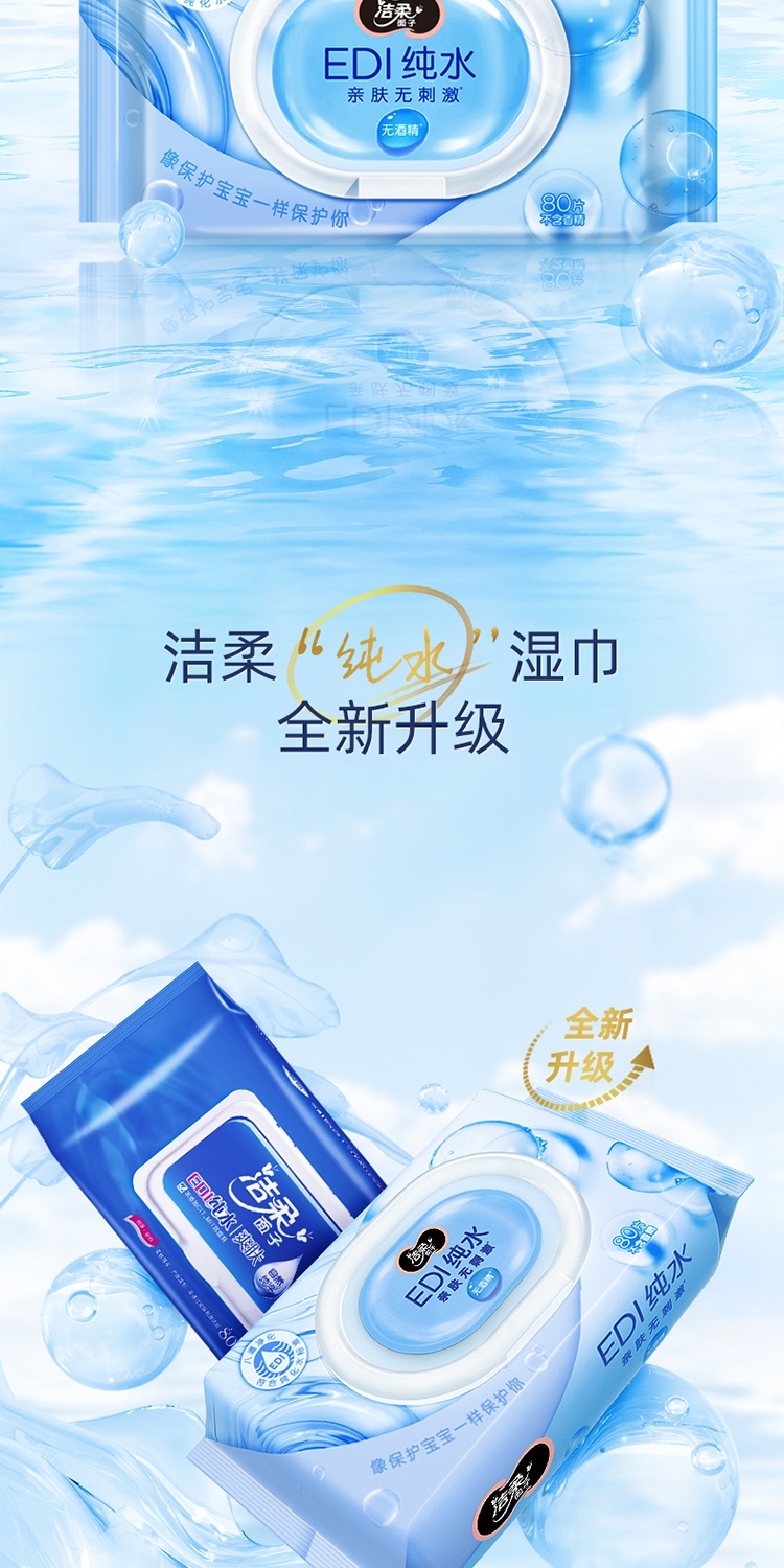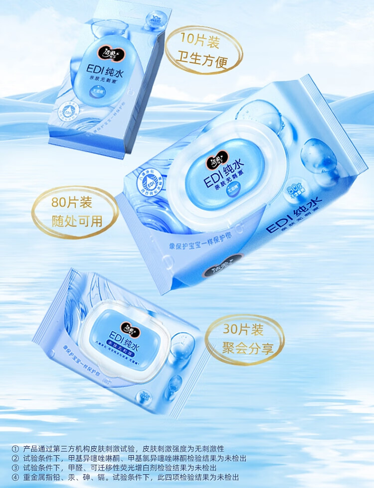 洁柔湿巾 EDI纯水湿纸巾80抽*3包 共240片亲肤清爽不粘腻不含酒精*
