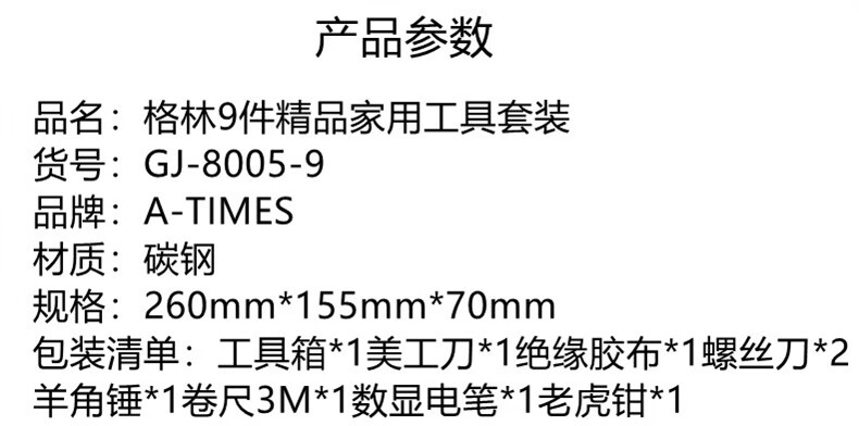 A-TIMES 格林9件精品家用工具套装 GJ-8005-9