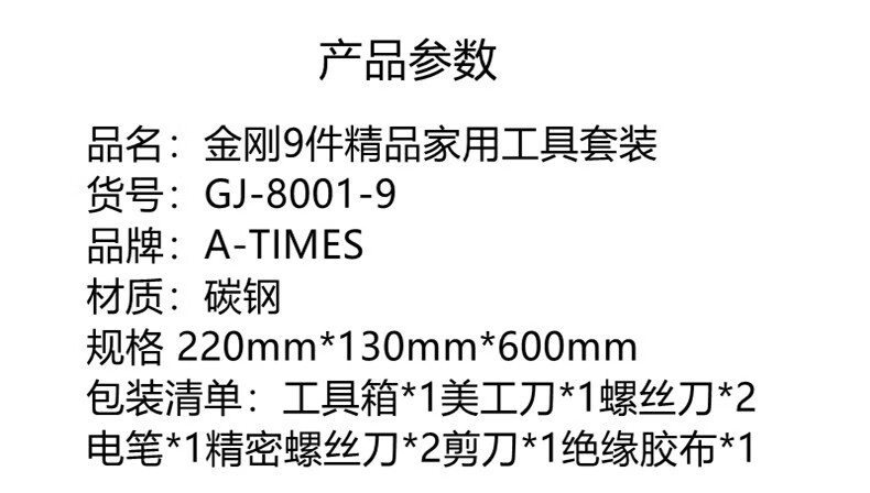 A-TIMES 金刚9件精品家用工具套装 GJ-8001-9