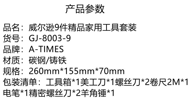 A-TIMES 威尔逊9件精品家用工具套装 GJ-8003-9