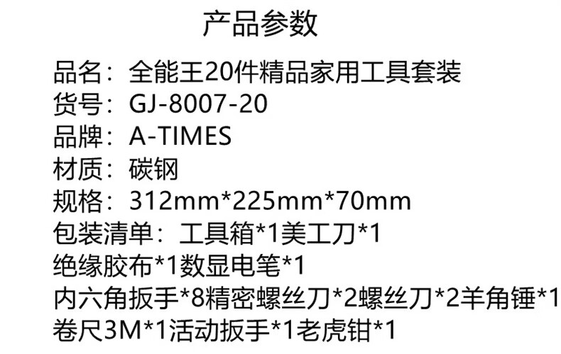 A-TIMES 全能王20件精品家用工具套装 GJ-8007-20