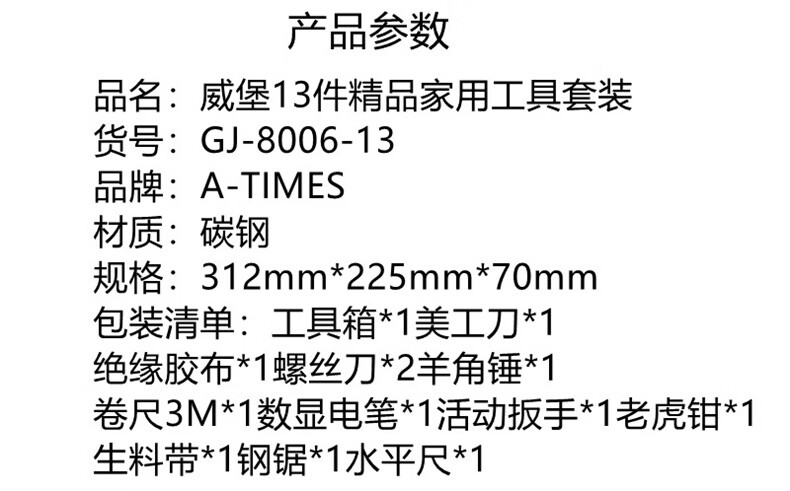 A-TIMES 威堡13件精品家用工具套装 GJ-8006-13