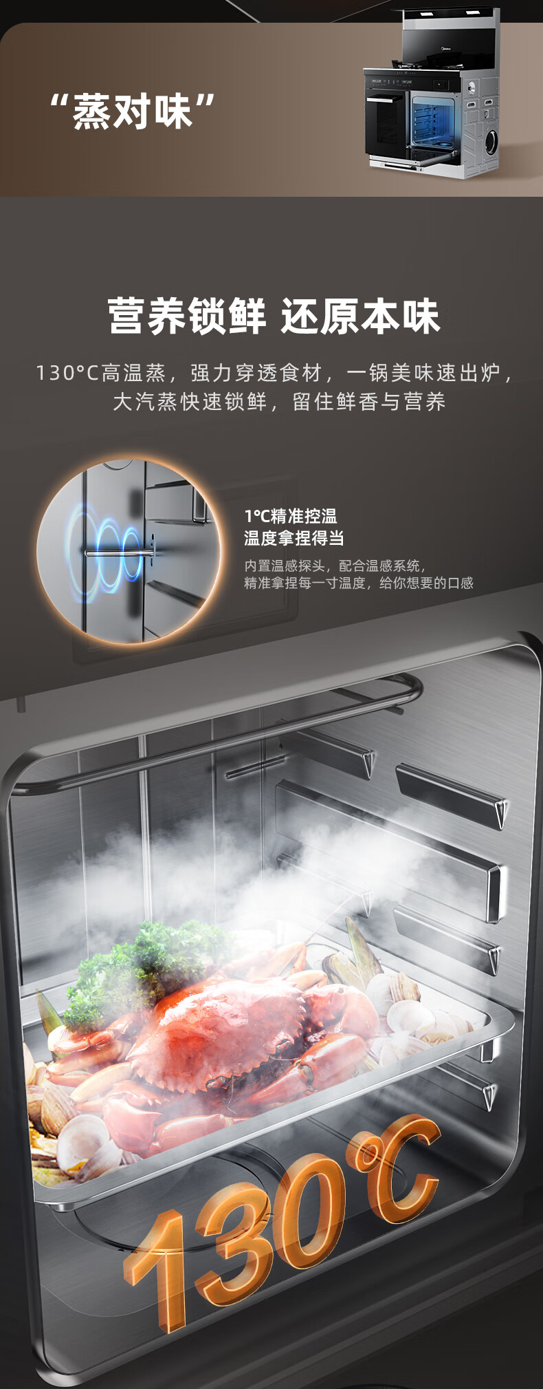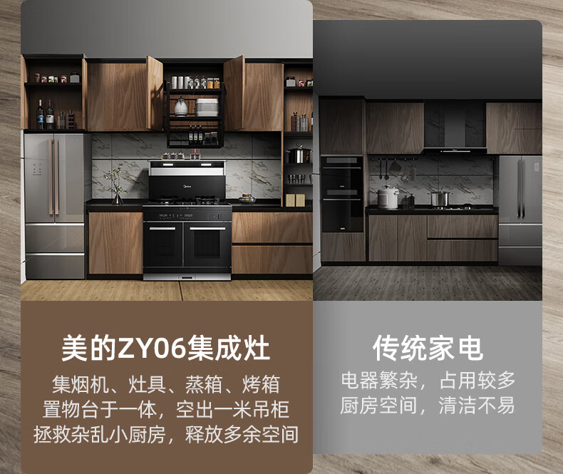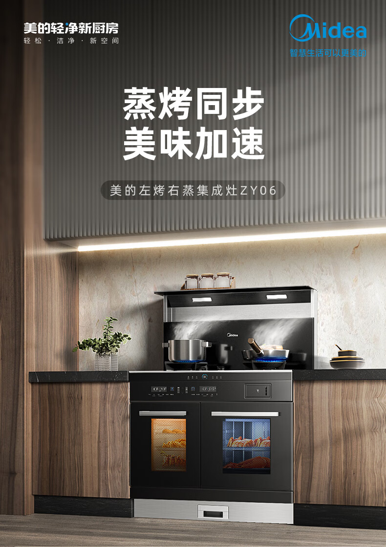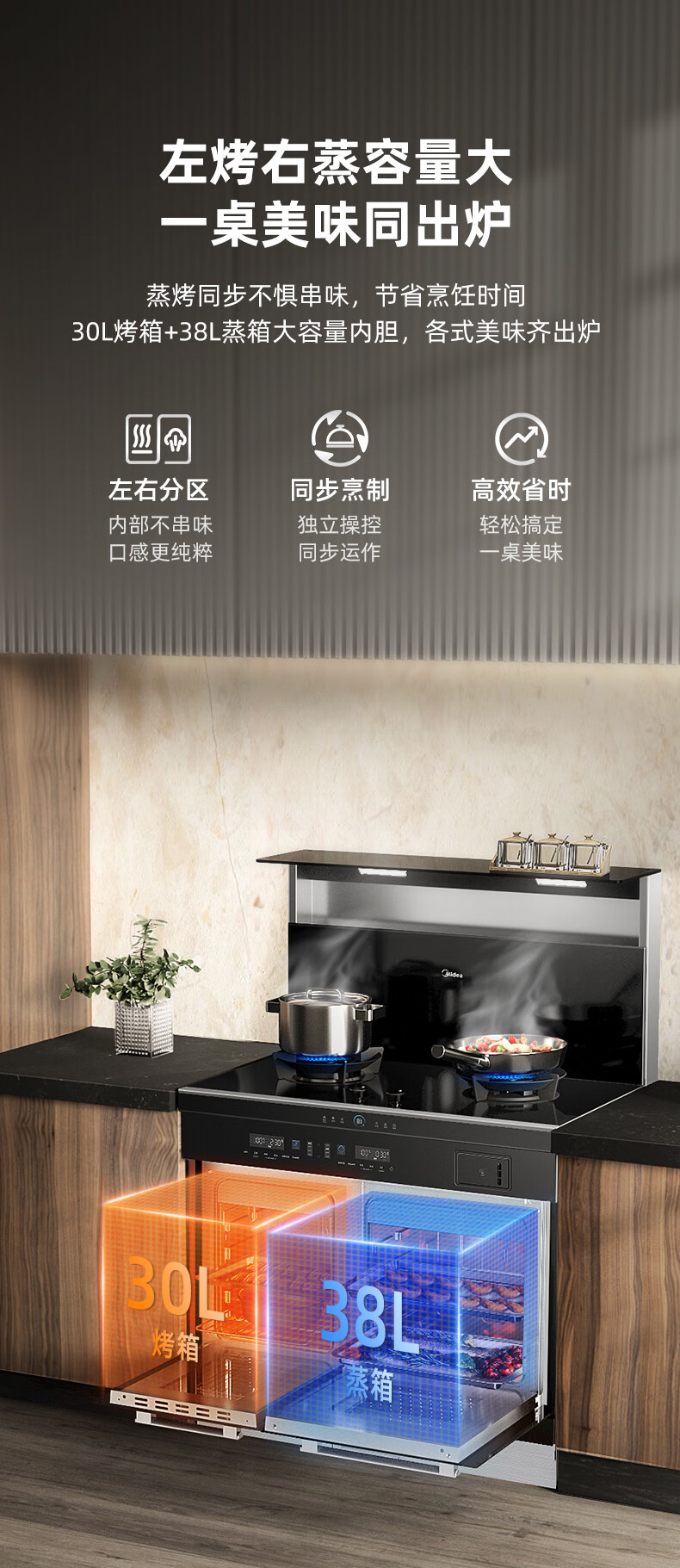 美的(Midea)集成灶 左烤右蒸 蒸烤分体 油烟机燃气灶 抽油烟机套装 大吸力大火力 ZY06 天然气