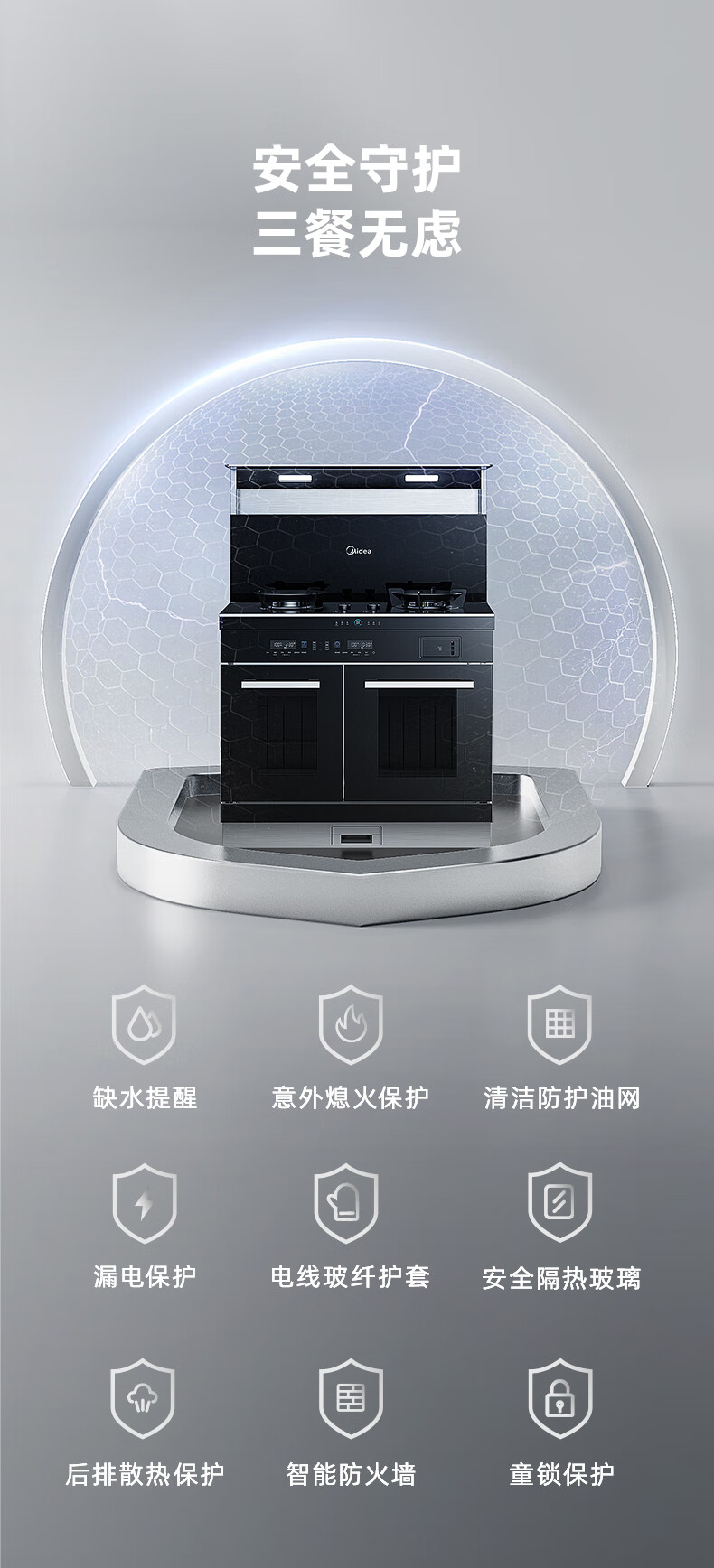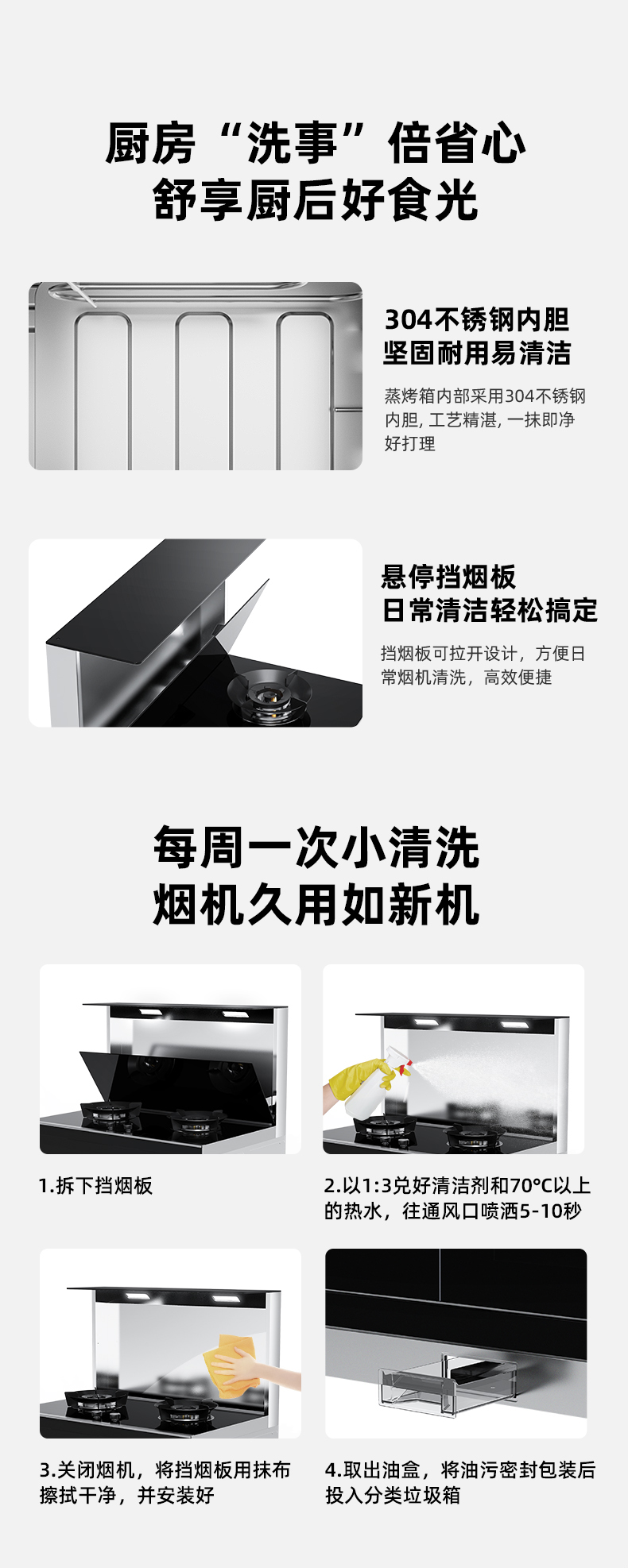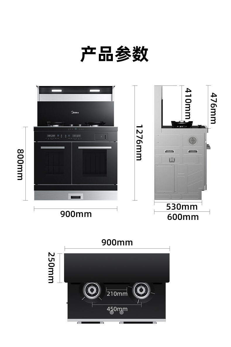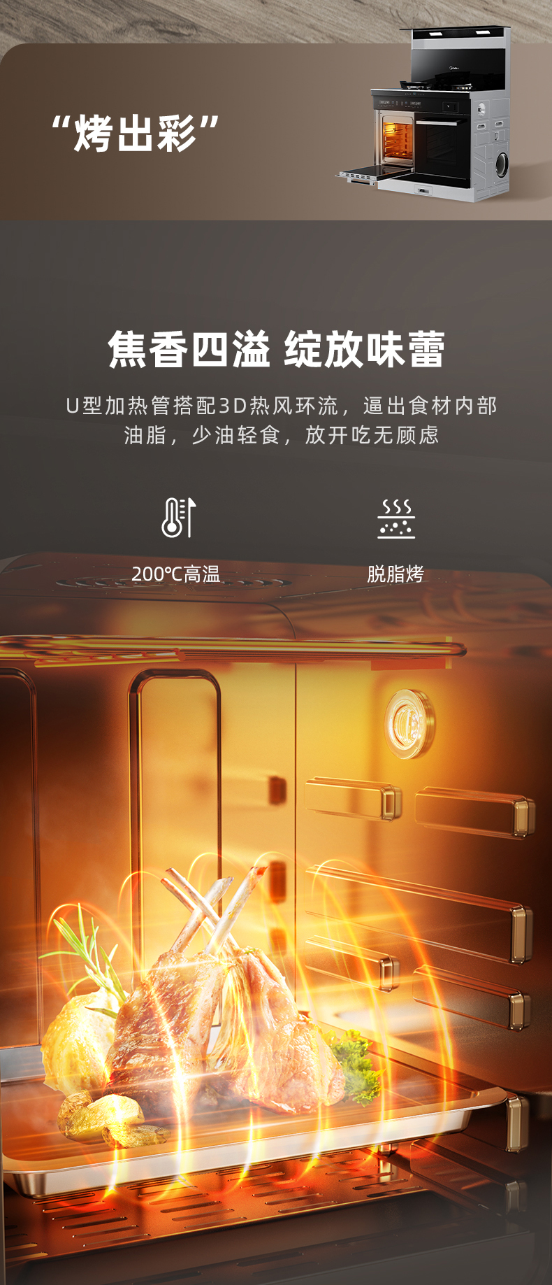 美的(Midea)集成灶 左烤右蒸 蒸烤分体 油烟机燃气灶 抽油烟机套装 大吸力大火力 ZY06 天然气