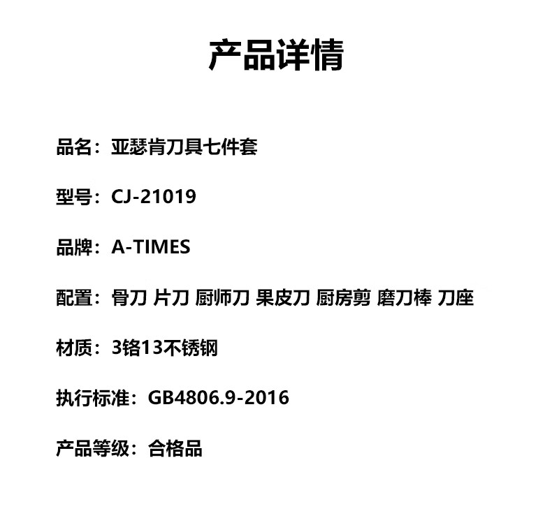 A-TIMES 亚瑟肯刀具七件套 CJ-21019