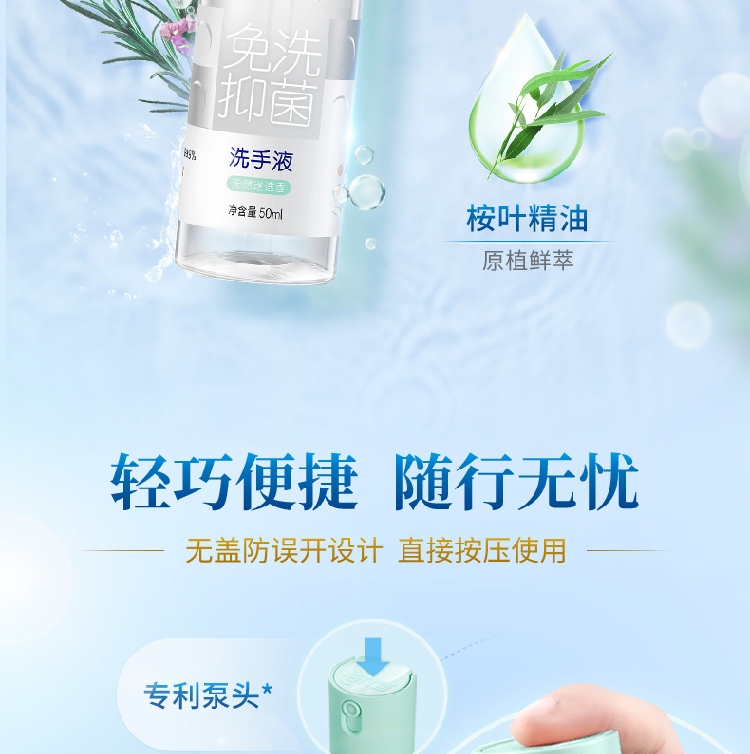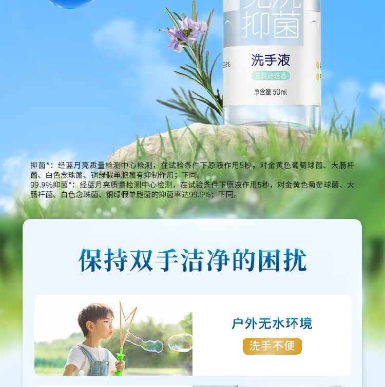 蓝月亮免洗抑菌洗手液50ml 天然迷迭香 有效抑菌99.9%