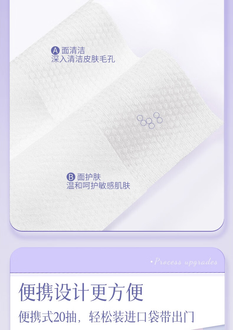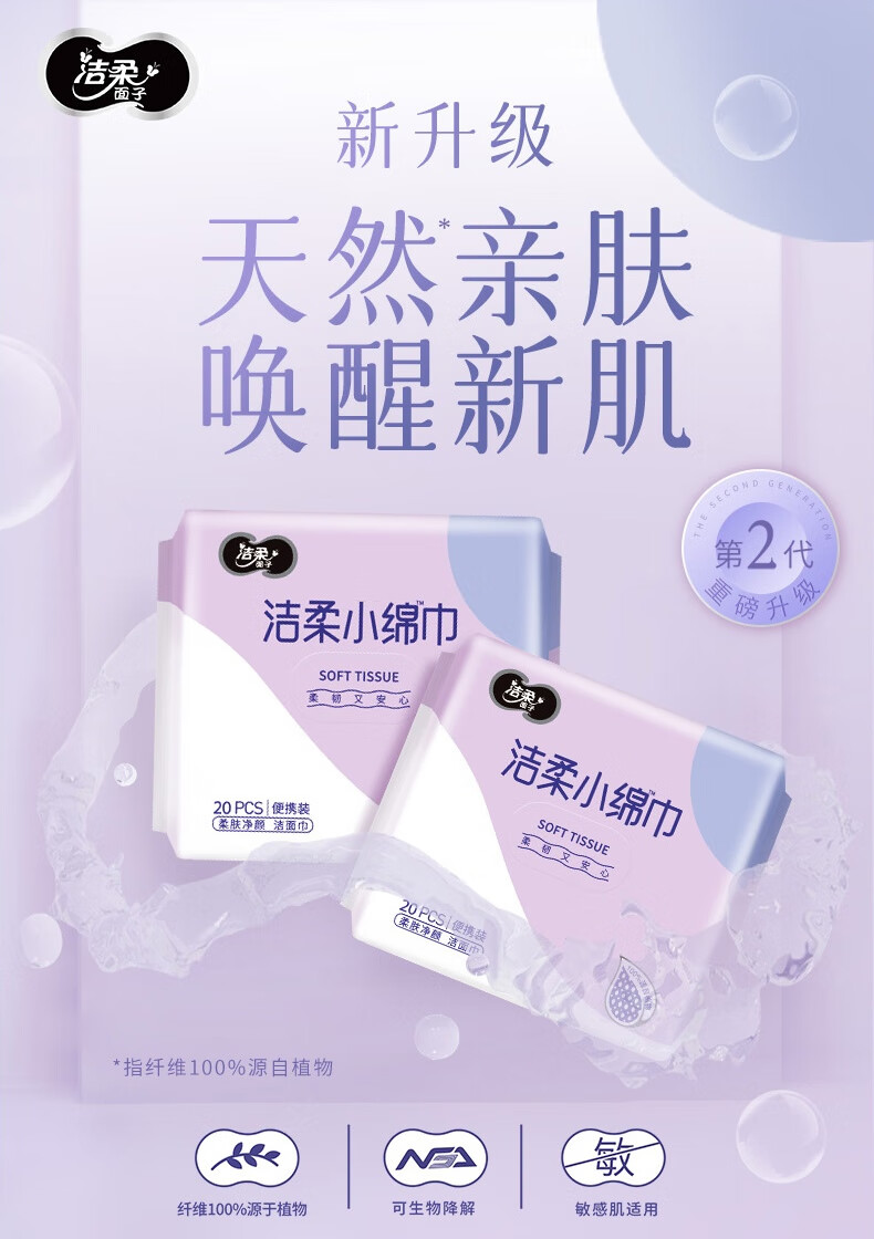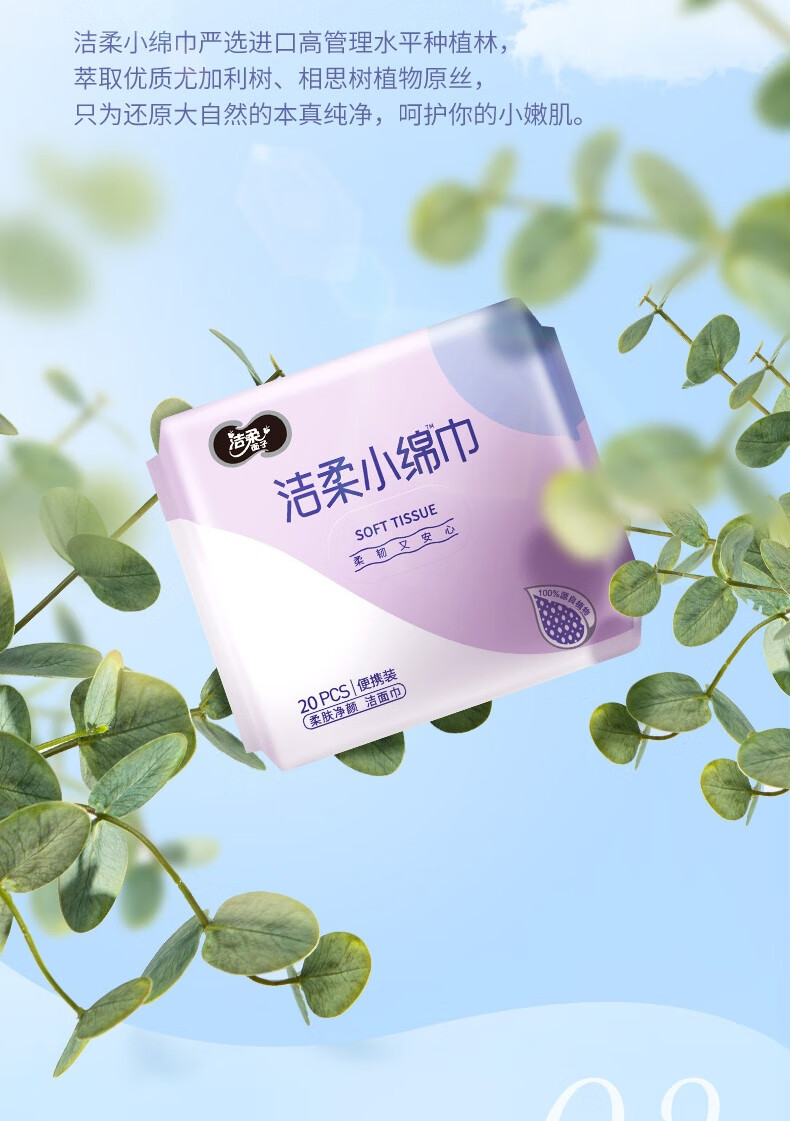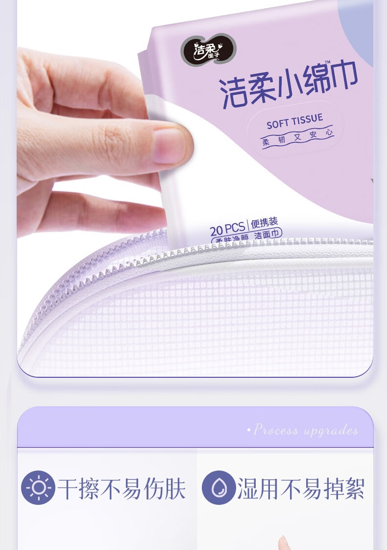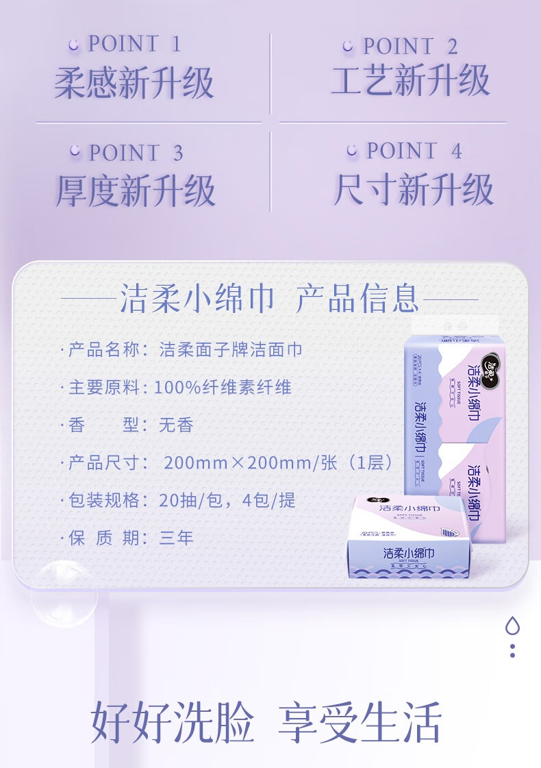 洁柔洁面巾 大规格20抽*4包 便捷装洁面巾 干湿两用 棉柔手感