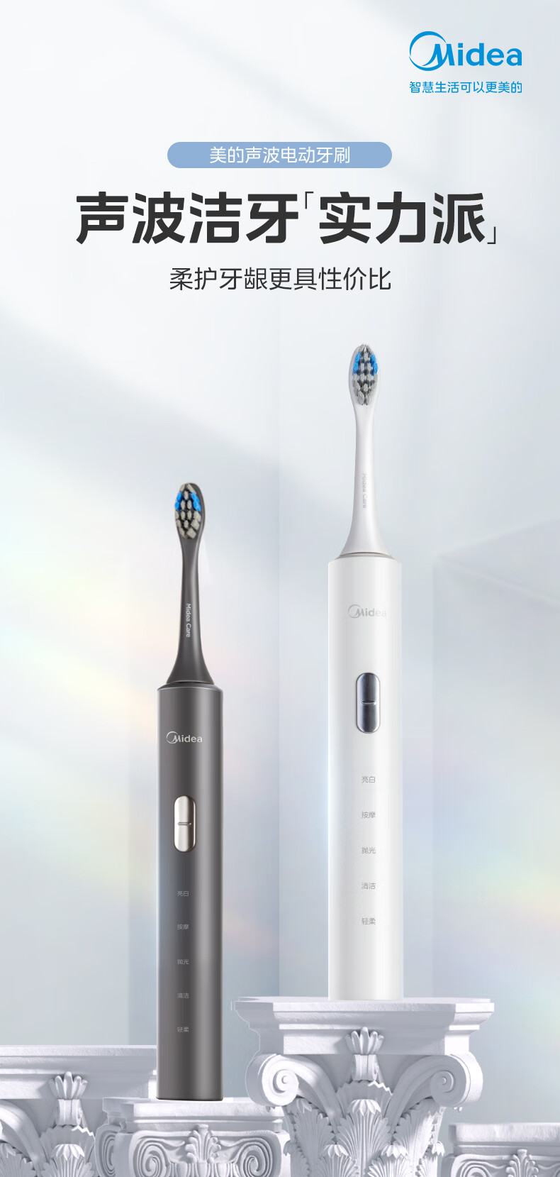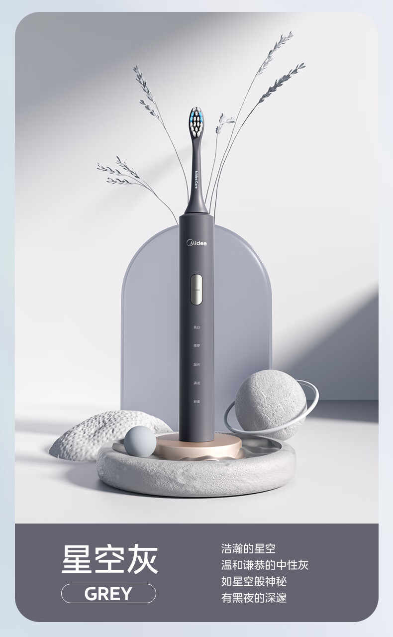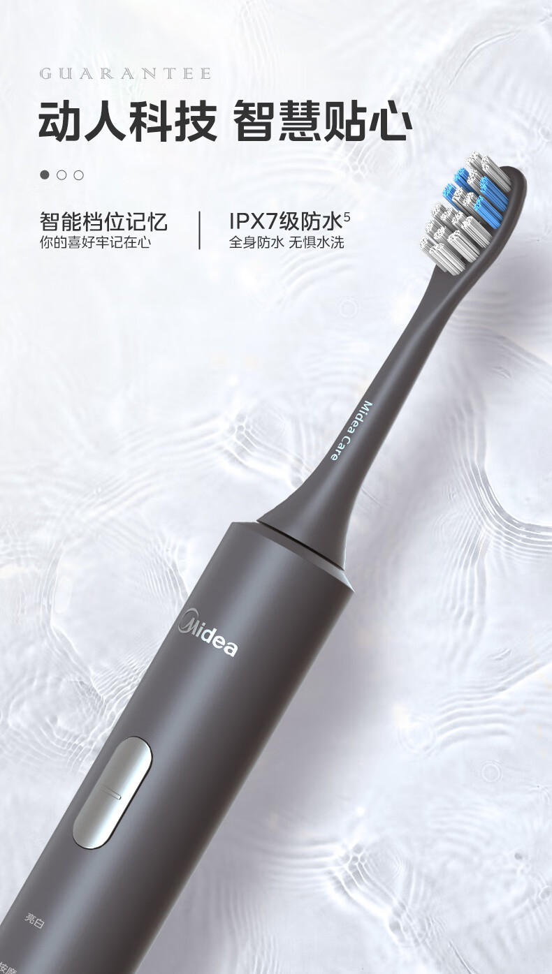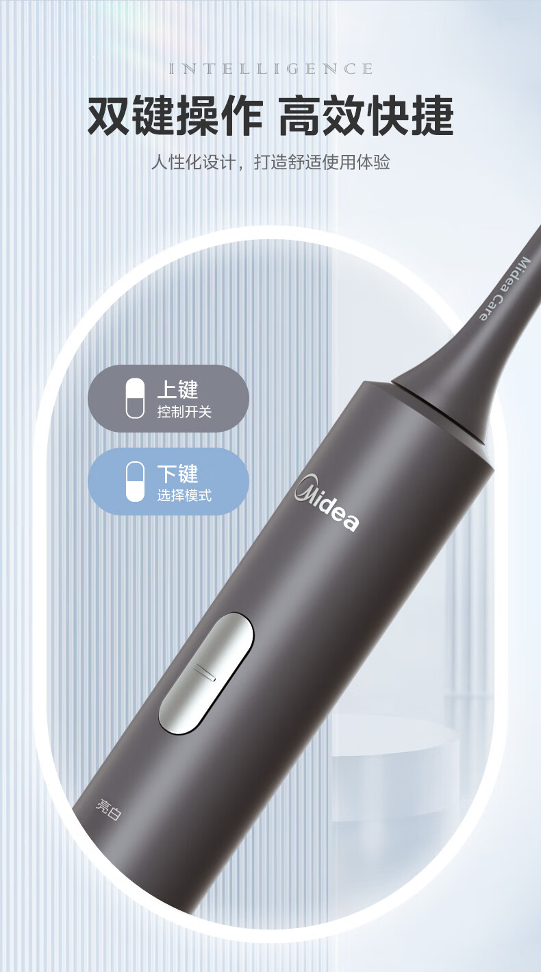 美的(Midea)电动牙刷成人/学生 声波震动 300天长续航 智能换区 软毛刷头*2 七夕情人节礼物 情侣款 小米白