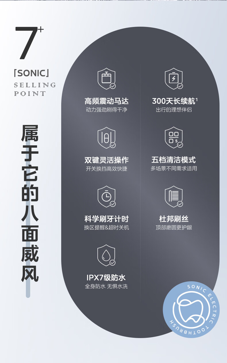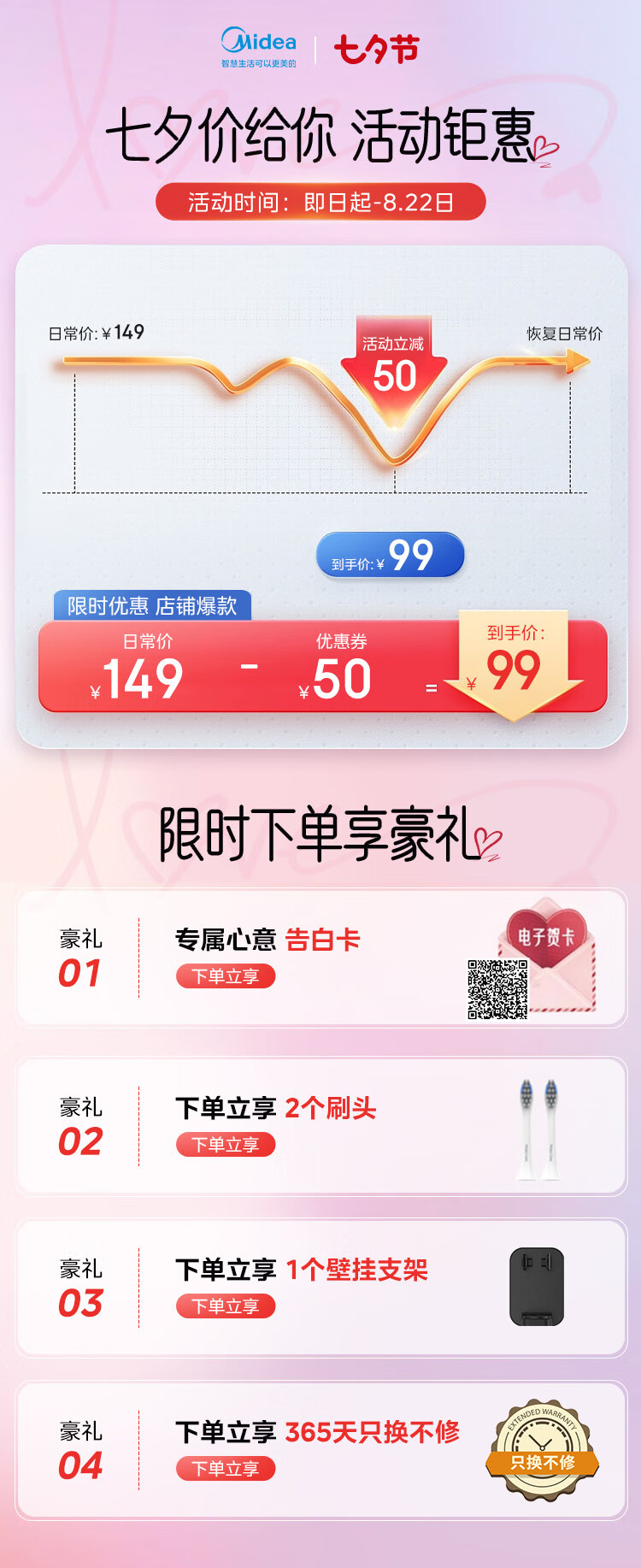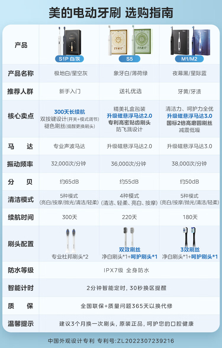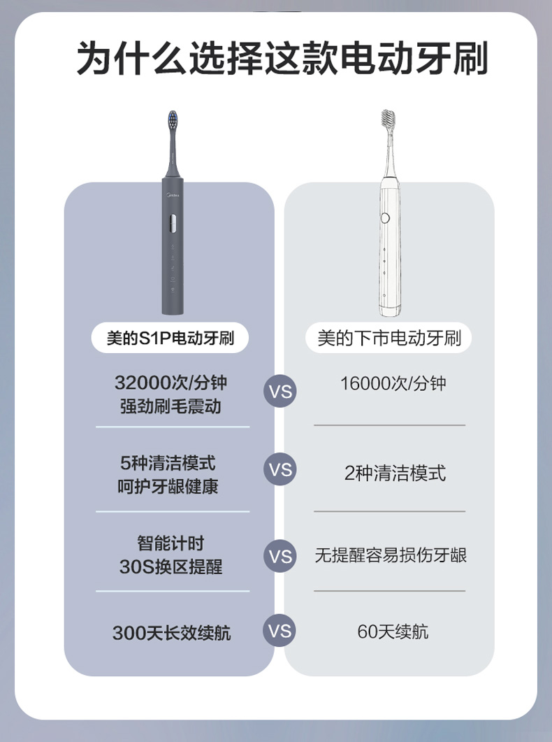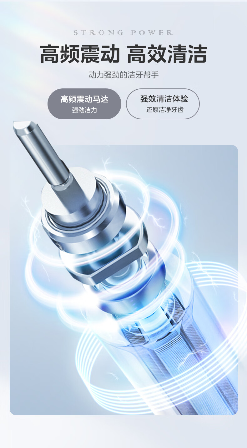 美的(Midea)电动牙刷成人/学生 声波震动 300天长续航 智能换区 软毛刷头*2 七夕情人节礼物 情侣款 小米白