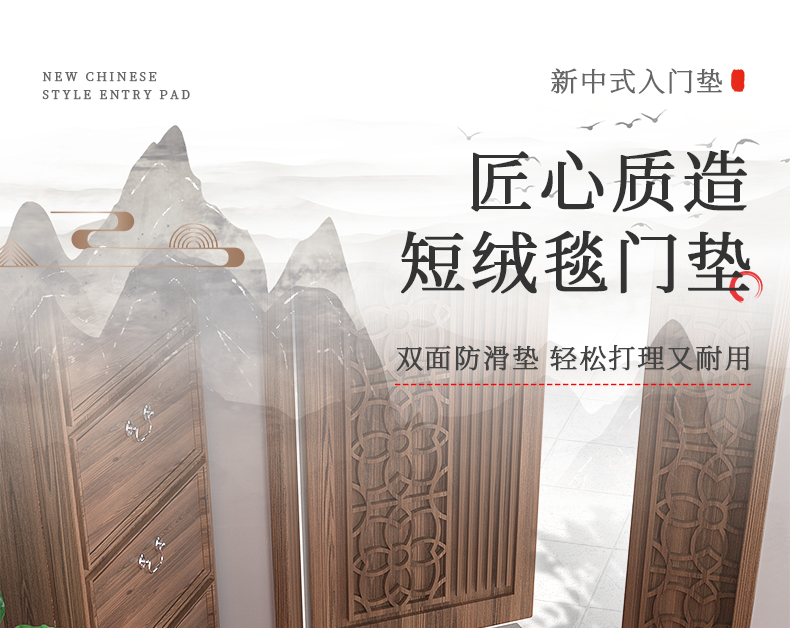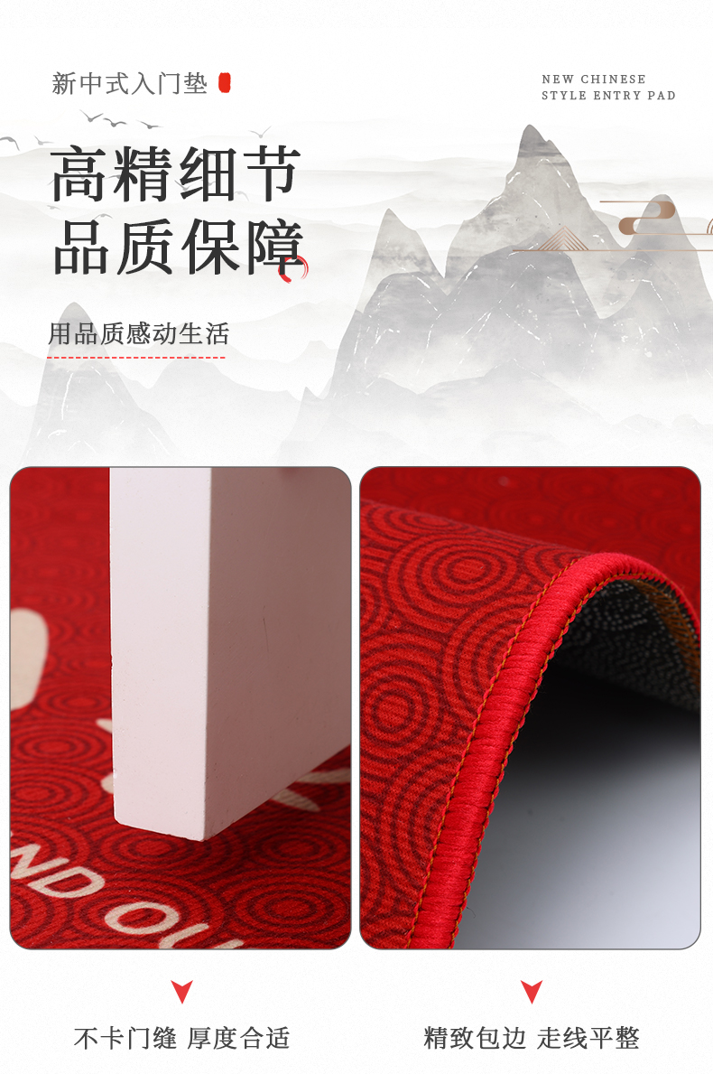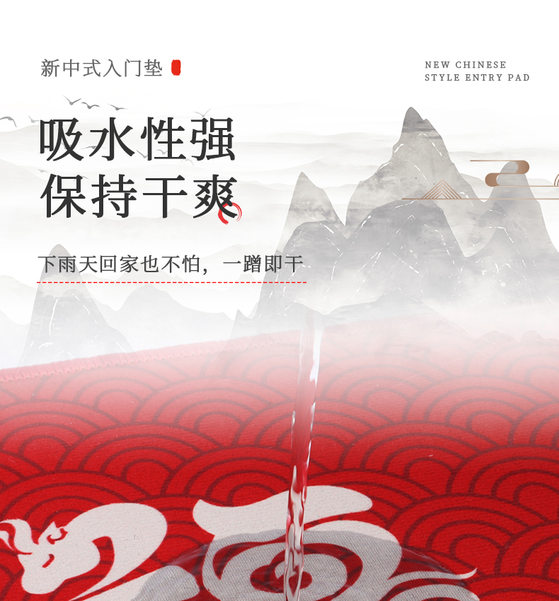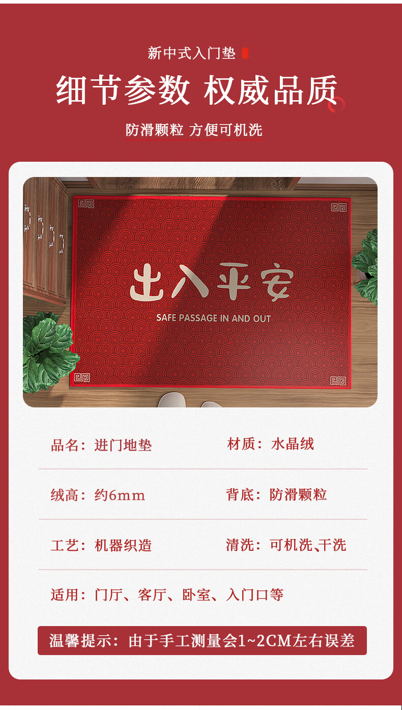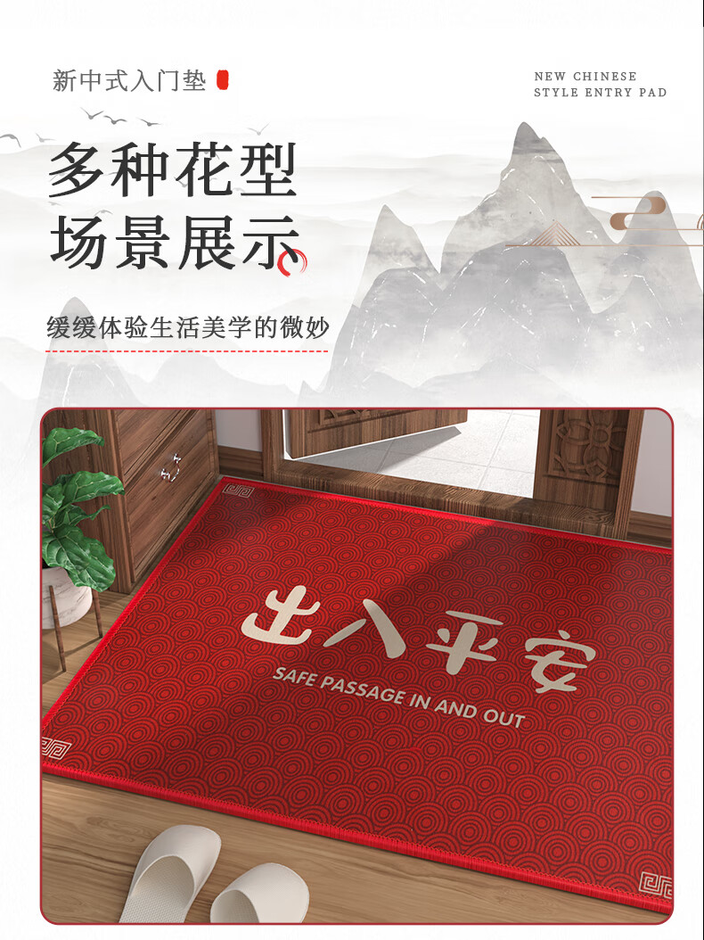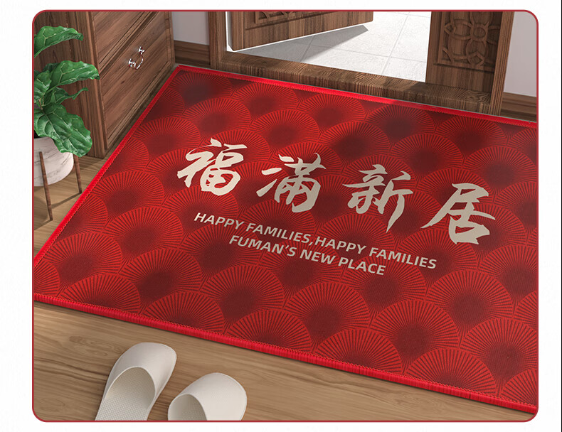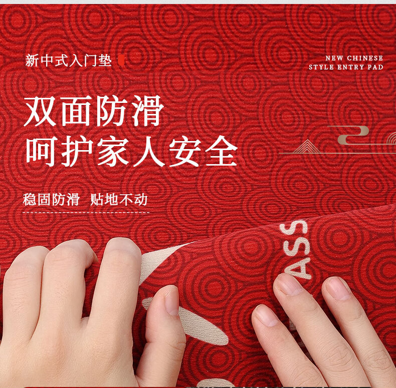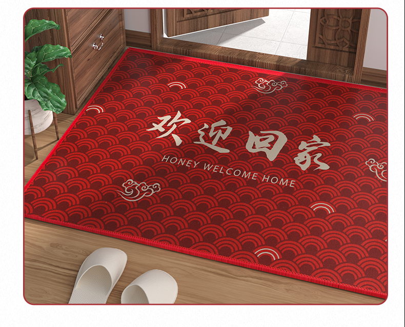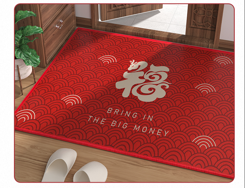 洁丽雅(Grace)入户门地垫家用防滑兔年红色喜庆玄关脚踏垫免洗 平安喜乐40*60cm