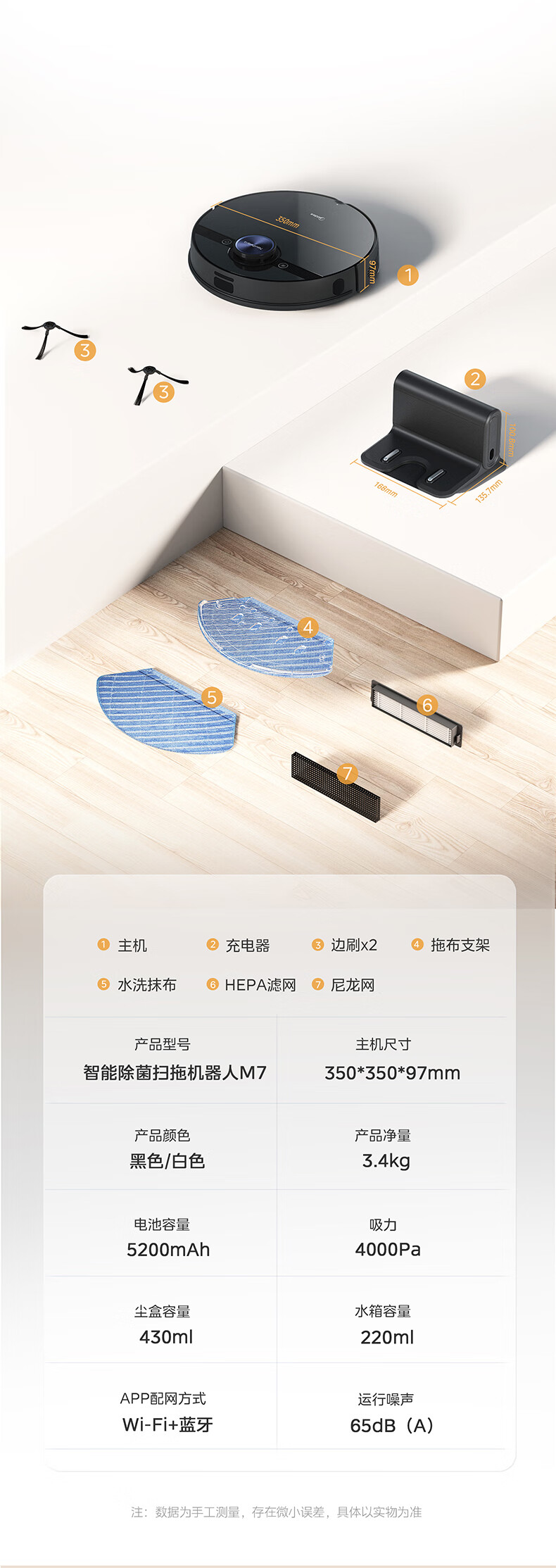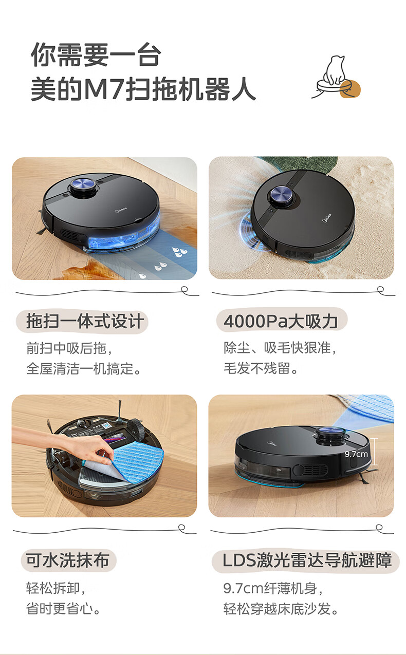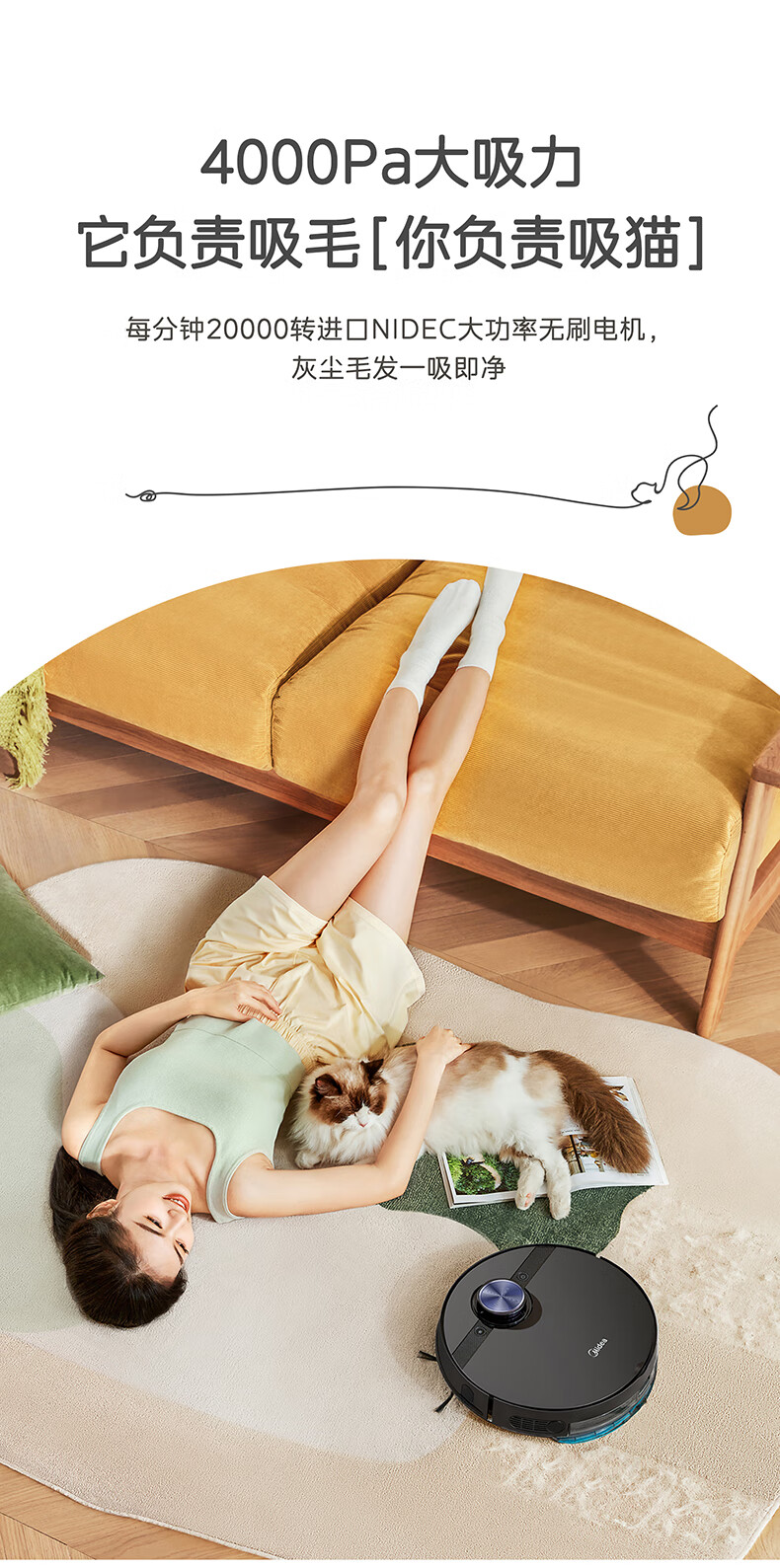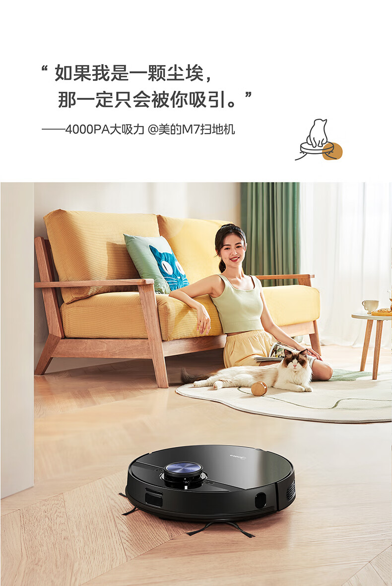 美的(Midea)M7极地白智能扫地机器人激光导航扫拖一体4000Pa大吸力APP控制智能规划