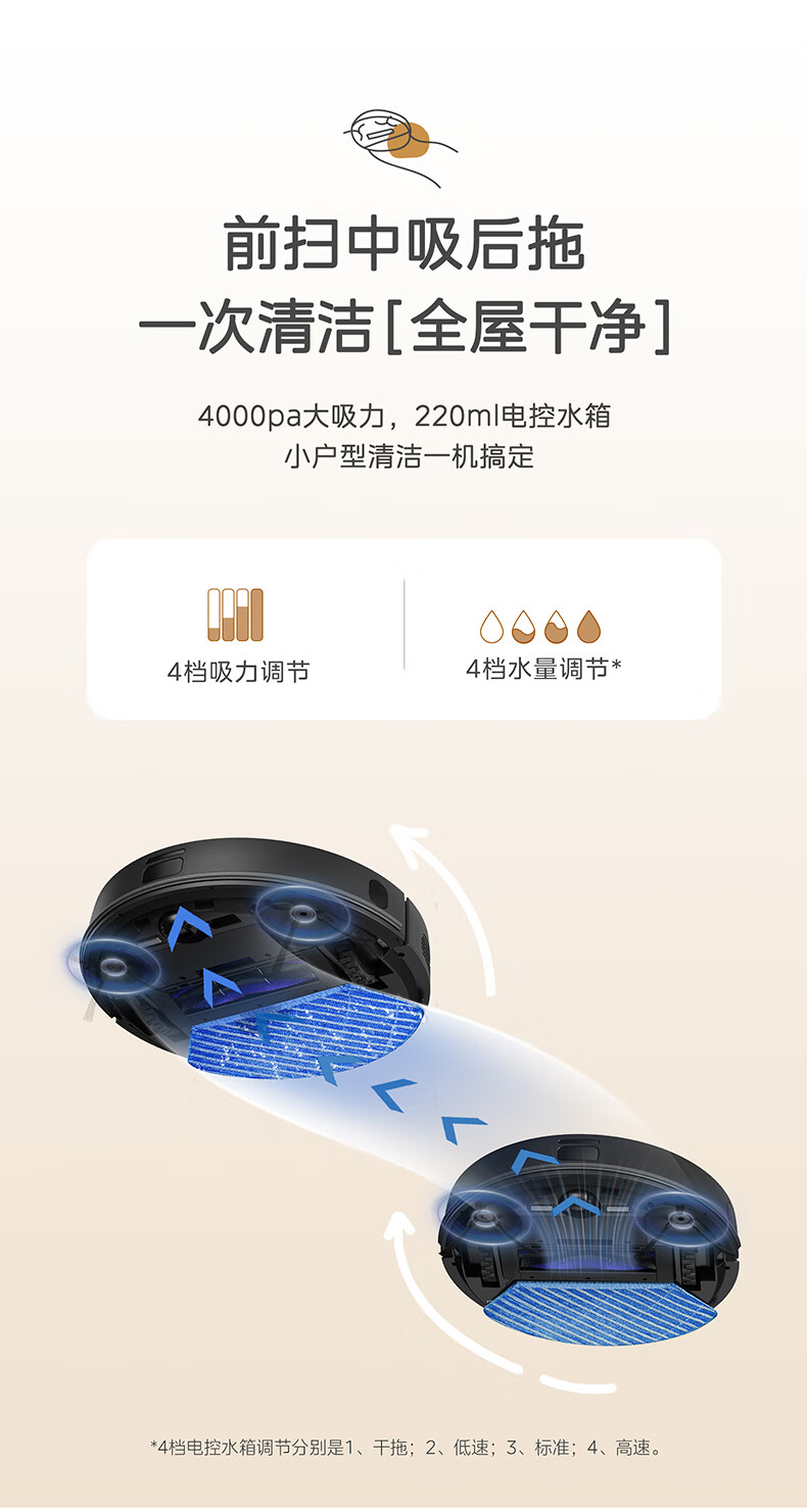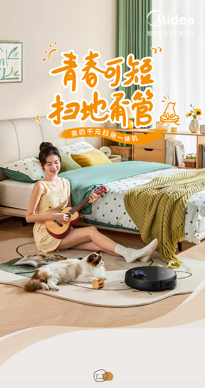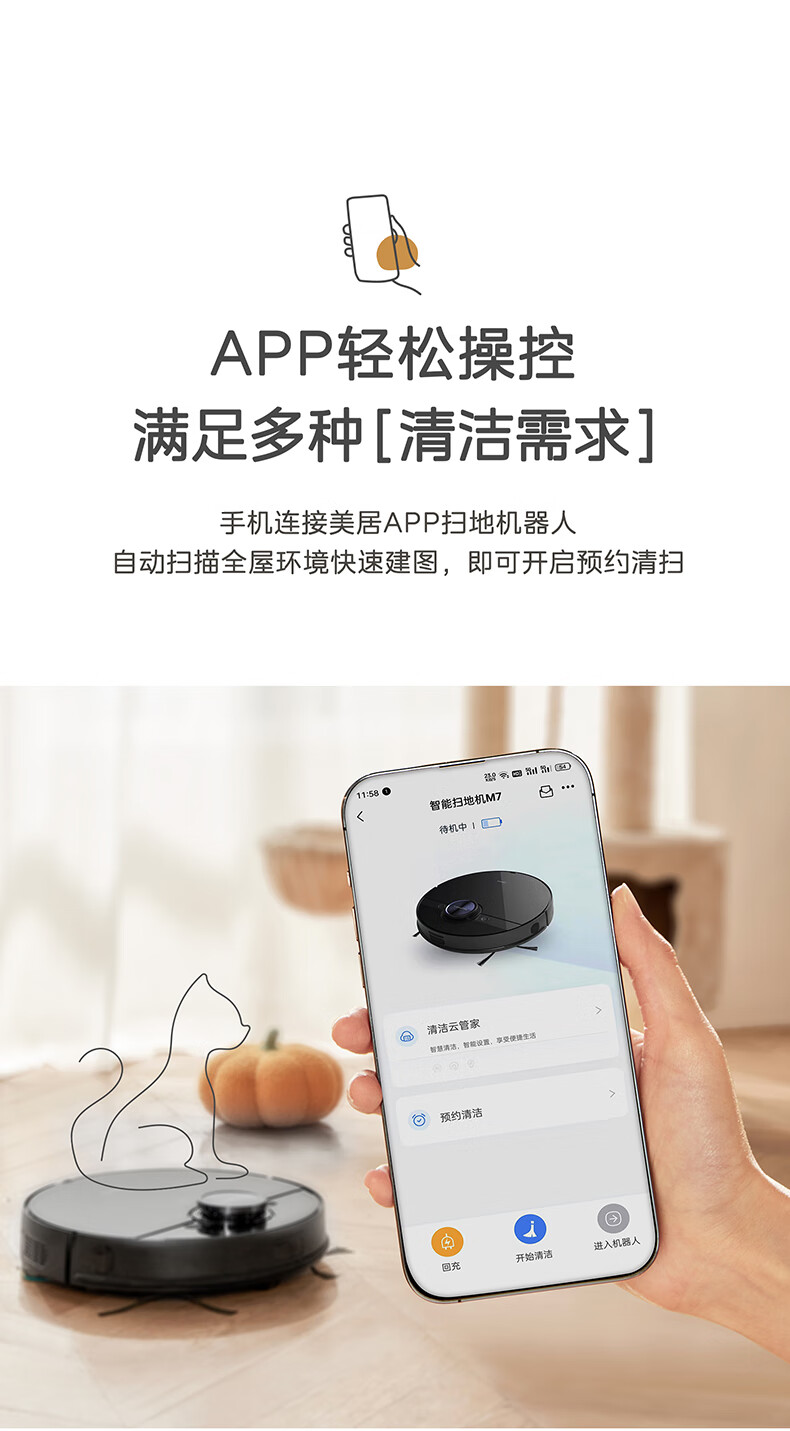 美的(Midea)M7极地白智能扫地机器人激光导航扫拖一体4000Pa大吸力APP控制智能规划