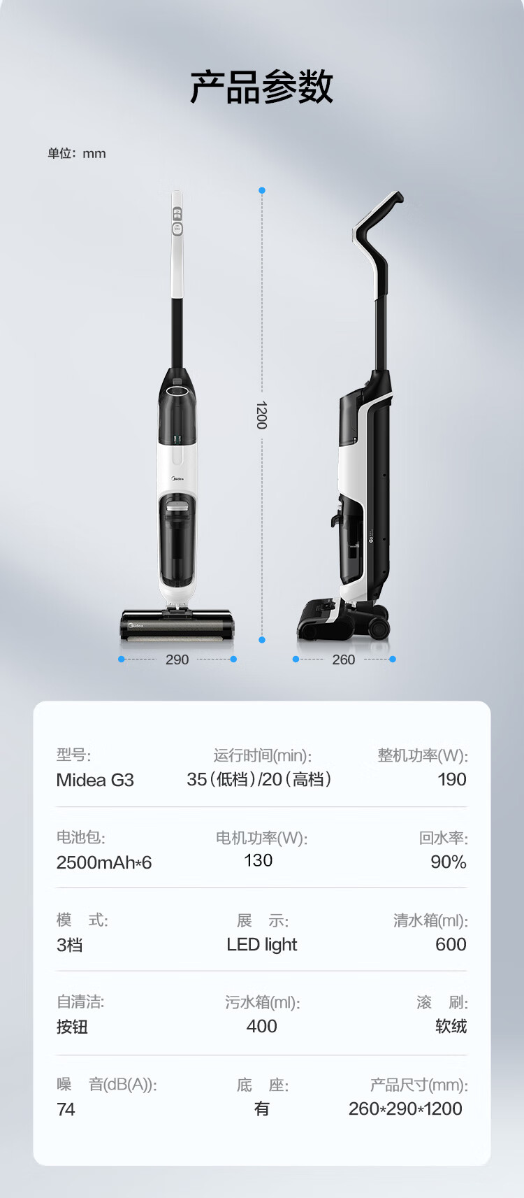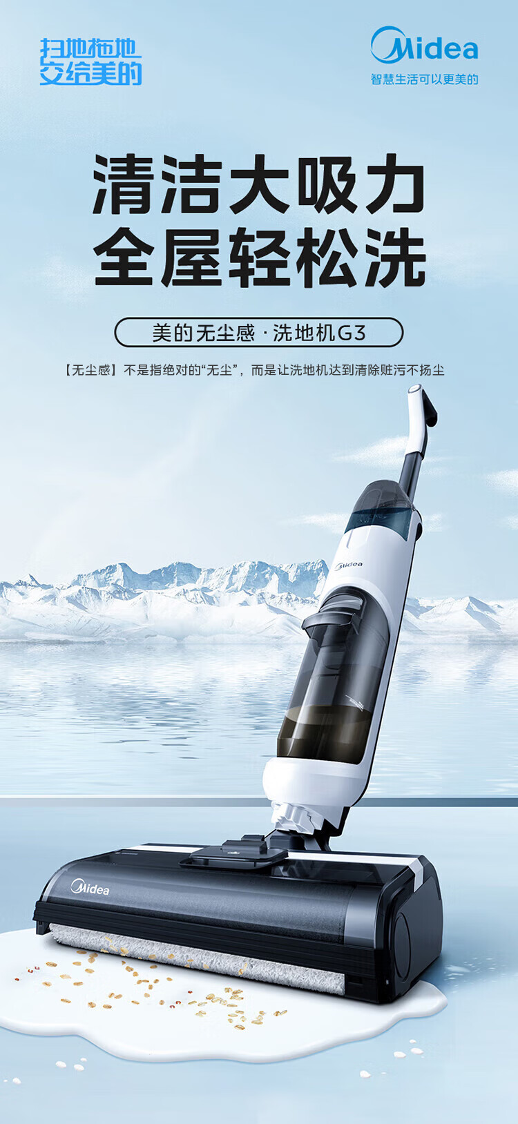 美的(Midea)洗地机G3 吸拖一体 无尘感拖地 吸尘扫地 家用