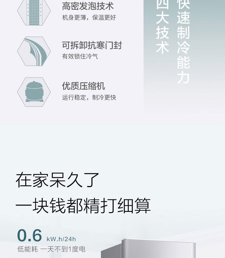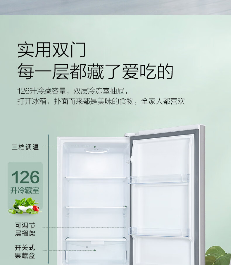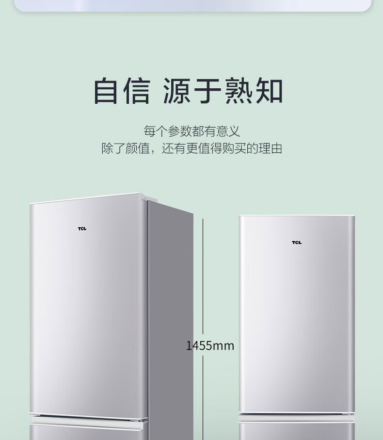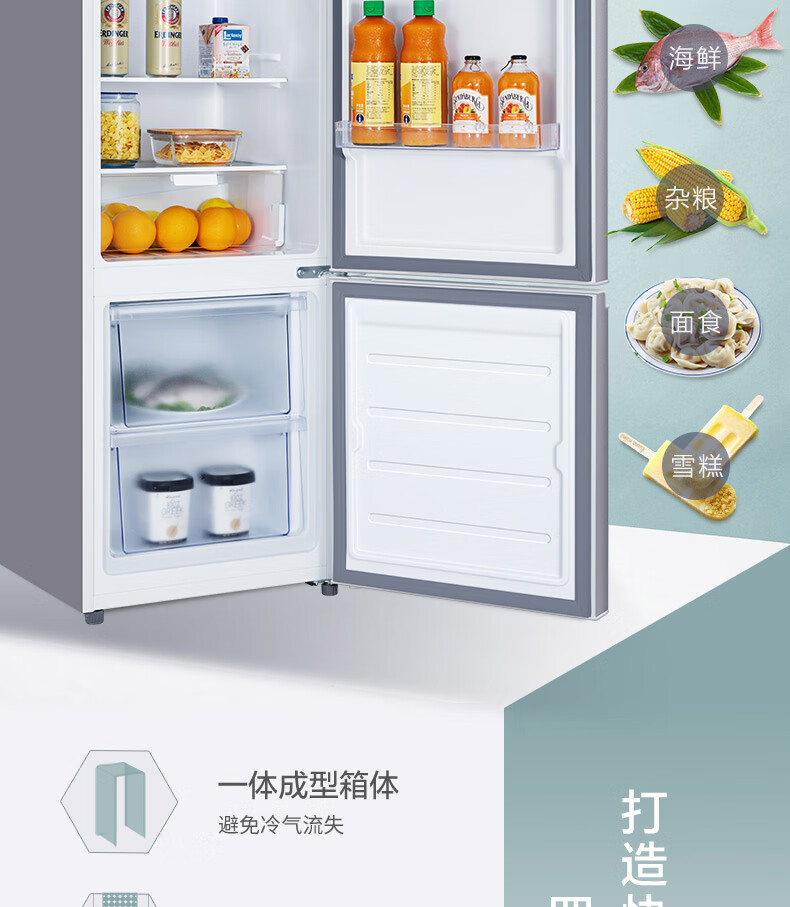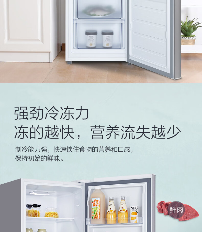 TCL冰箱186升大冷藏室 快速制冷环保材质小冰箱 强劲冷冻 BCD-186C闪白银