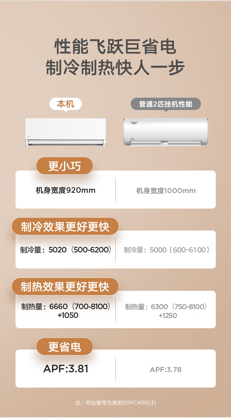 美的(Midea)新能效 旋耀 2匹智能家电变频冷暖壁挂式 三级能效 KFR-50GW/N8MXA3 一价无忧(包5米铜管)