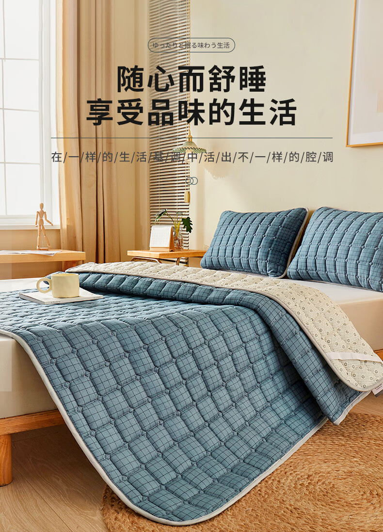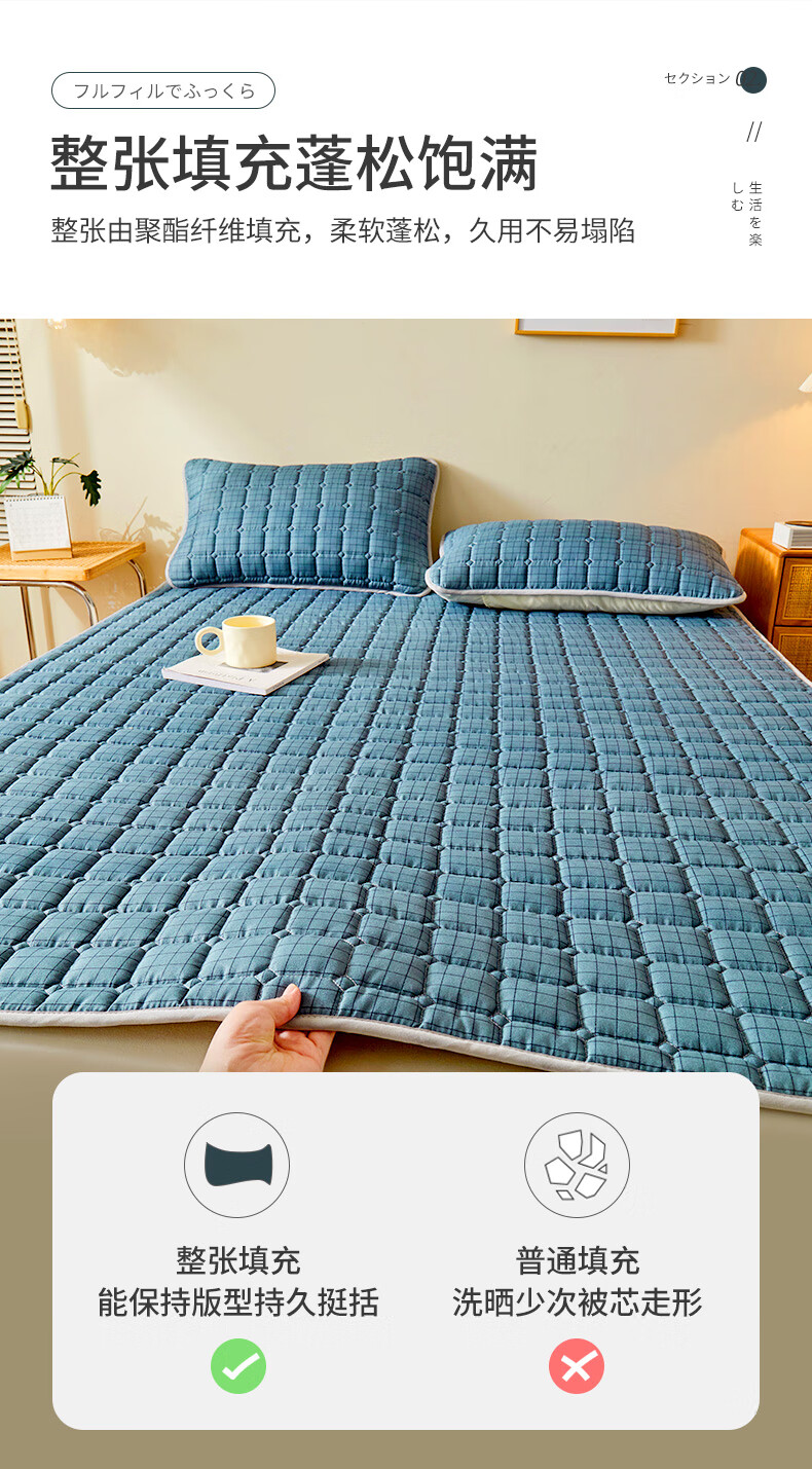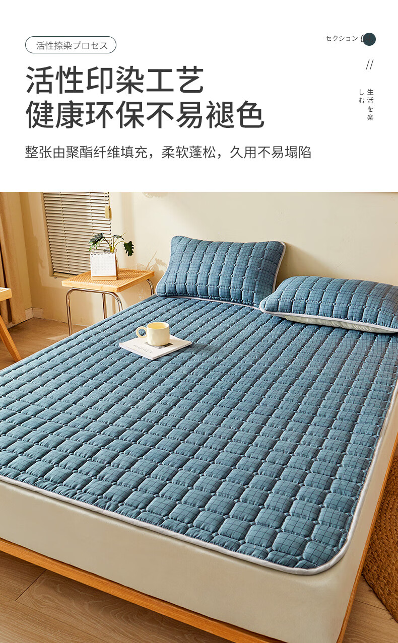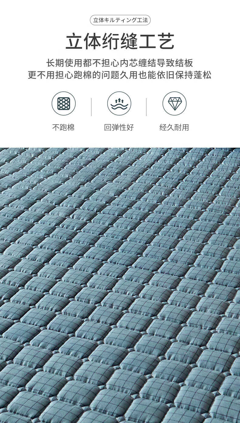 洁丽雅(Grace) 褥子四季床褥软垫床垫防滑可折叠学生床双人床褥垫1.5米床灰蓝