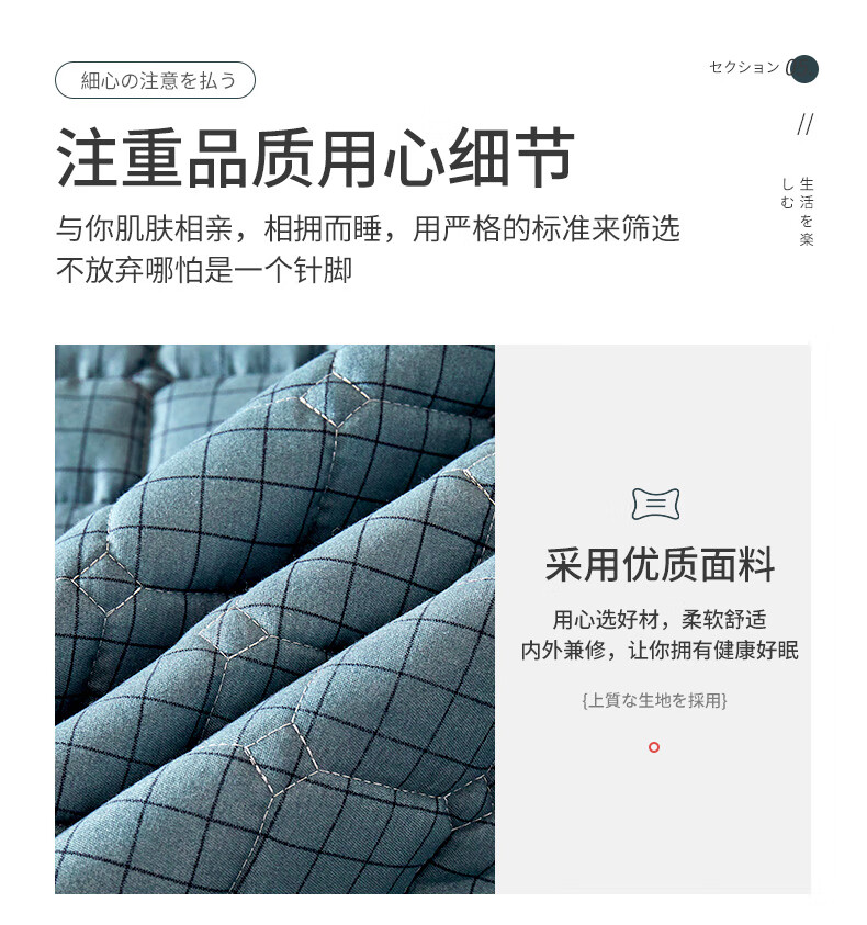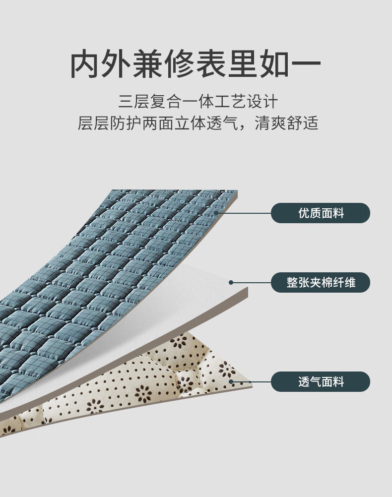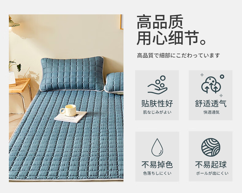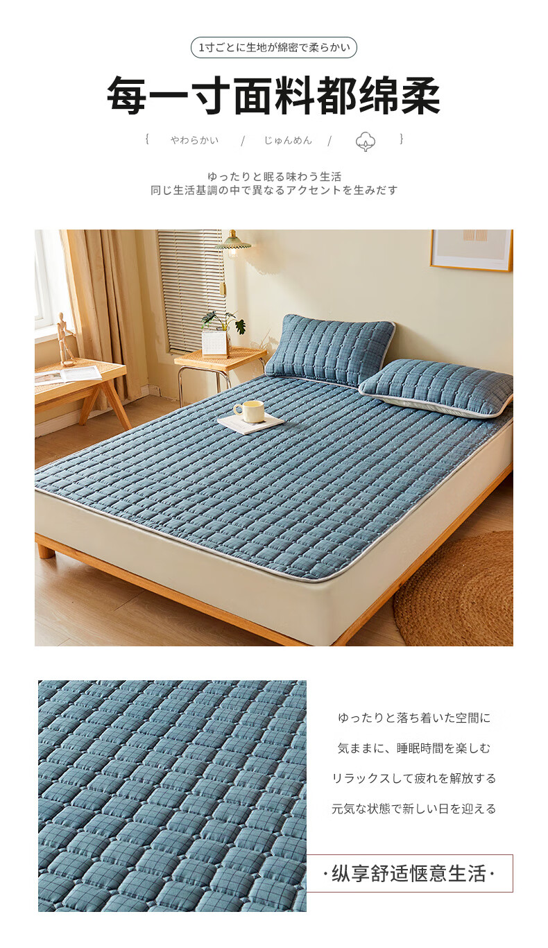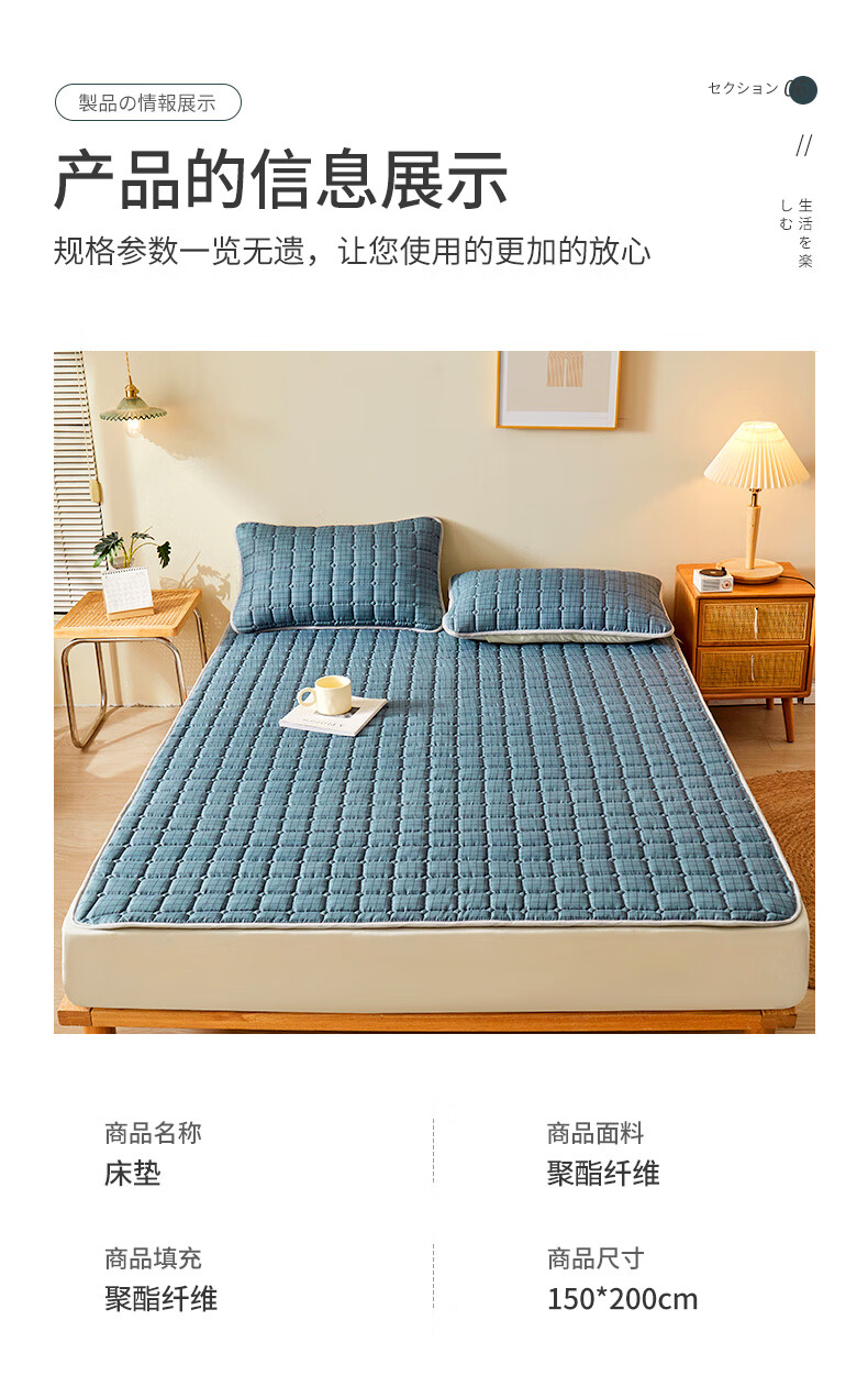 洁丽雅(Grace) 褥子四季床褥软垫床垫防滑可折叠学生床双人床褥垫1.5米床灰蓝