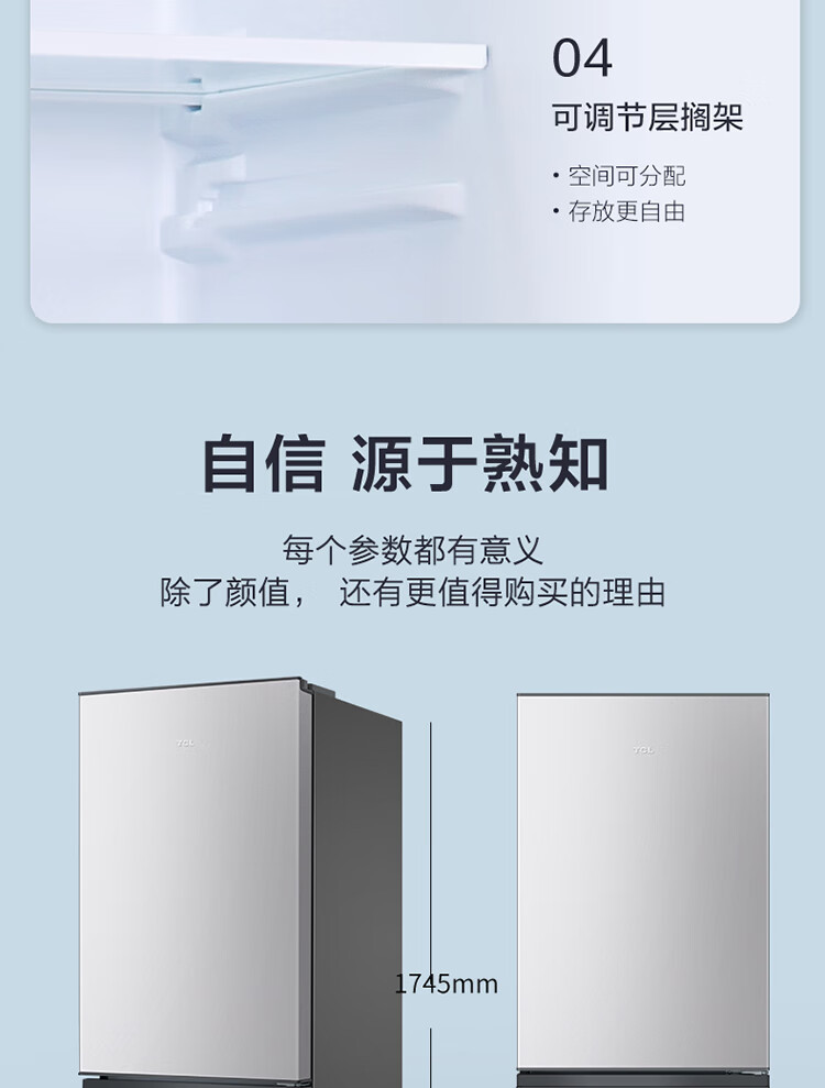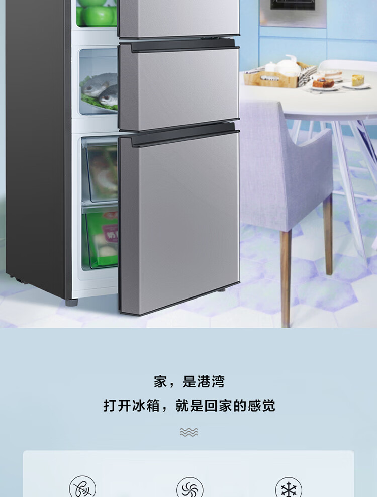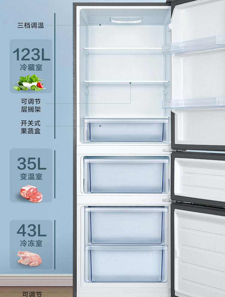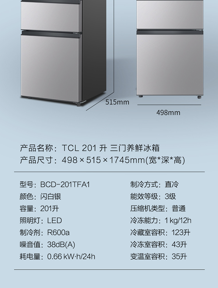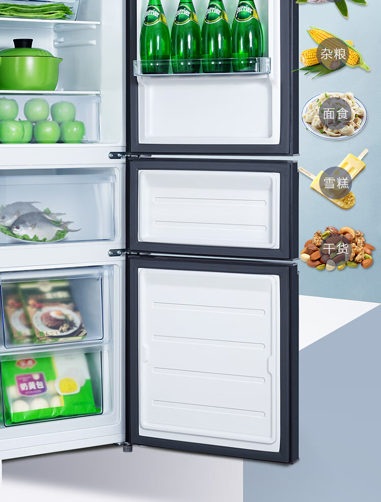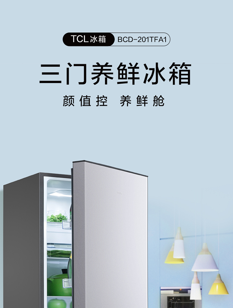 TCL 201升 三门三温 时尚百搭 节能养鲜 抗指纹耐腐蚀家用电冰箱BCD-201TFA1 企业采购
