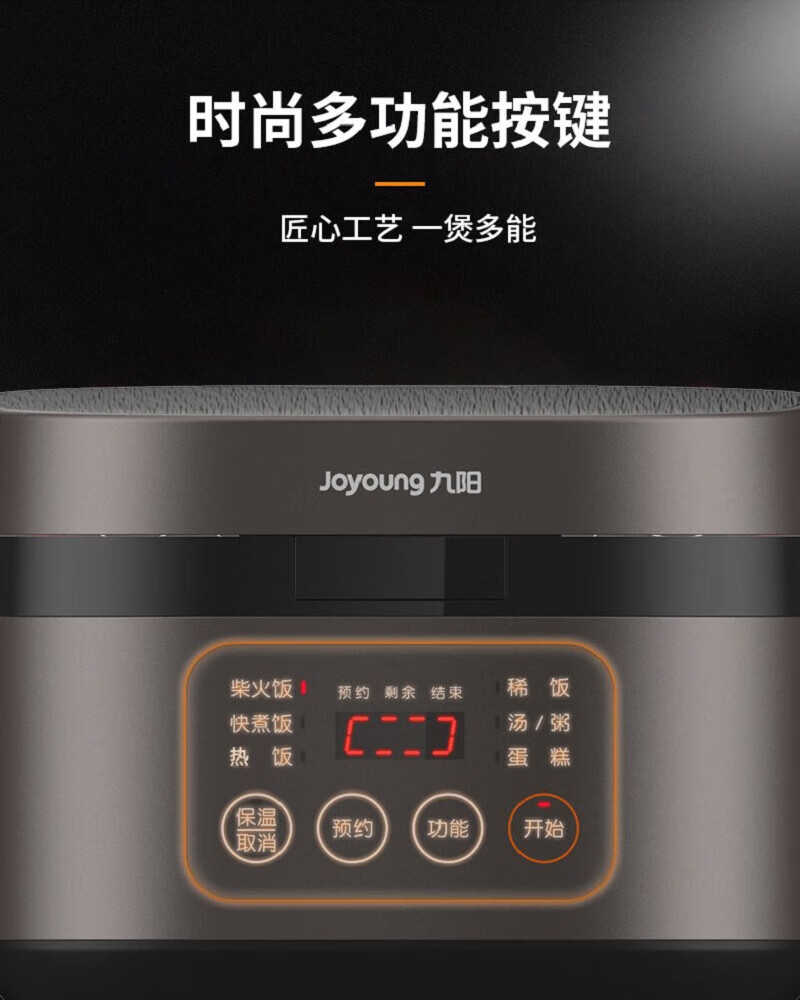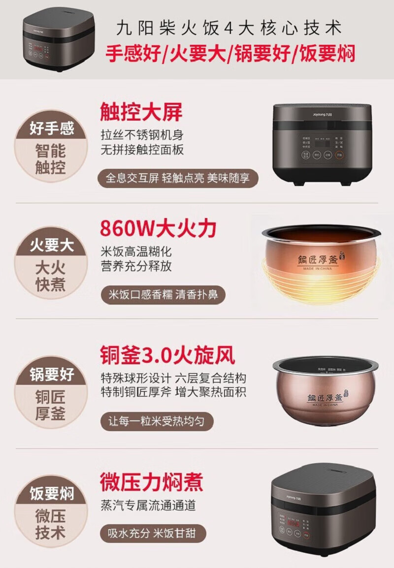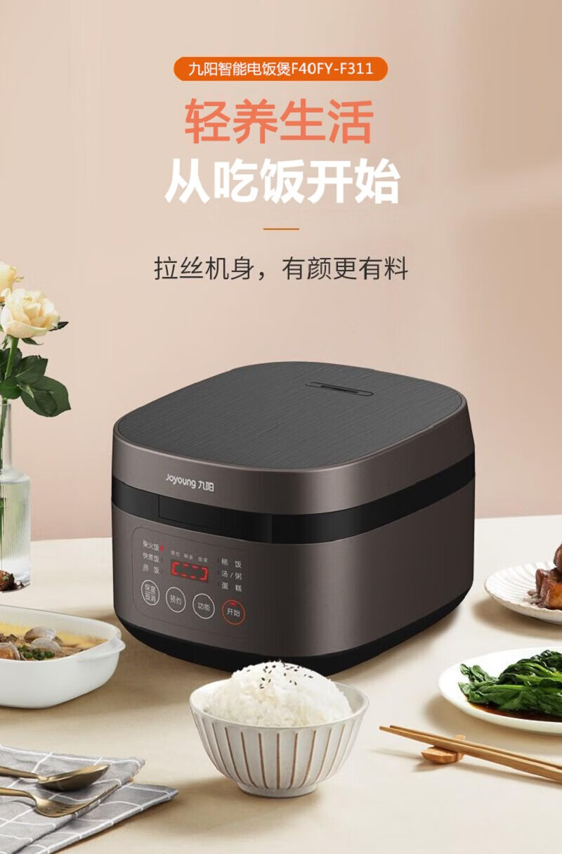 九阳 (Joyoung)电饭煲 F40FY-F311 拉丝纹理界面铜匠厚釜内胆金属拉丝机身4L大容量多功能家用