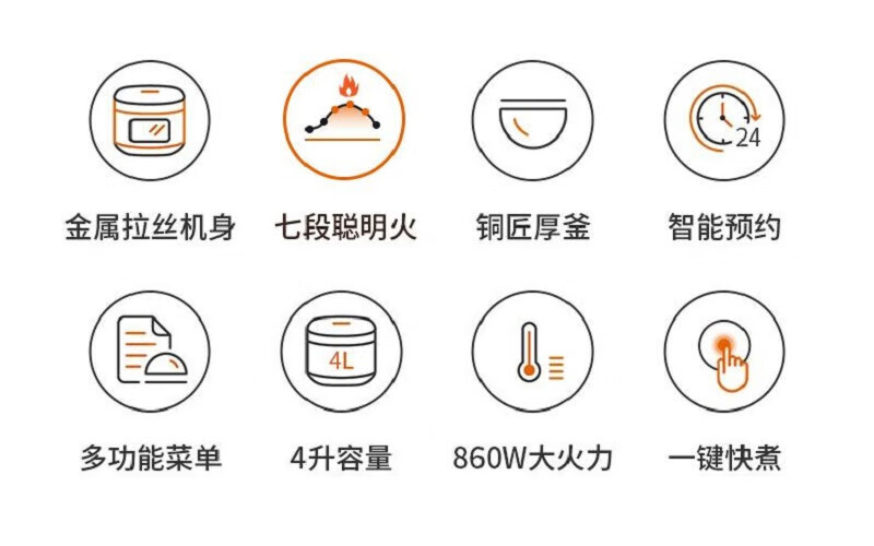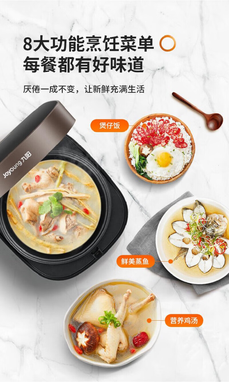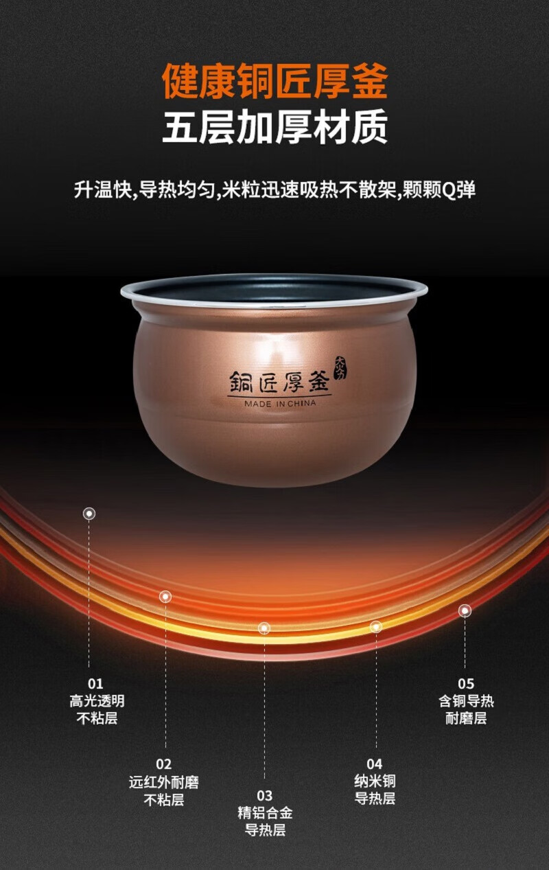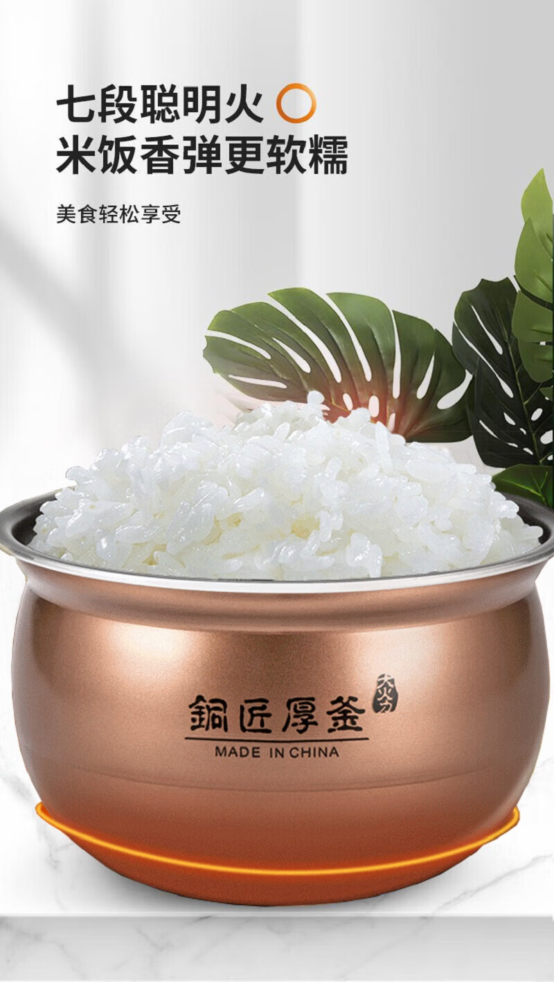 九阳 (Joyoung)电饭煲 F40FY-F311 拉丝纹理界面铜匠厚釜内胆金属拉丝机身4L大容量多功能家用