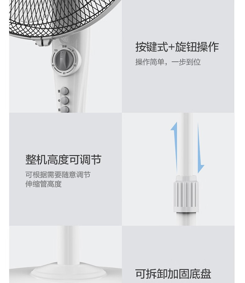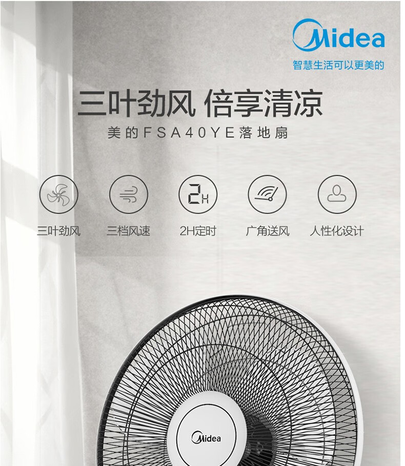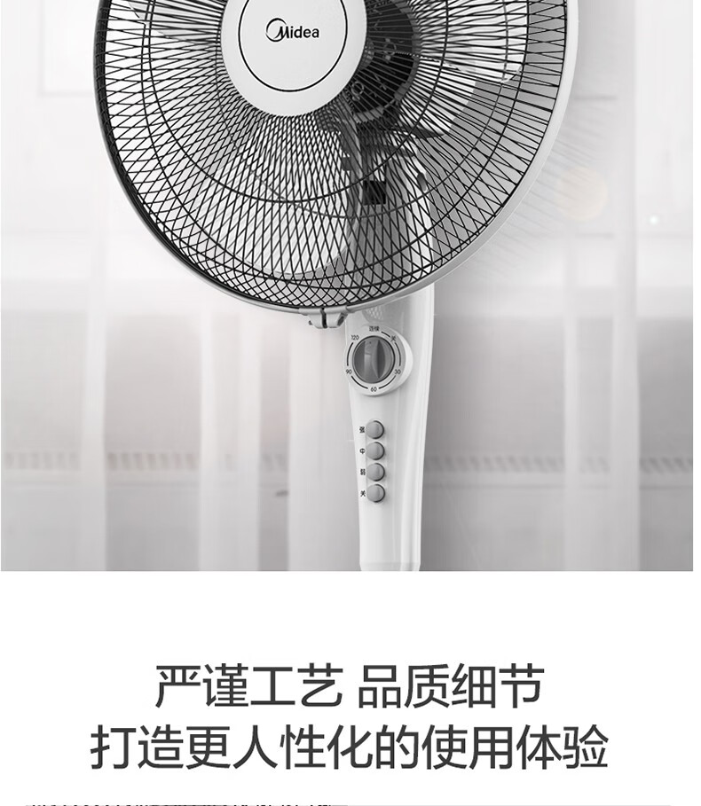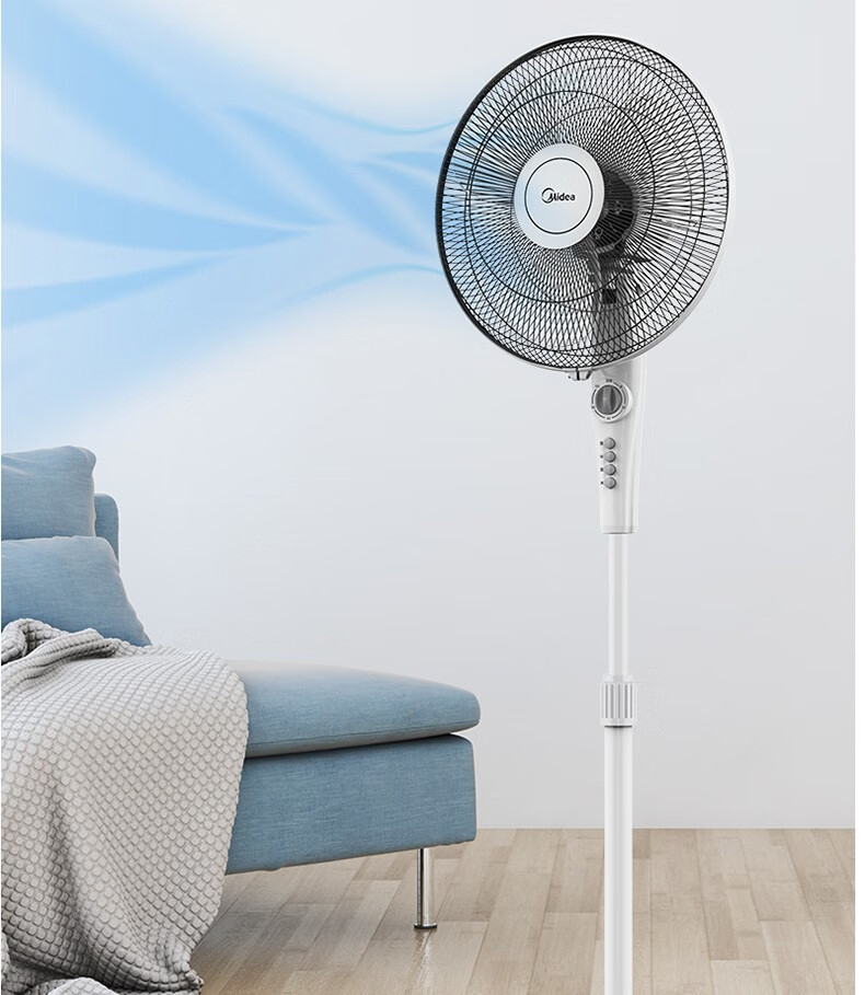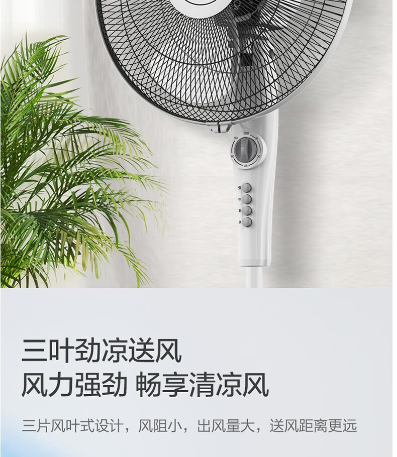 美的(Midea)FSA40YE落地扇家用三叶扇大风量电风扇电扇台立式按键旋钮宿舍客厅白色机械版 FSA40YE